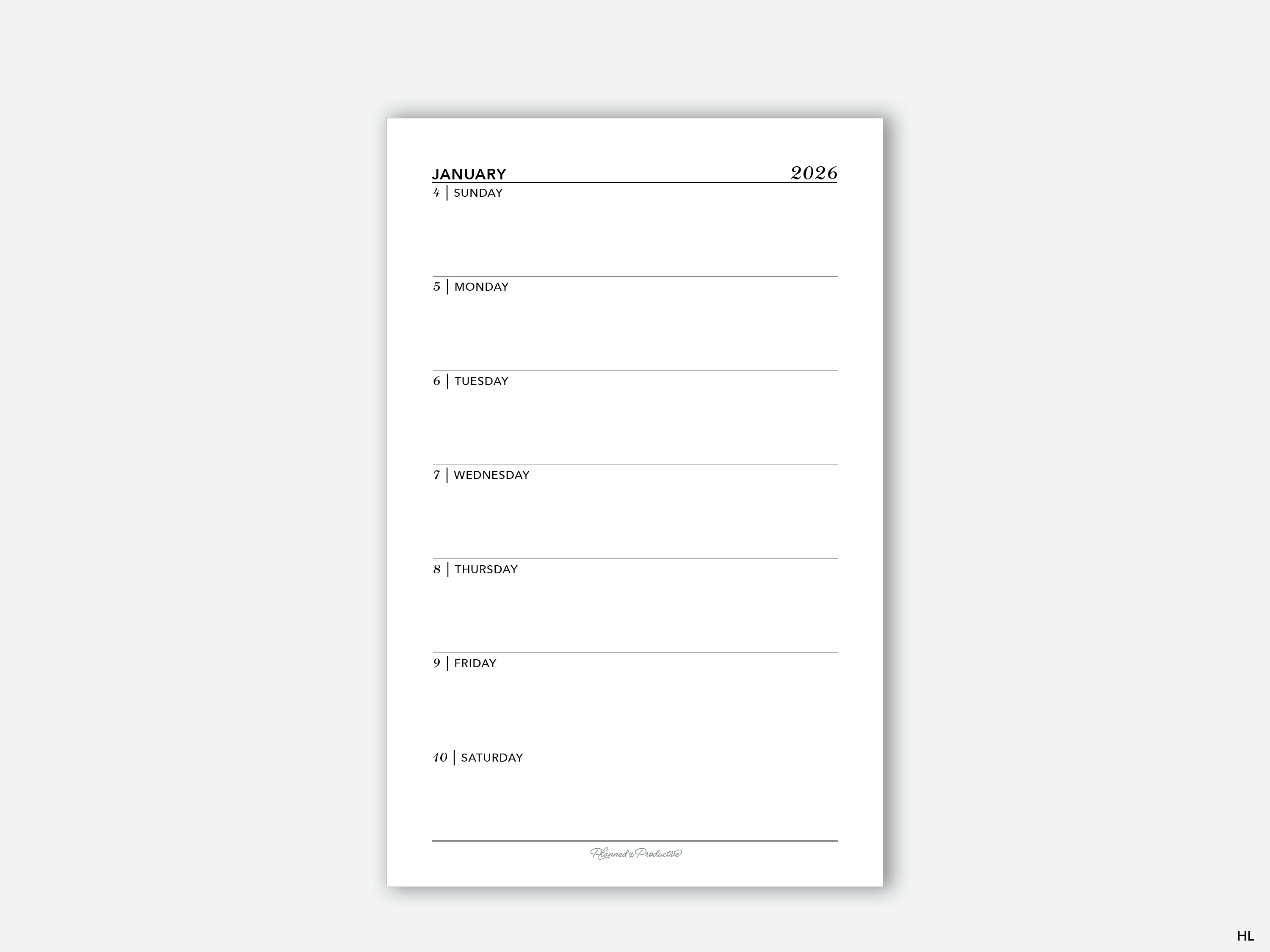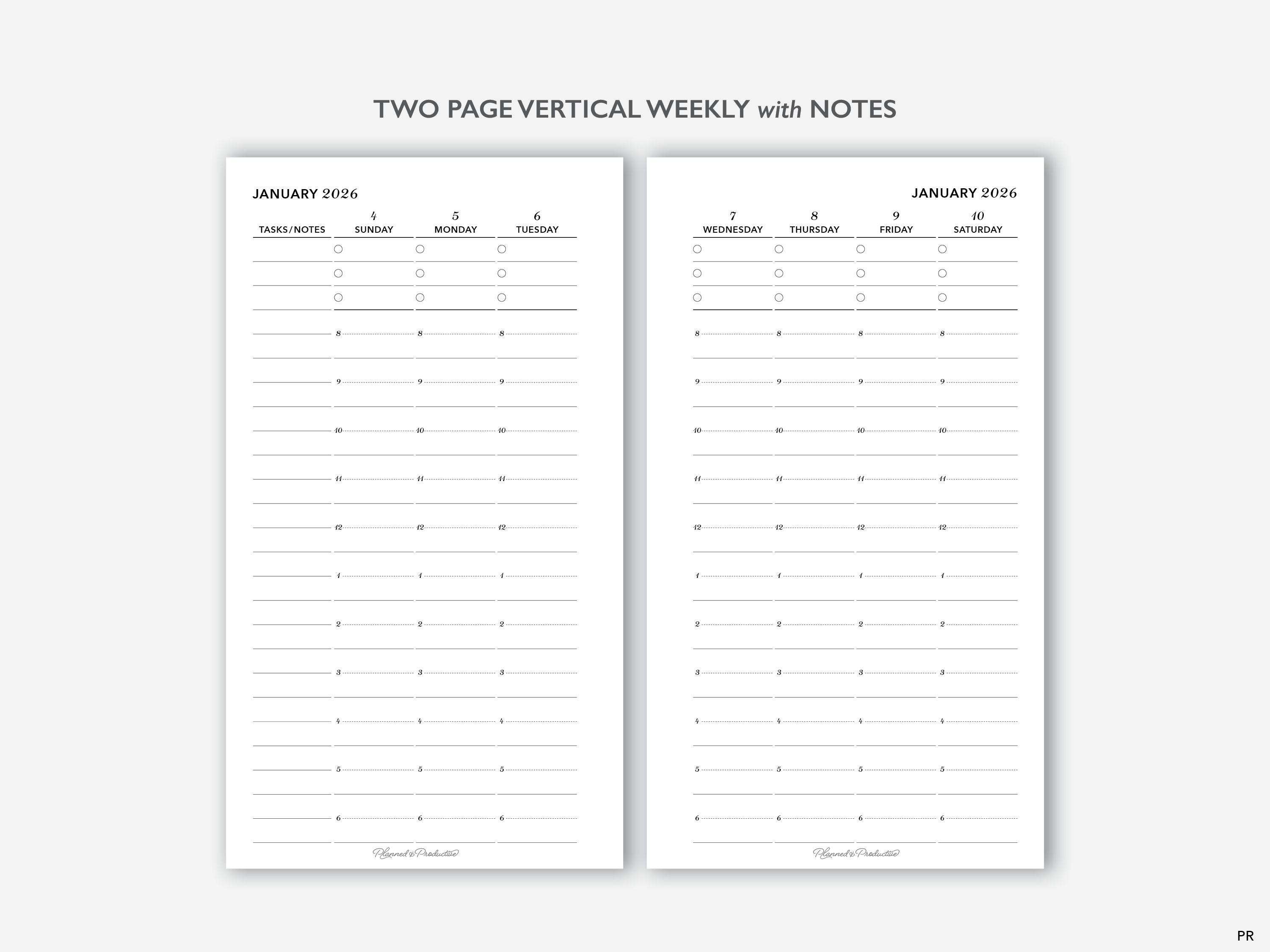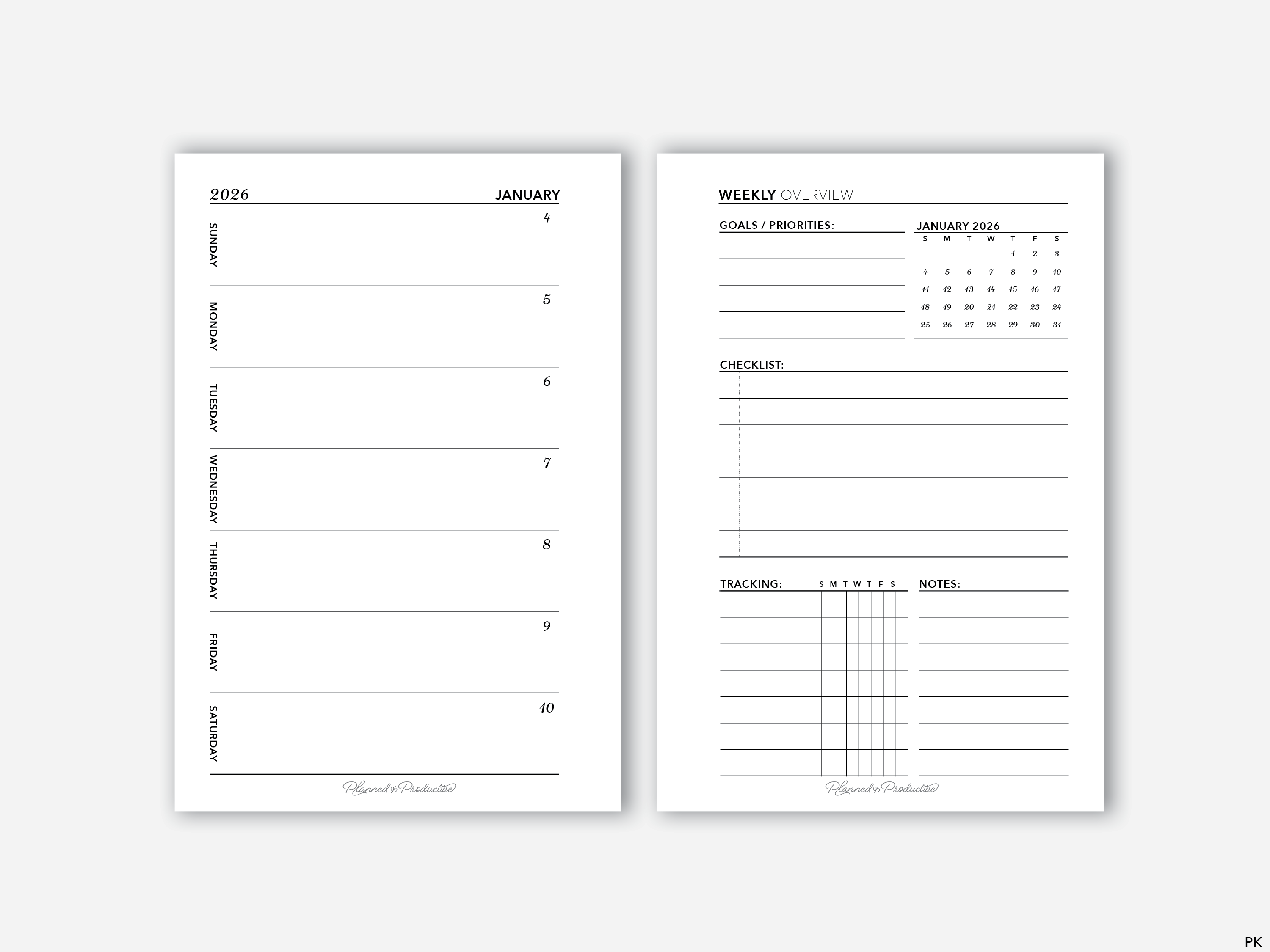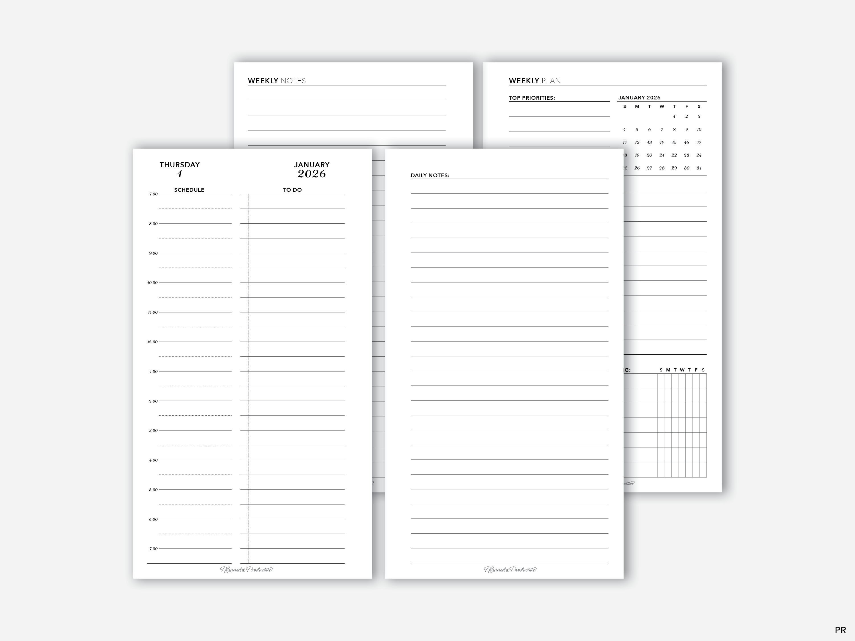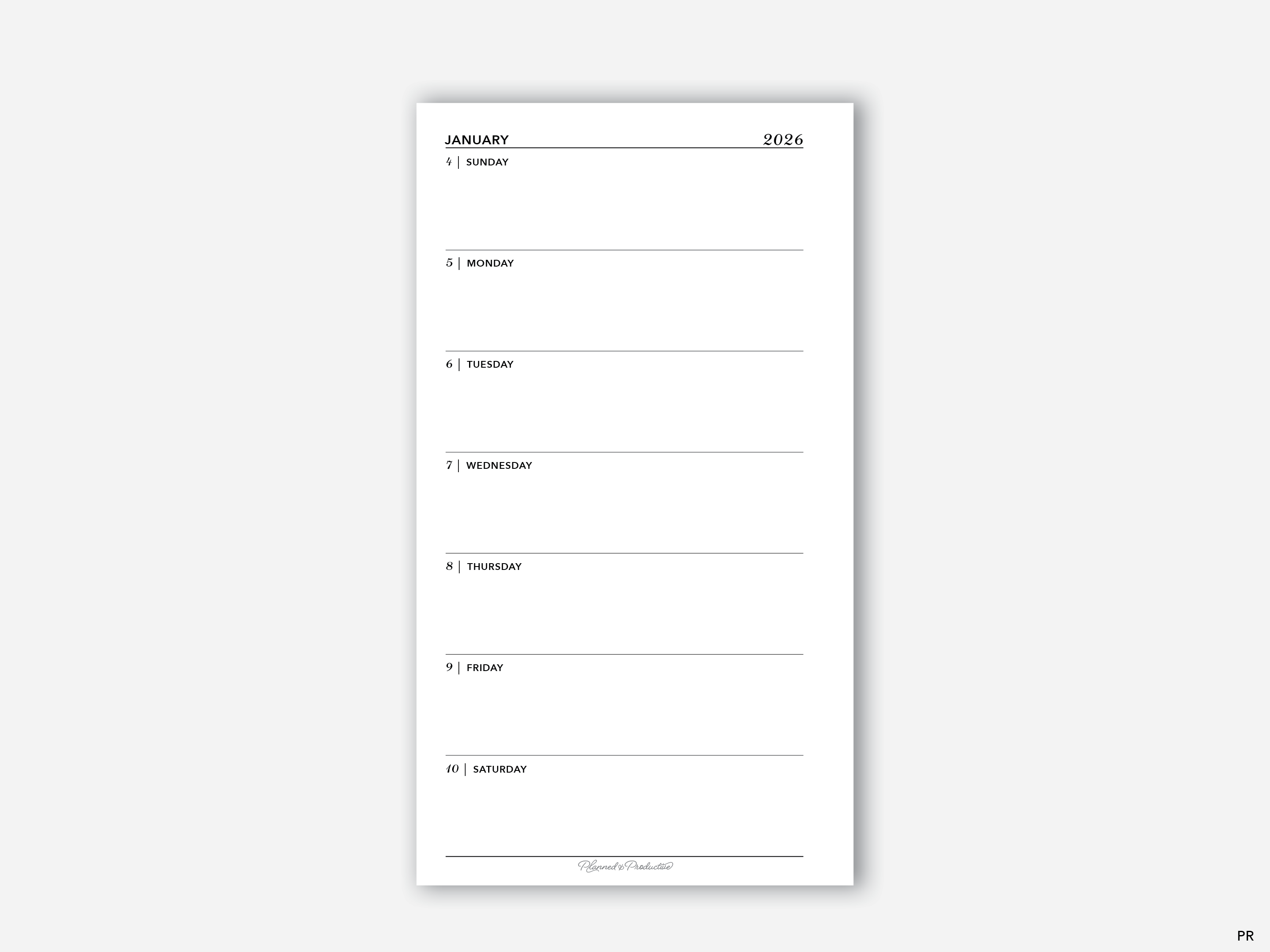 2026 Daily Vertical Style Planner Insert with Weekly Overview