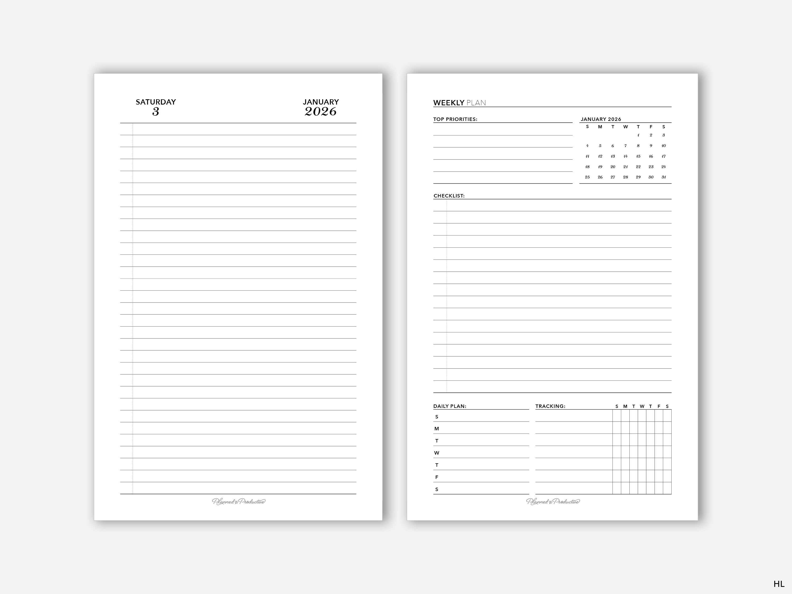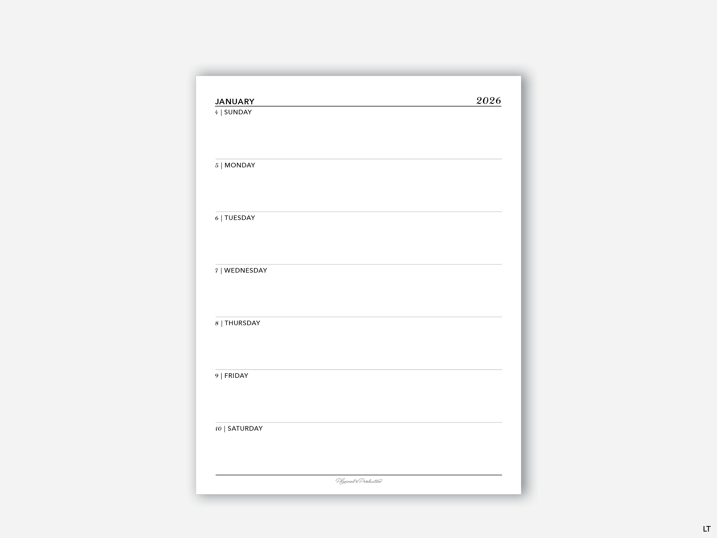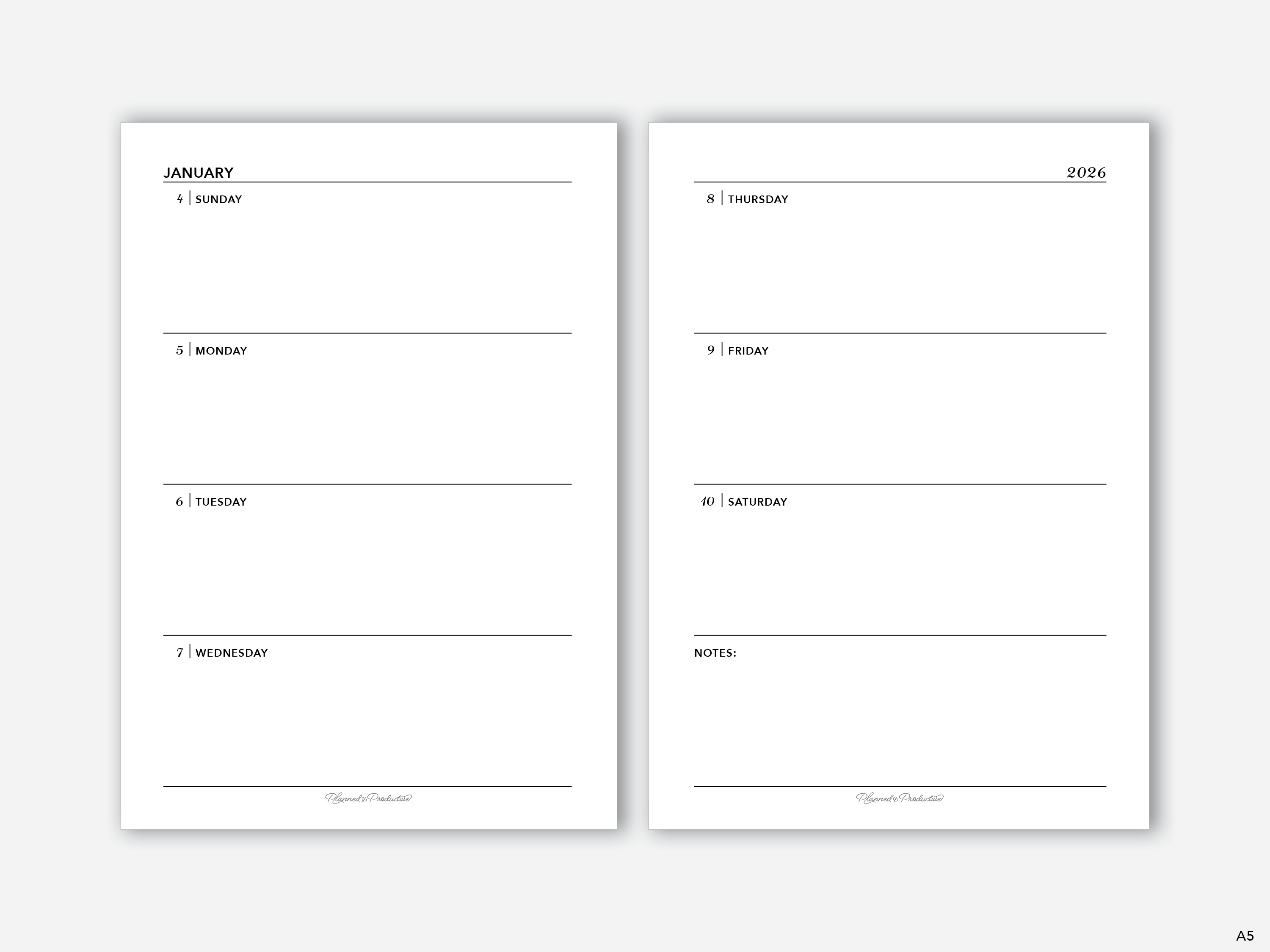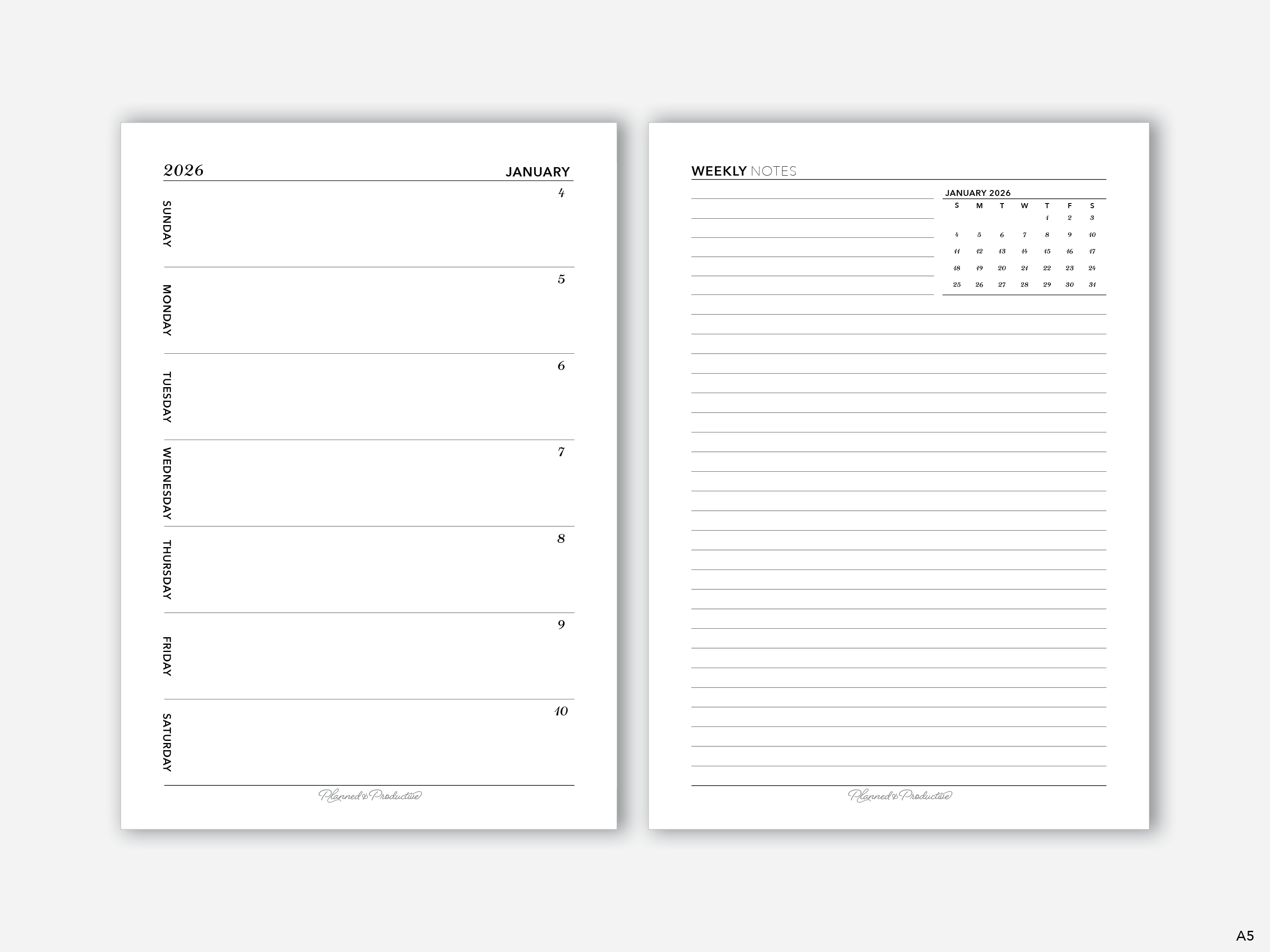 2026 Daily Vertical Style Planner Insert with Weekly Overview