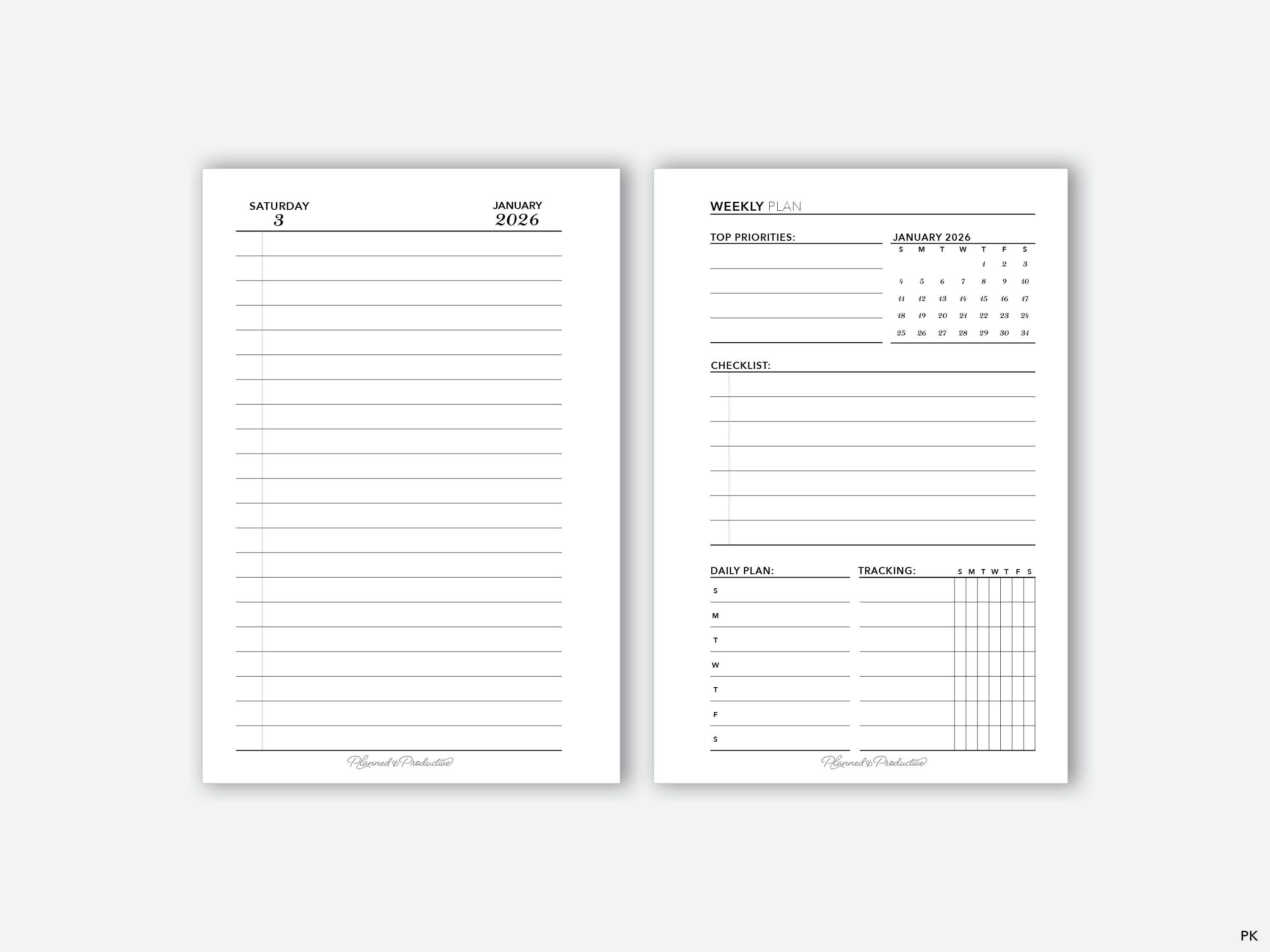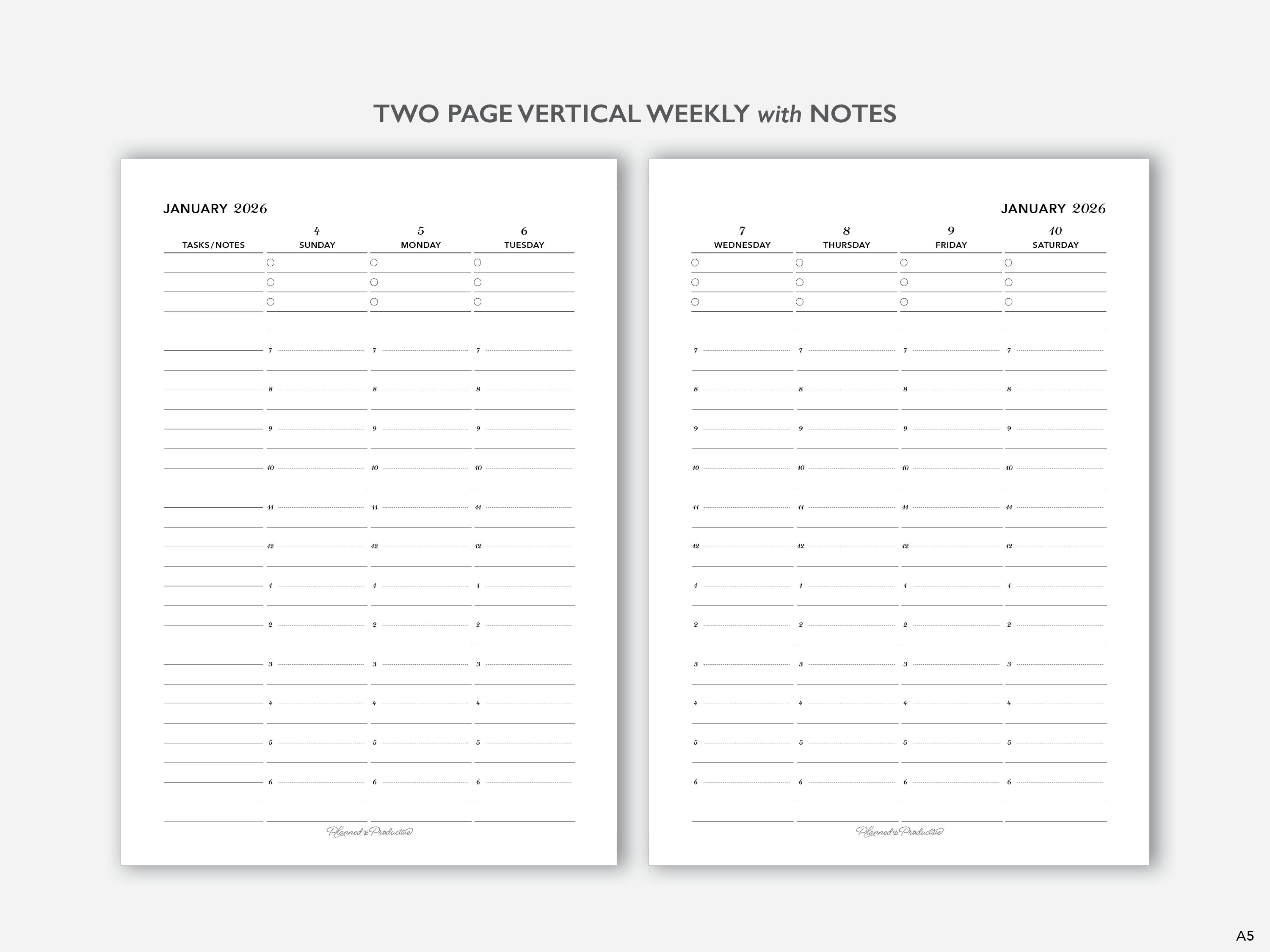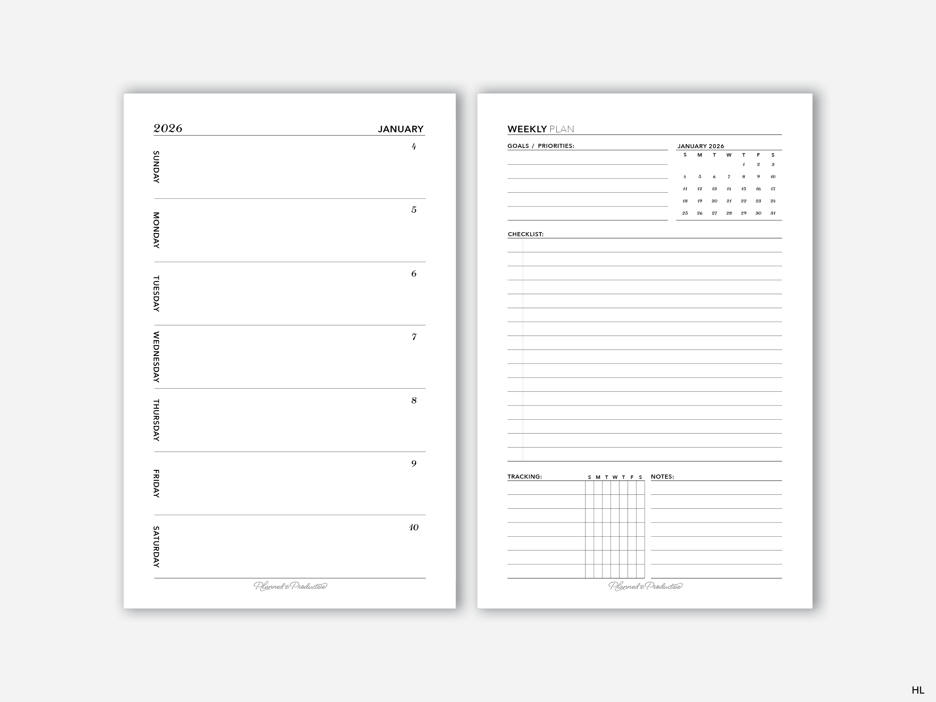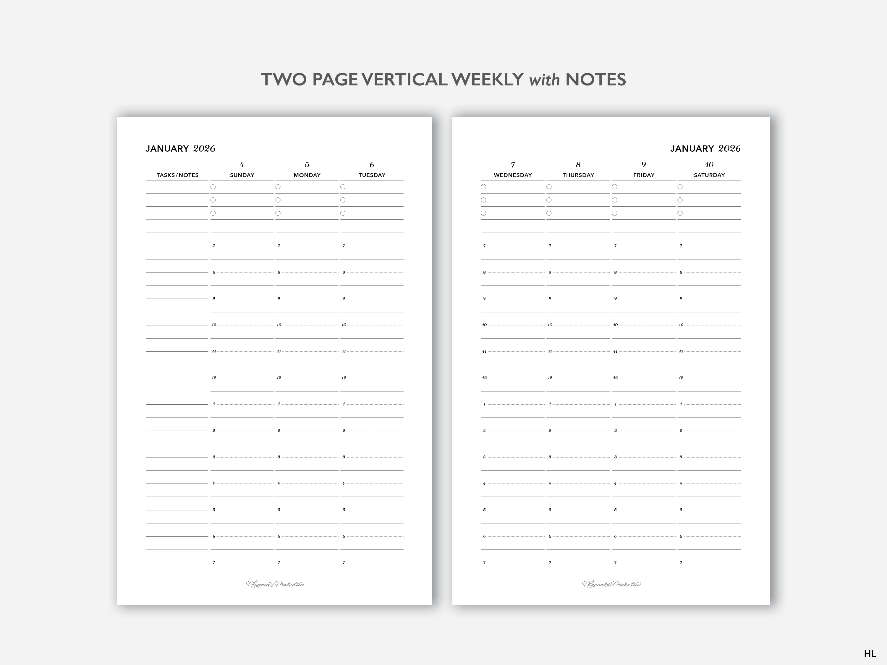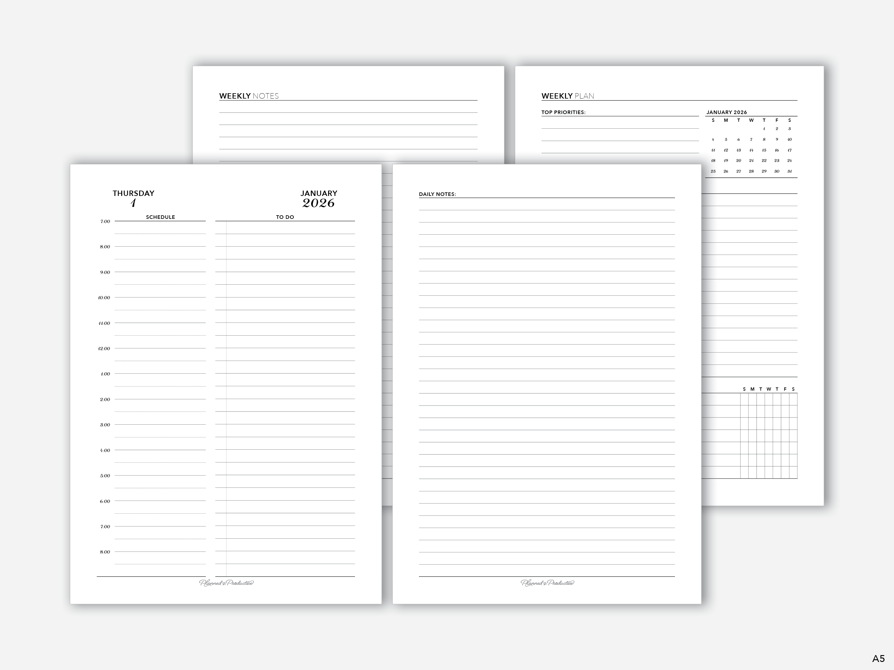 2026 Daily Vertical Style Planner Insert with Weekly Overview