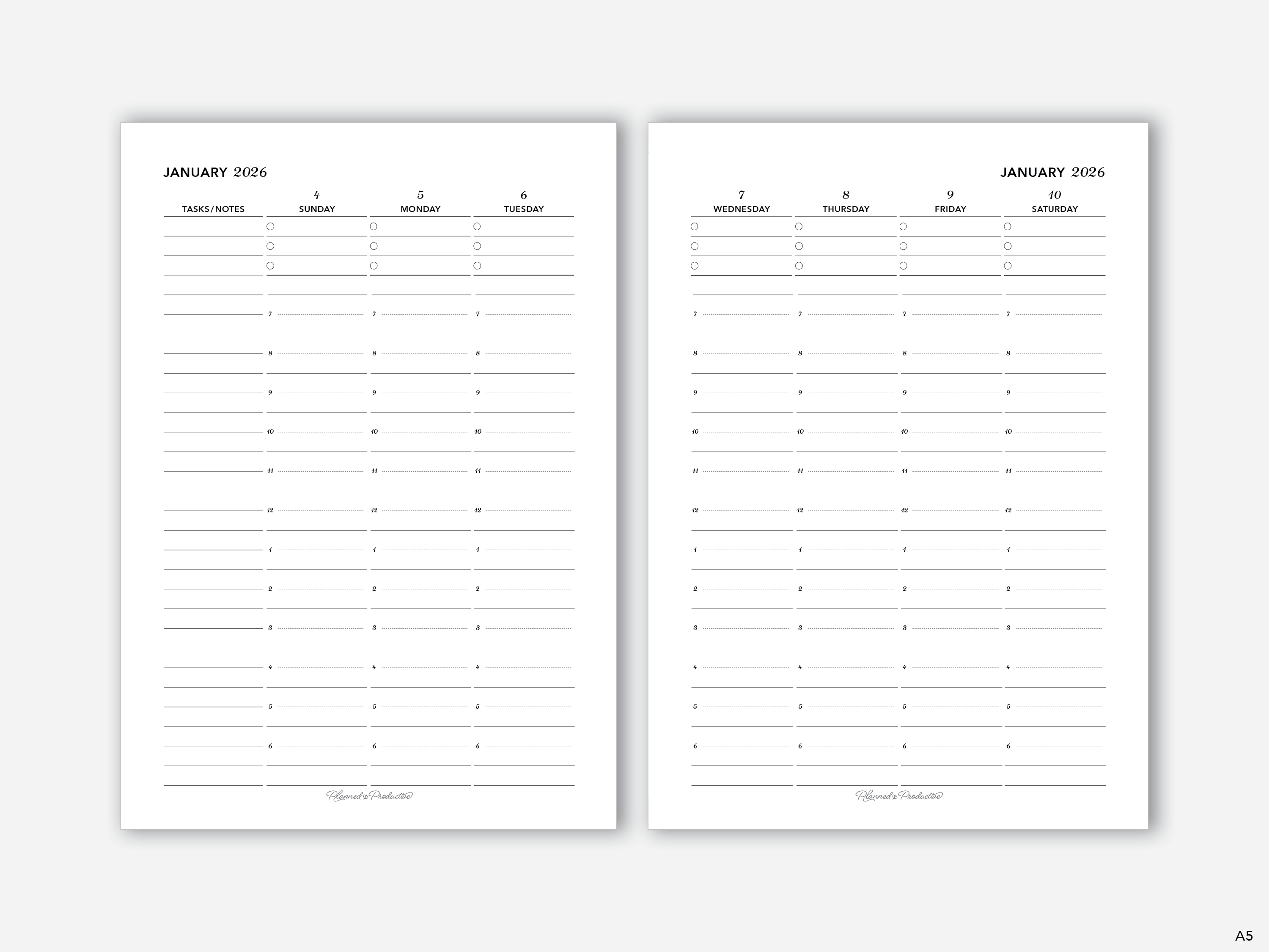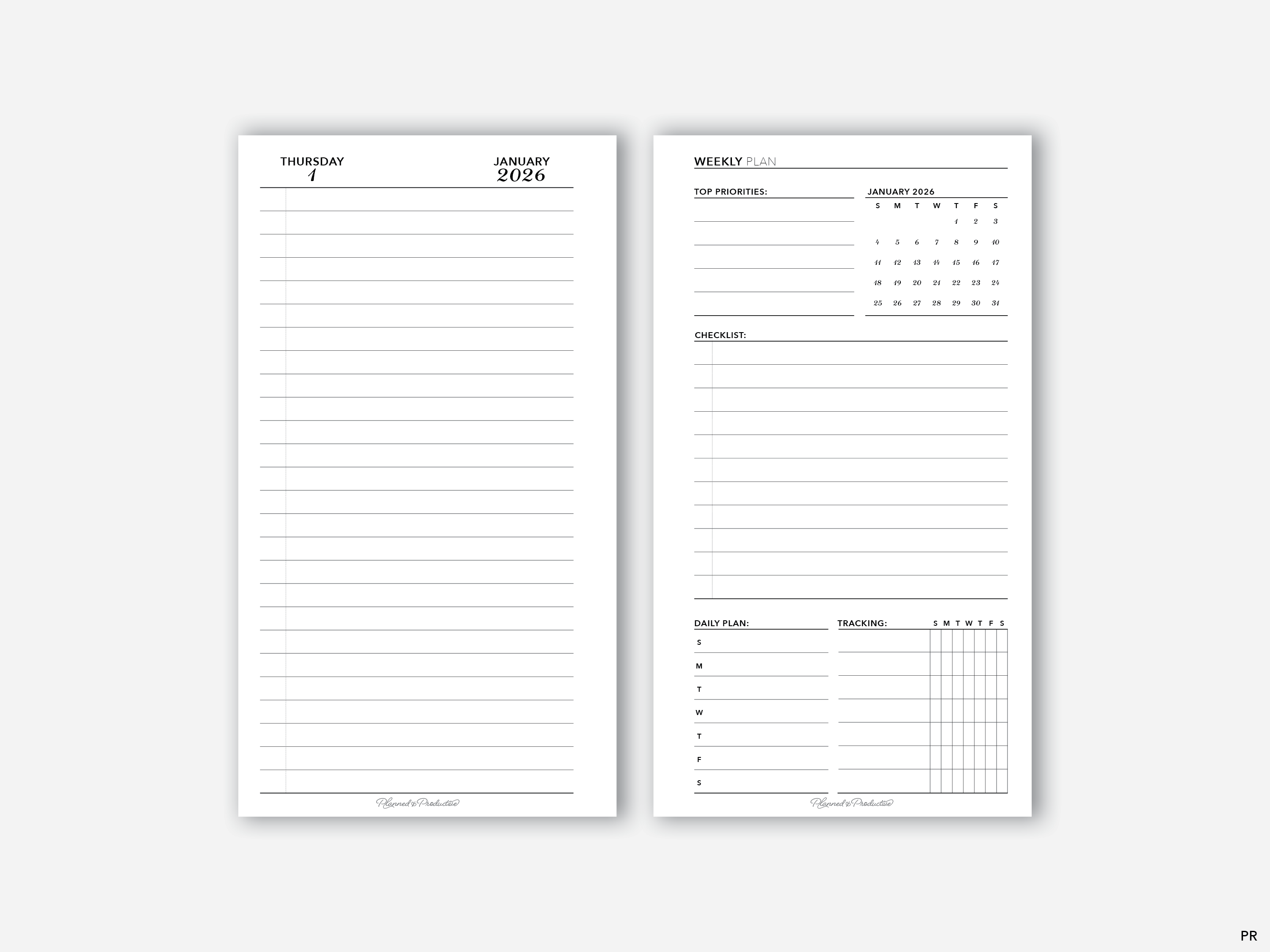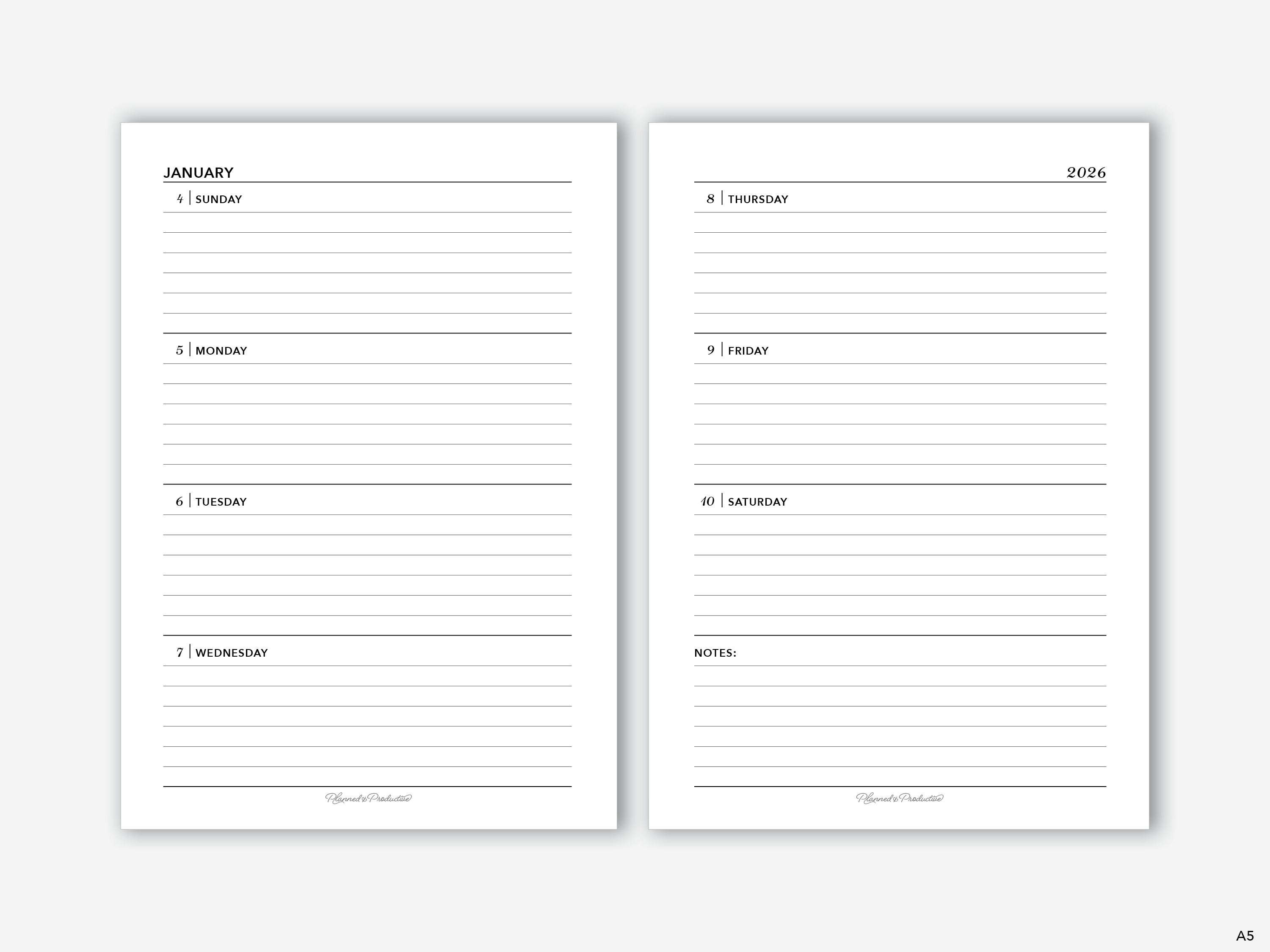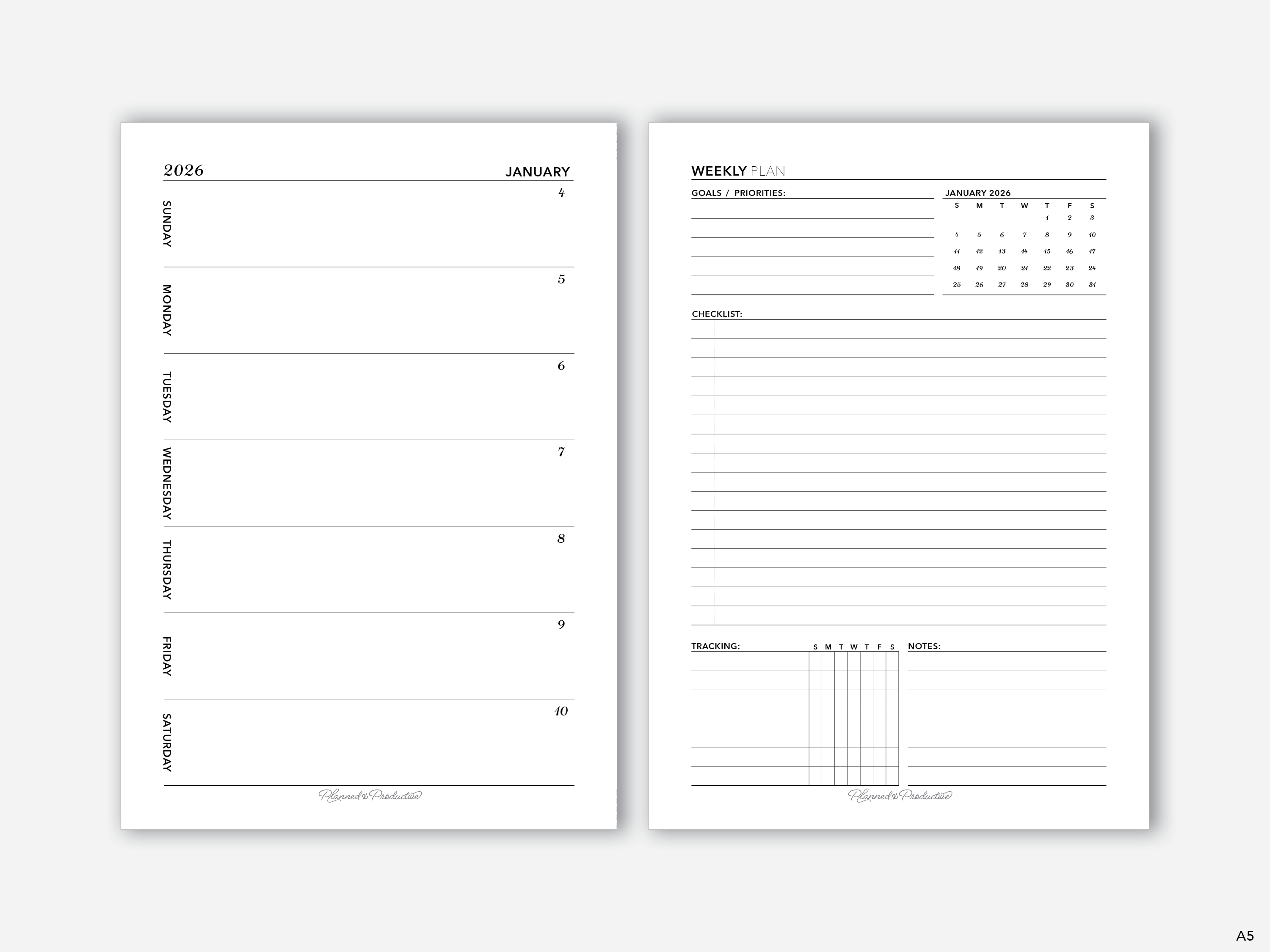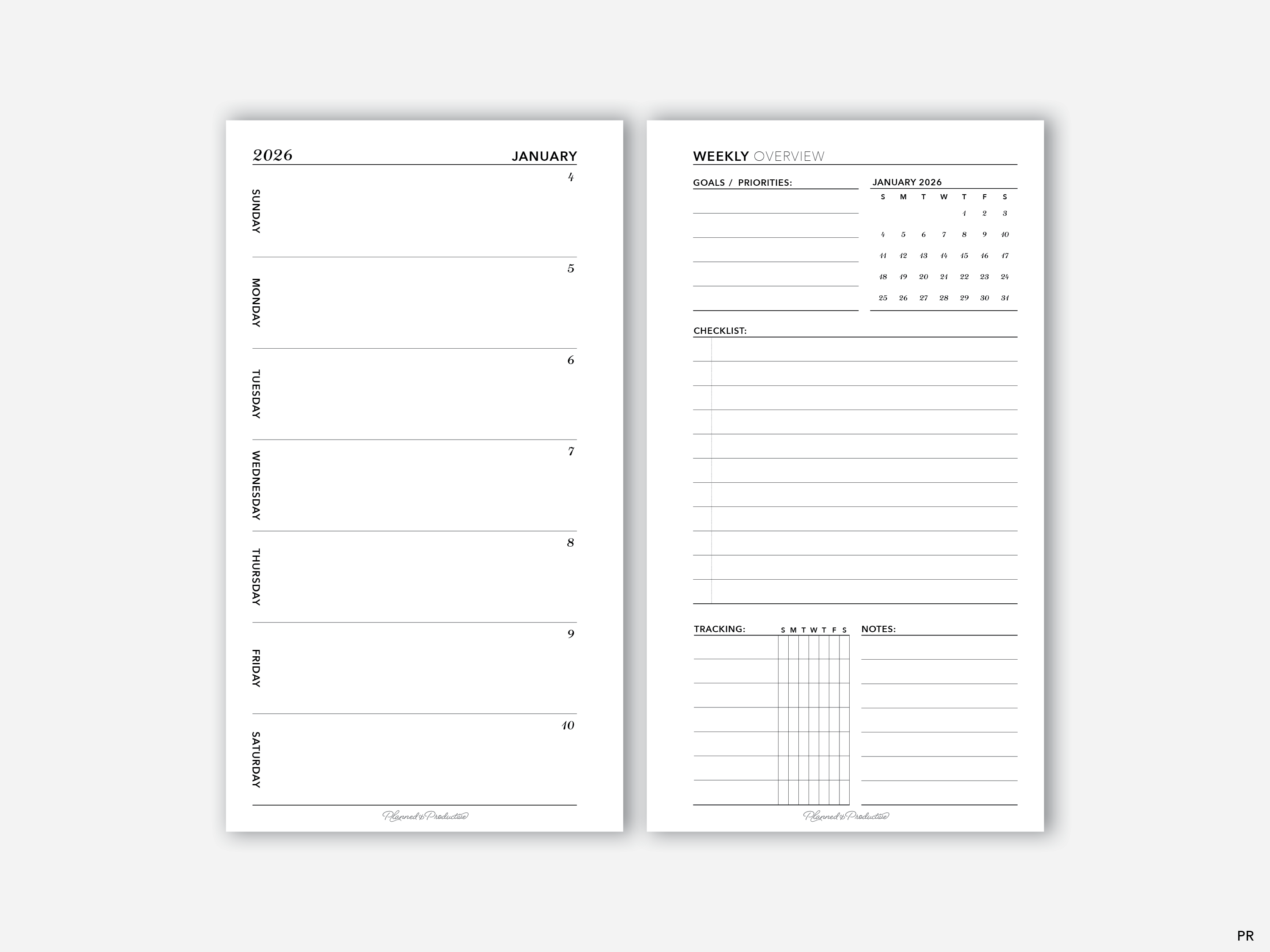 2026 Daily Vertical Style Planner Insert with Weekly Overview
