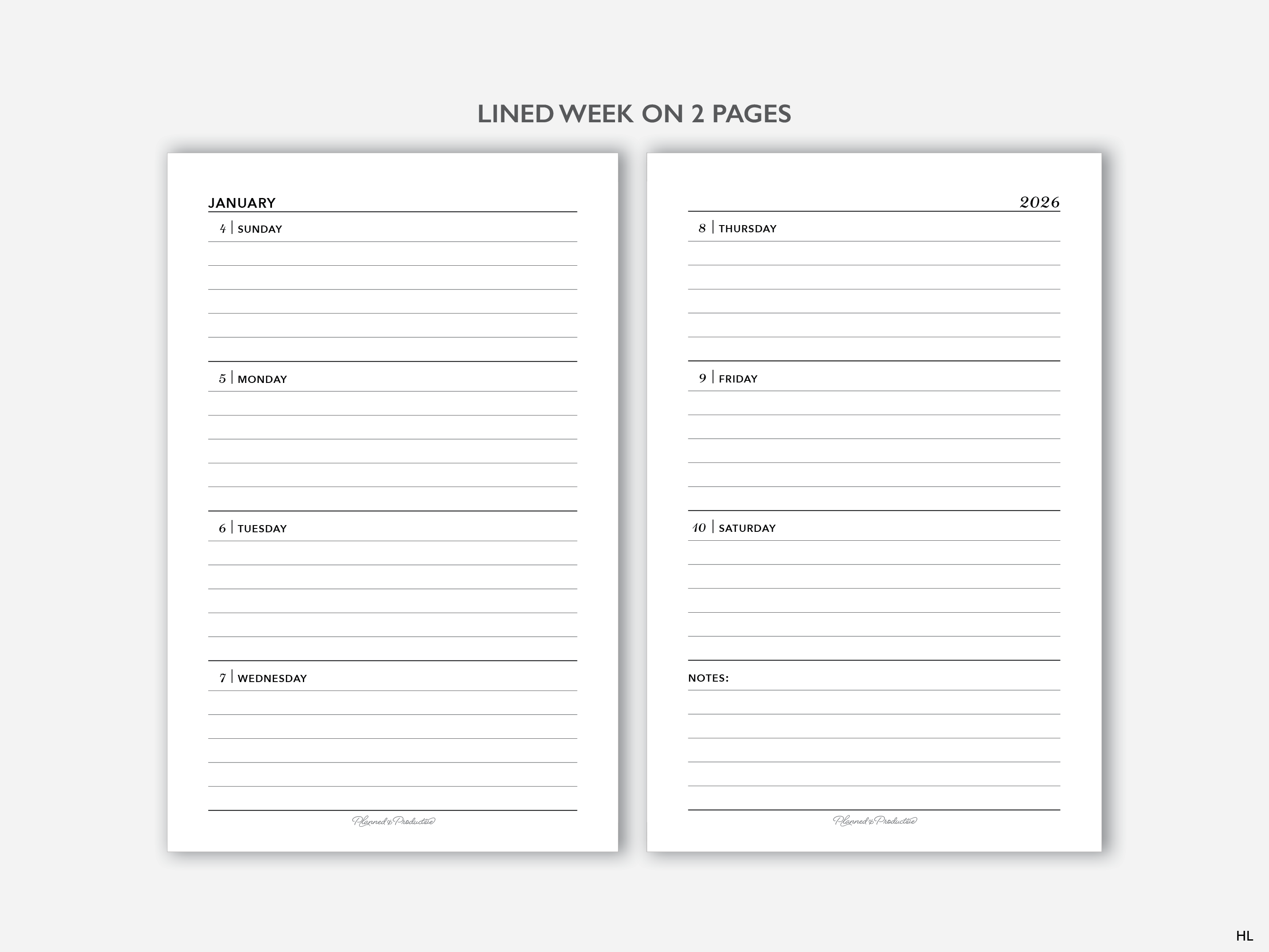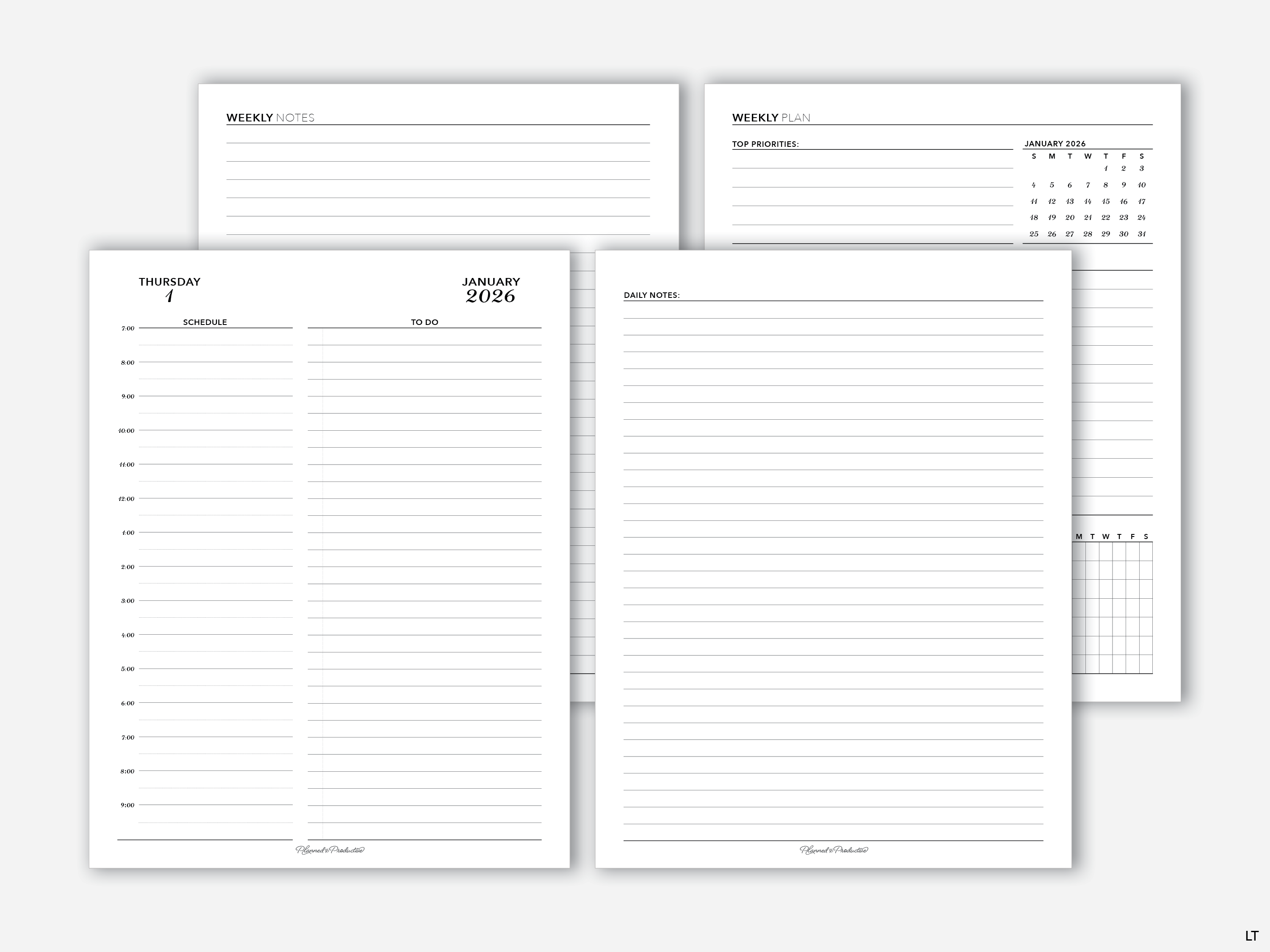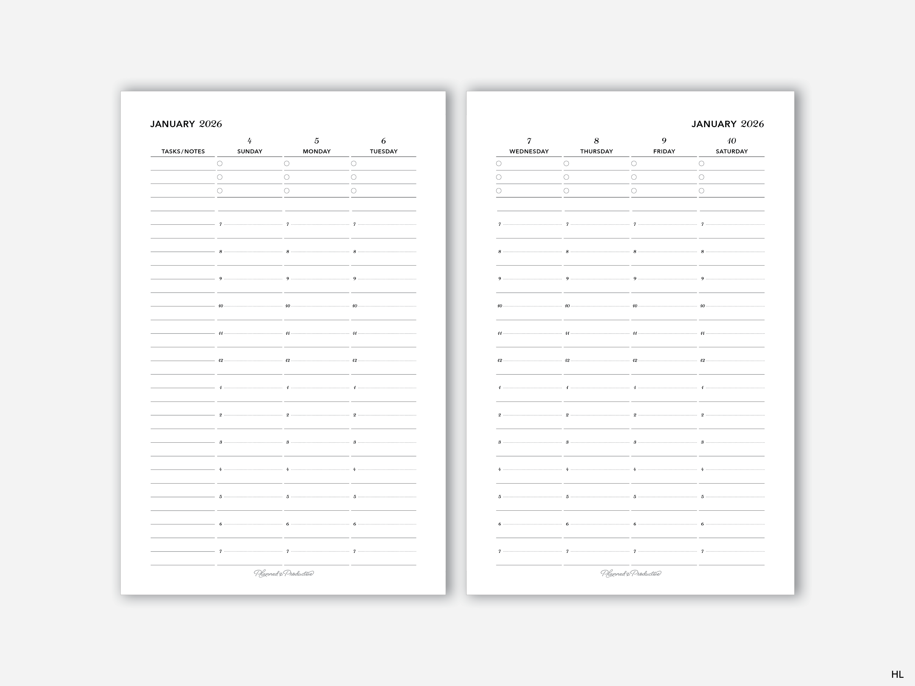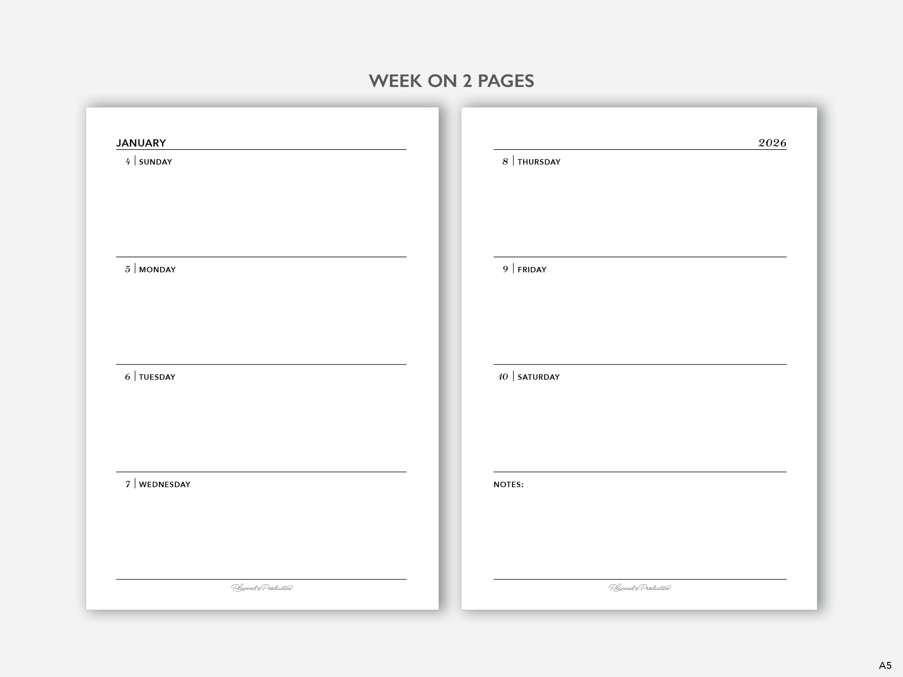 2026 Daily Vertical Style Planner Insert with Weekly Overview