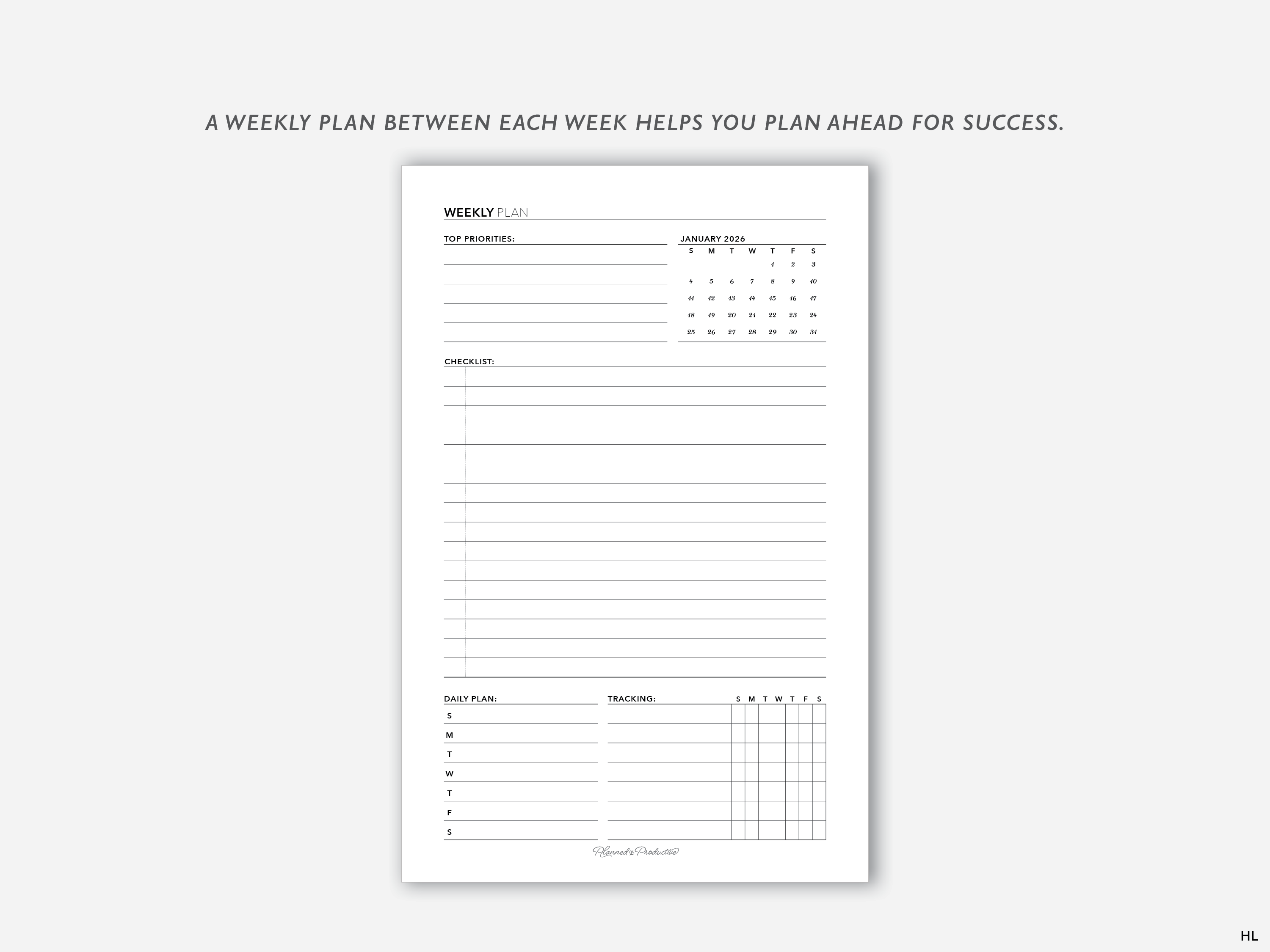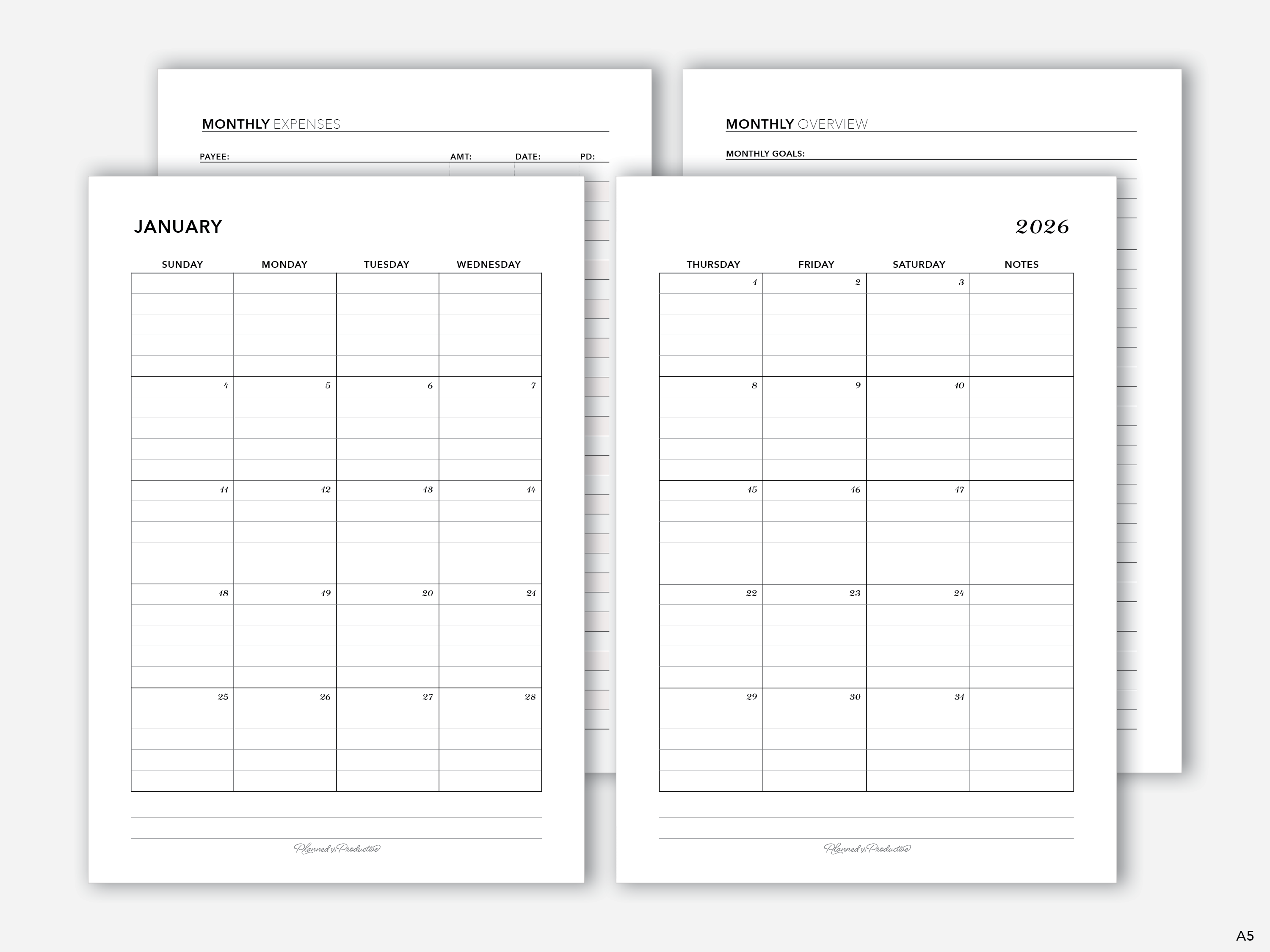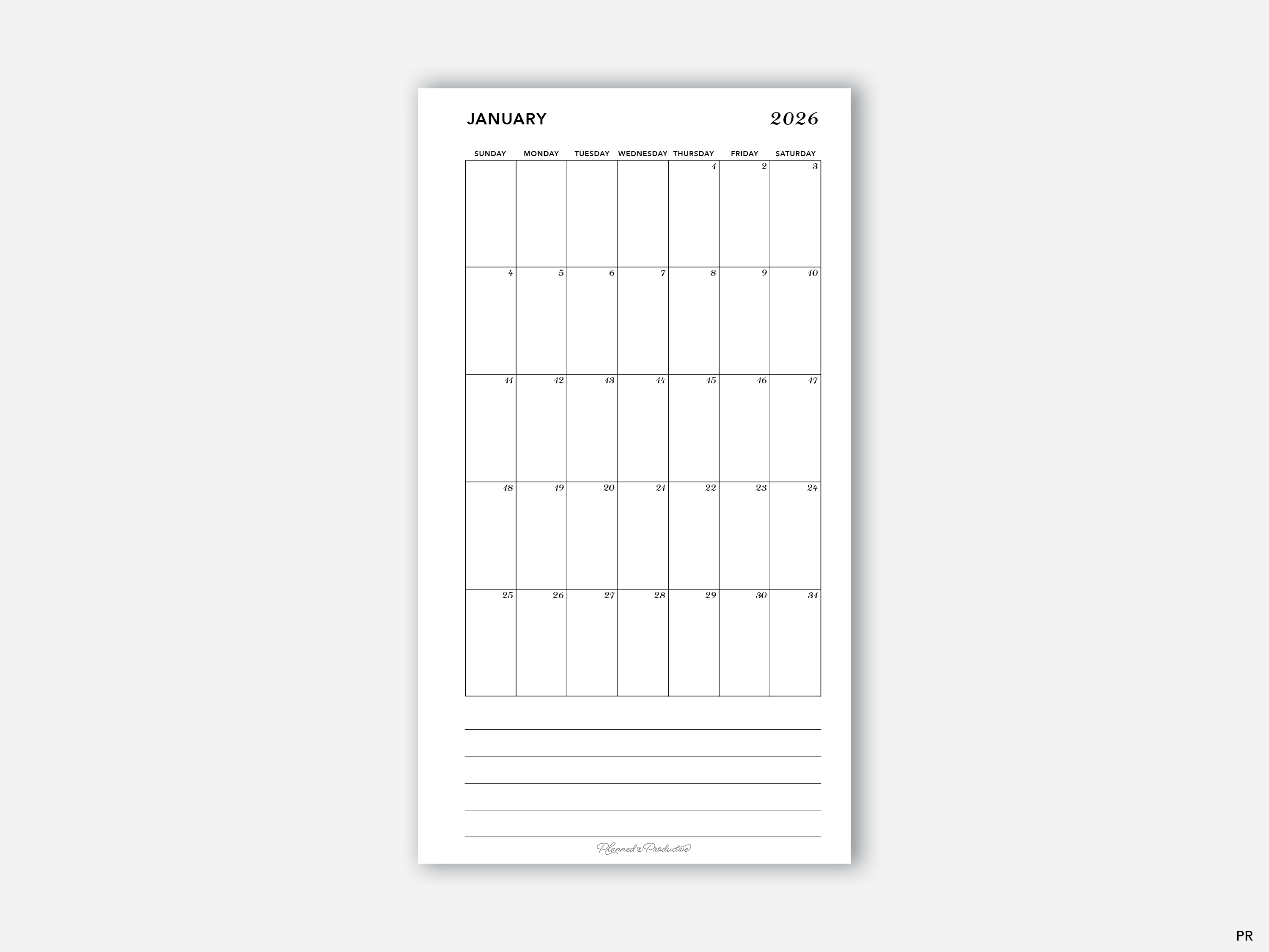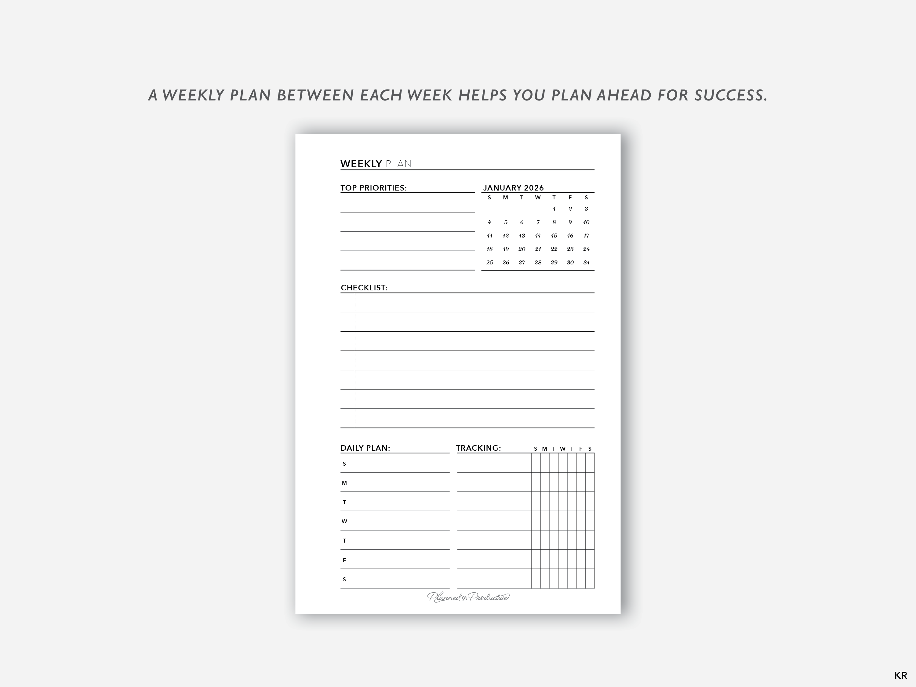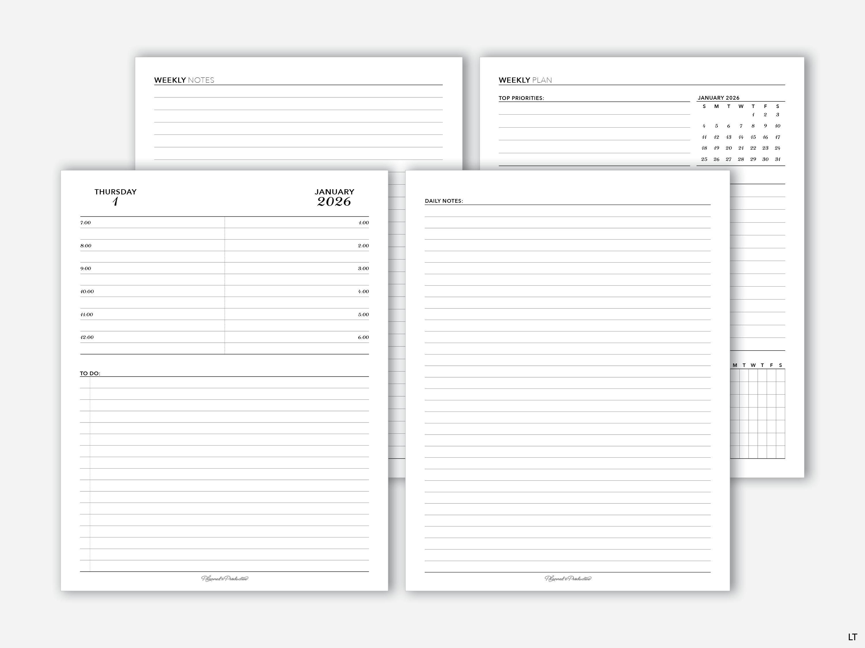 2026 Daily Vertical Style Planner Insert with Weekly Overview