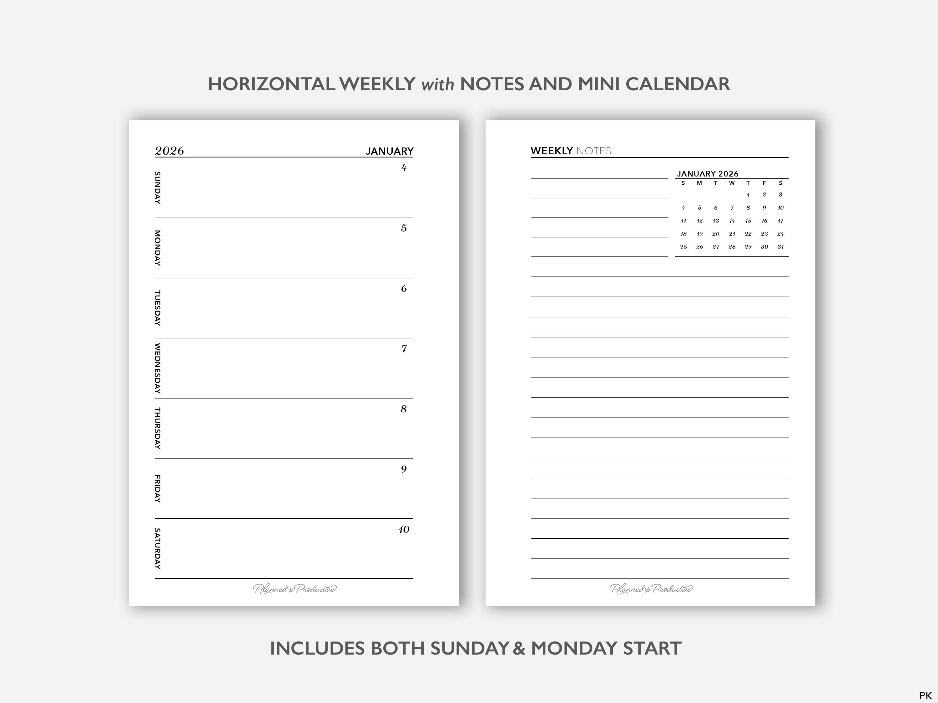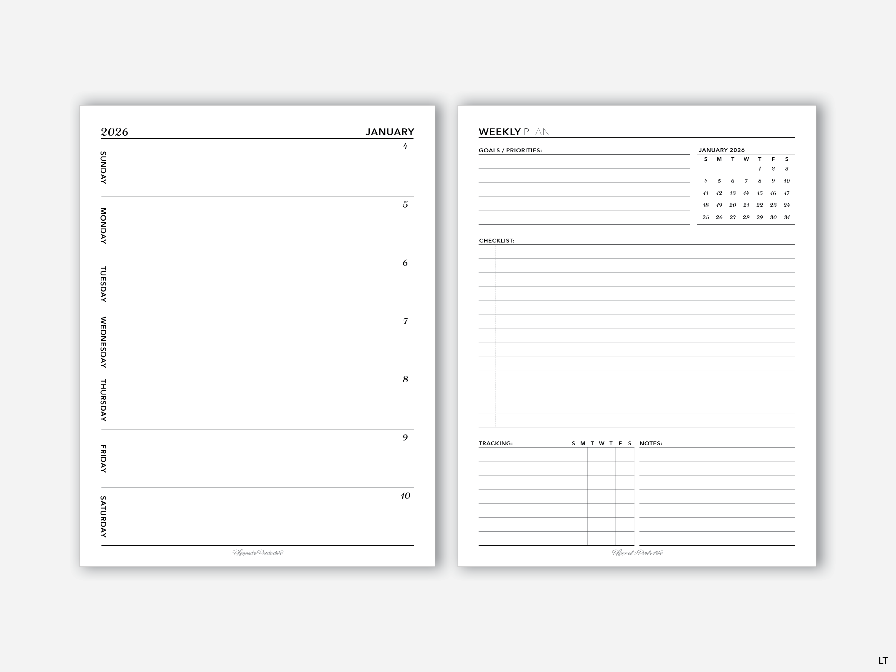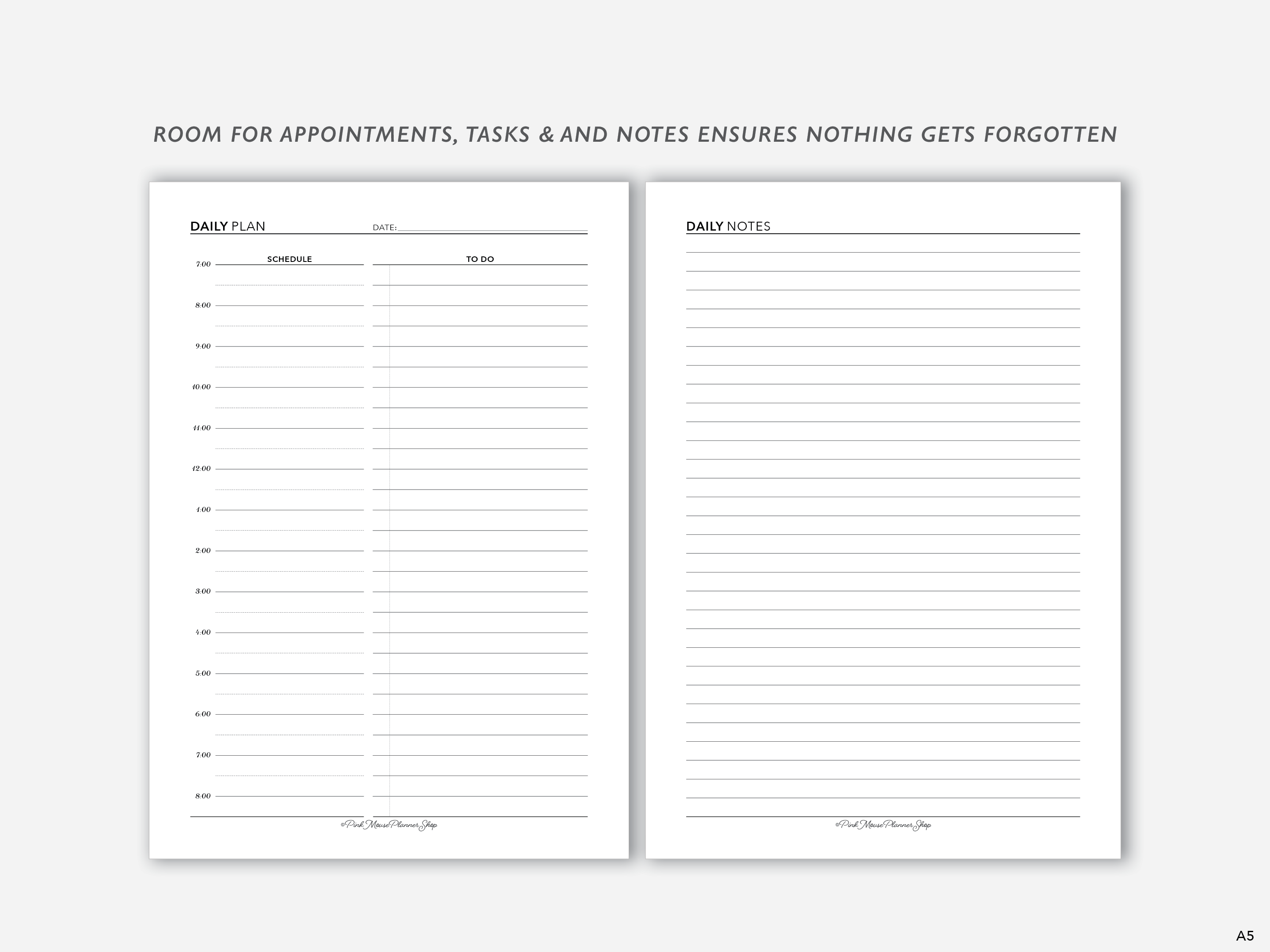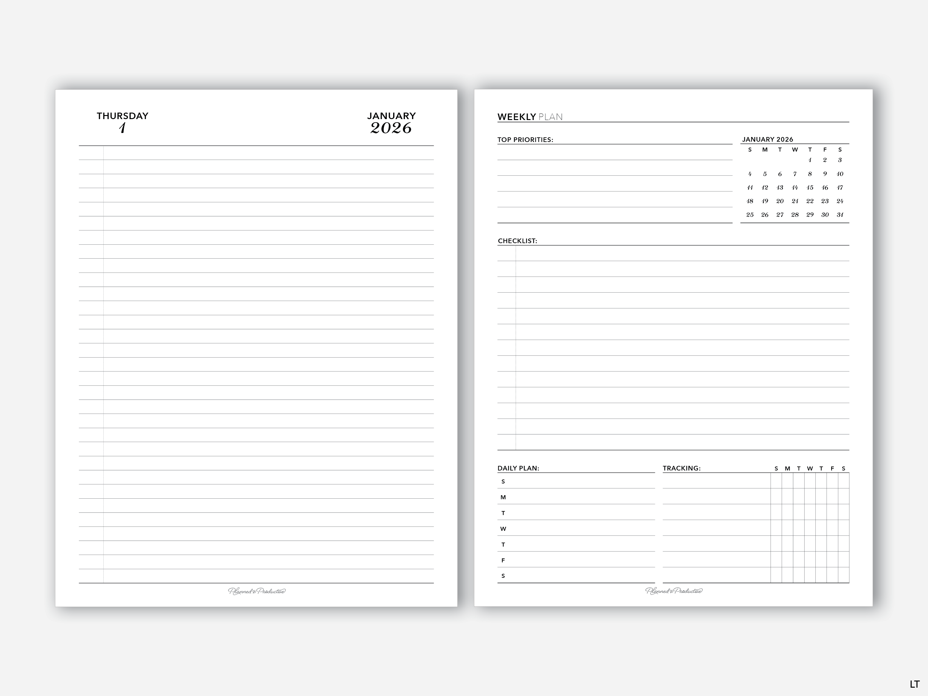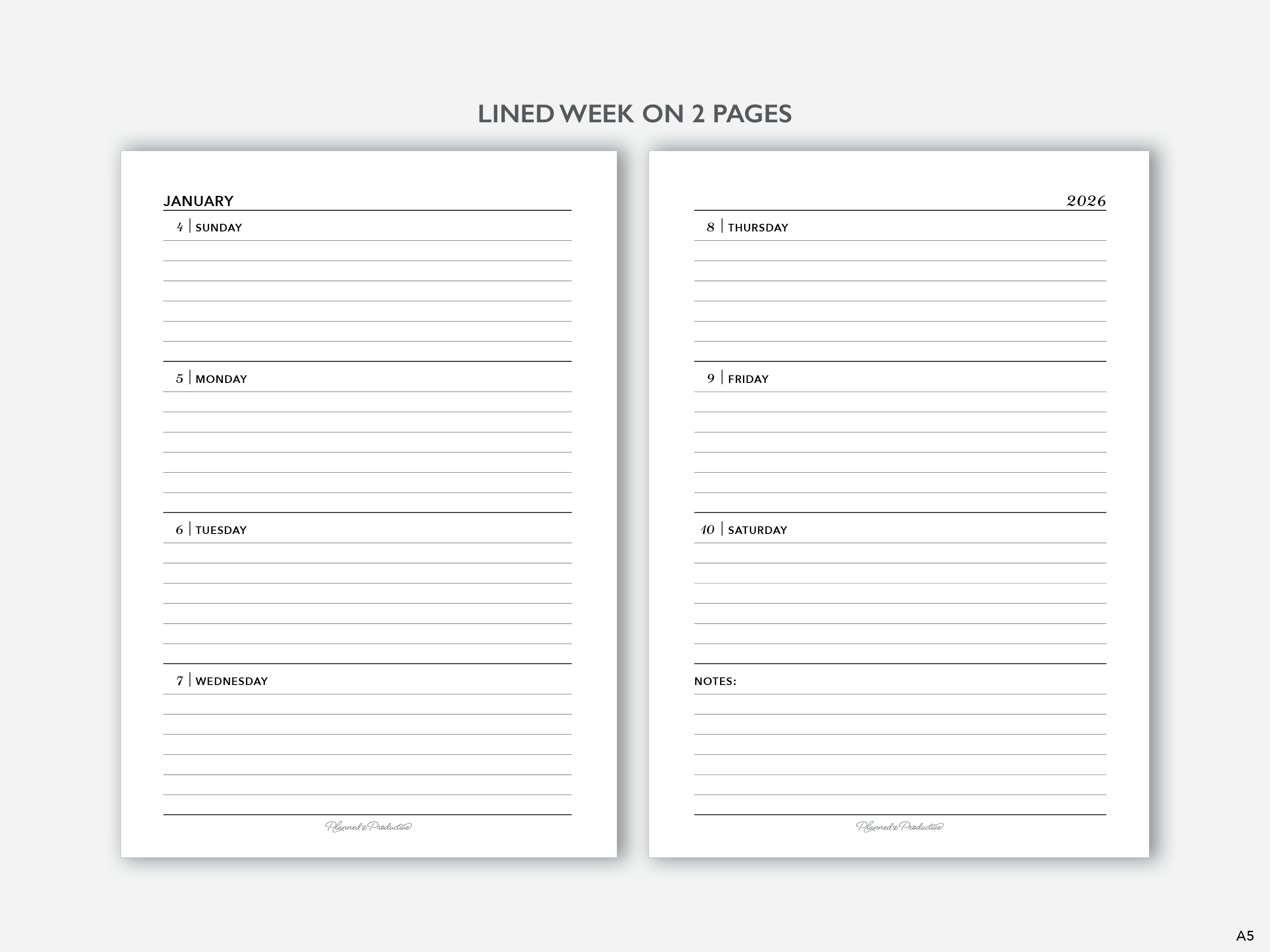 2026 Daily Vertical Style Planner Insert with Weekly Overview