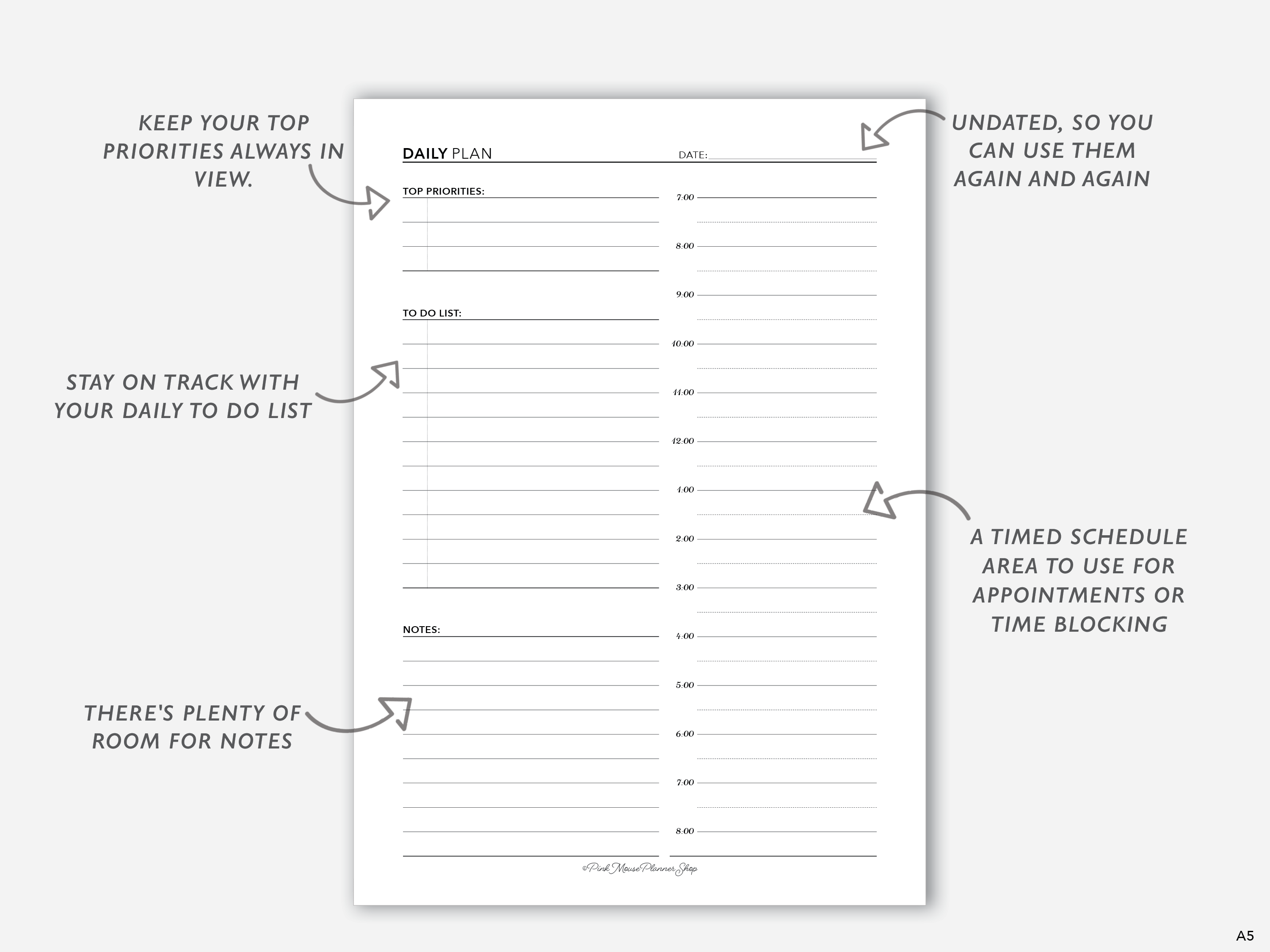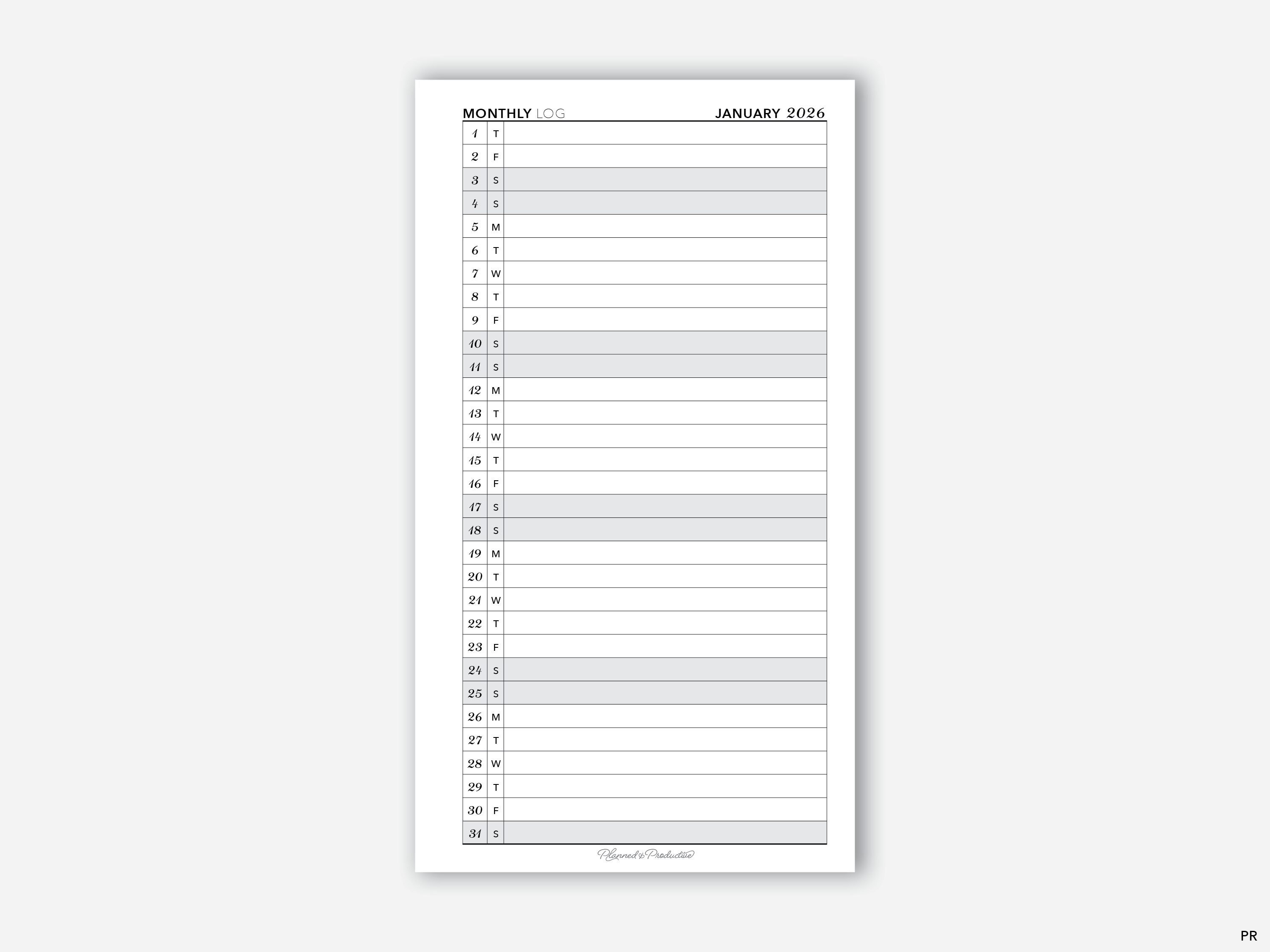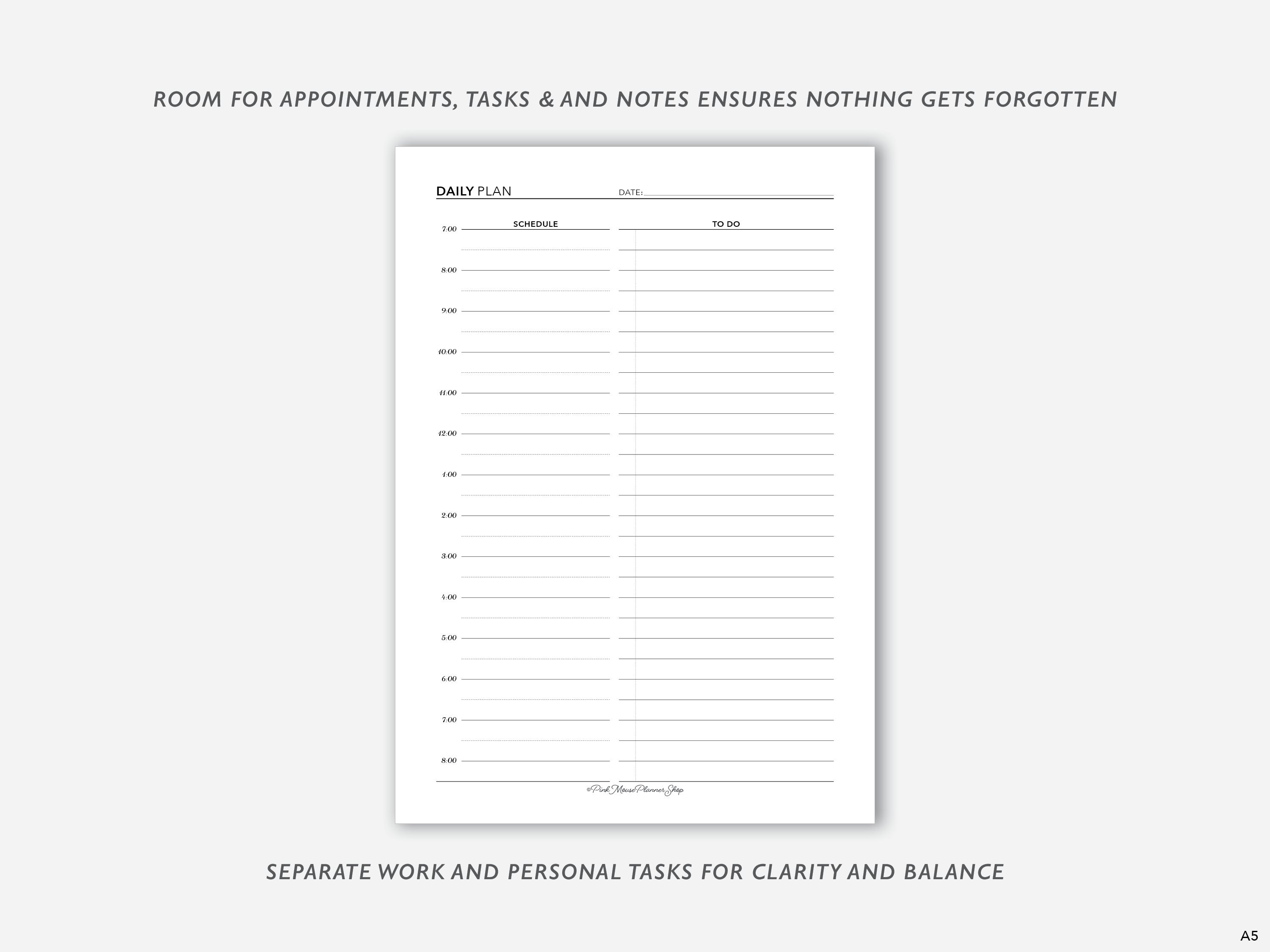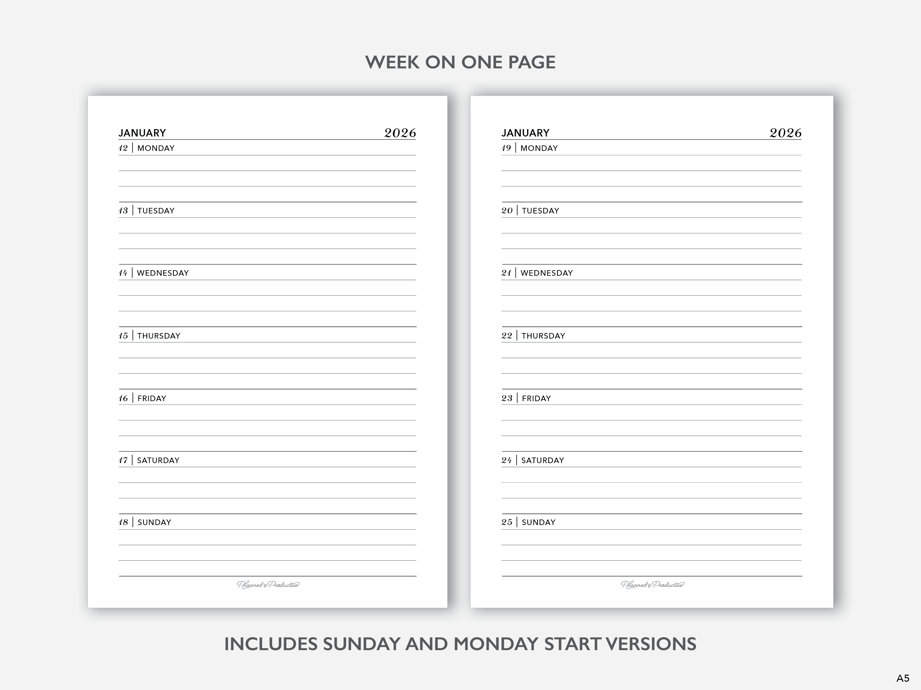 2026 Daily Vertical Style Planner Insert with Weekly Overview
