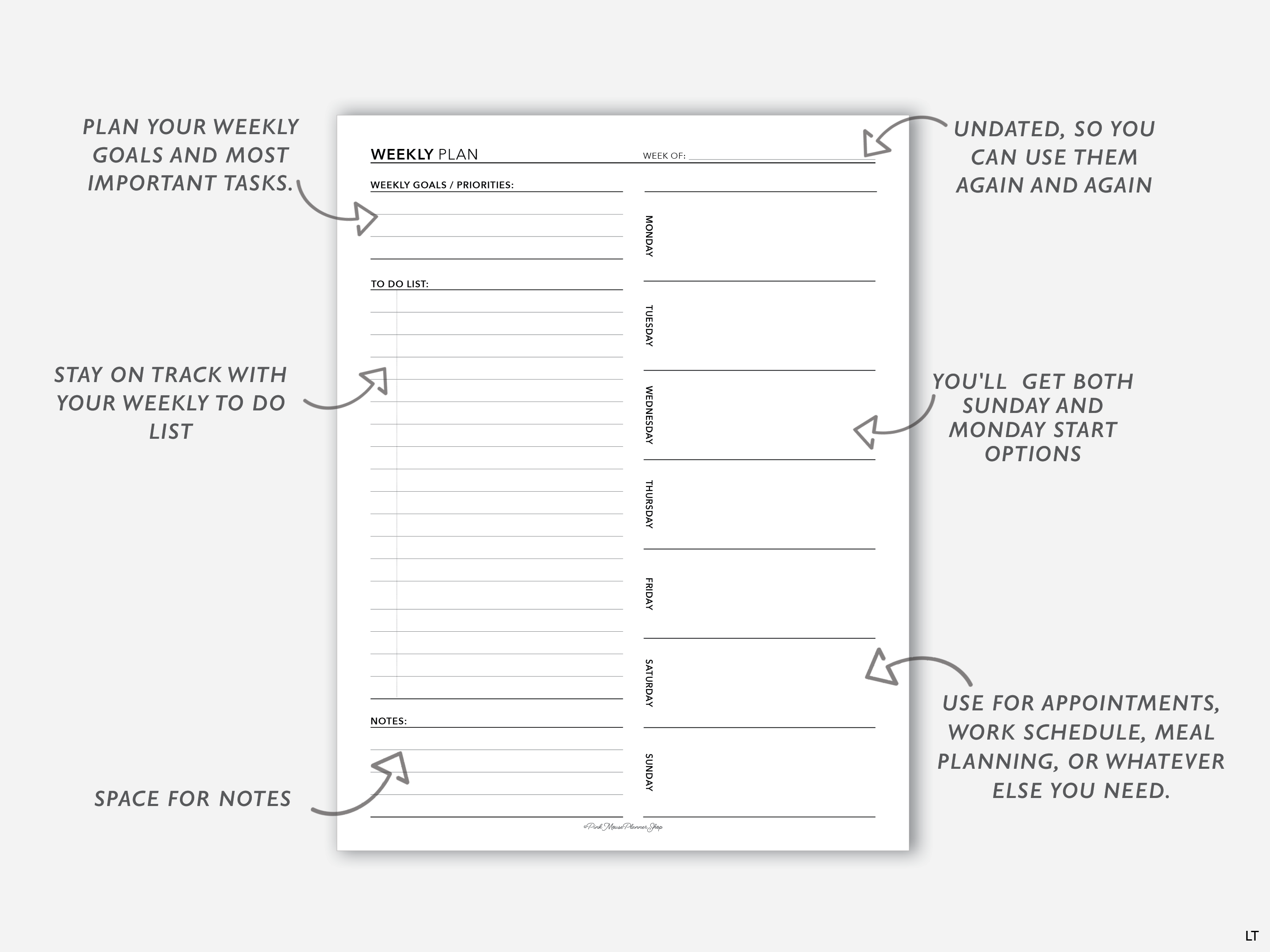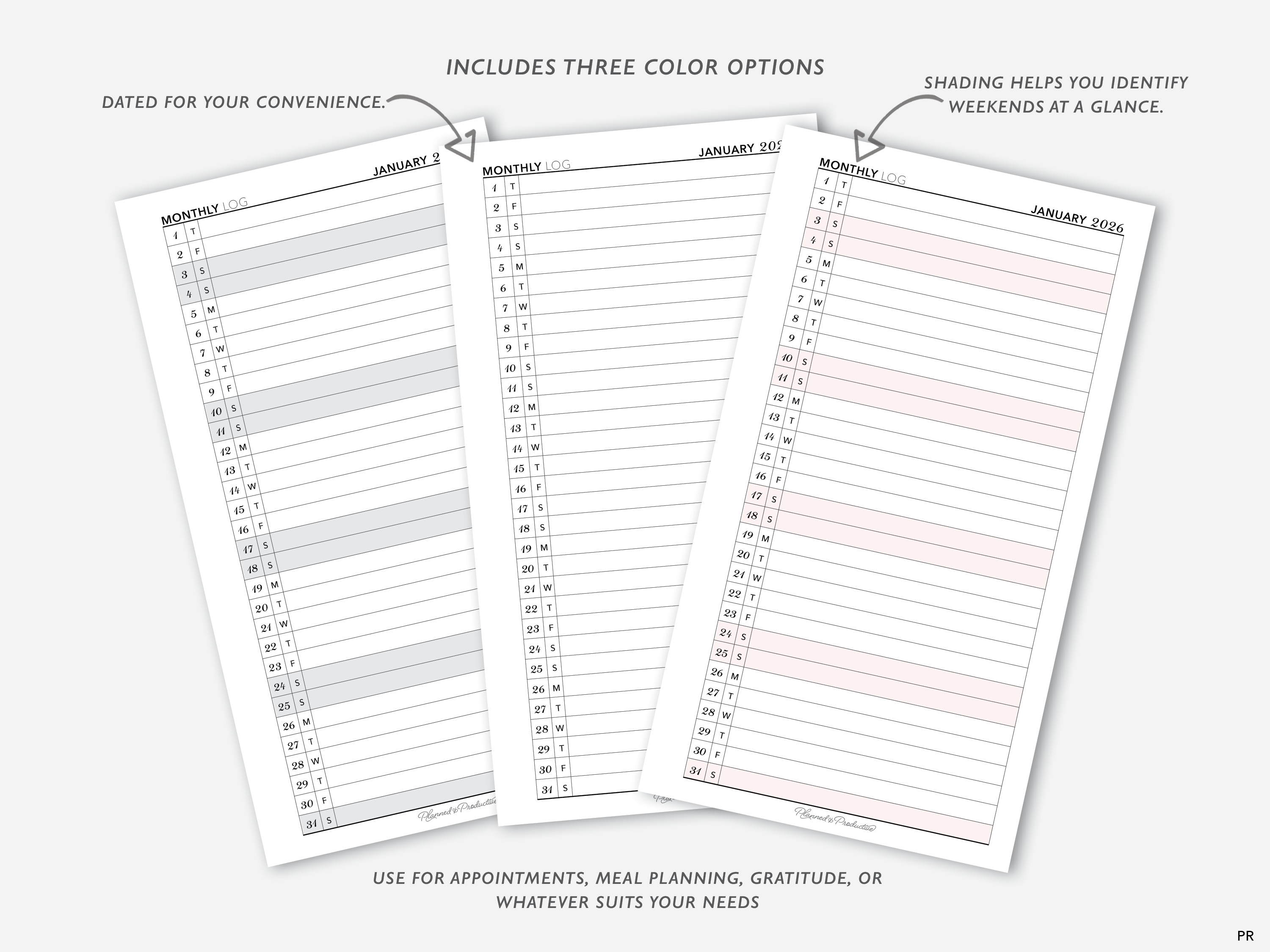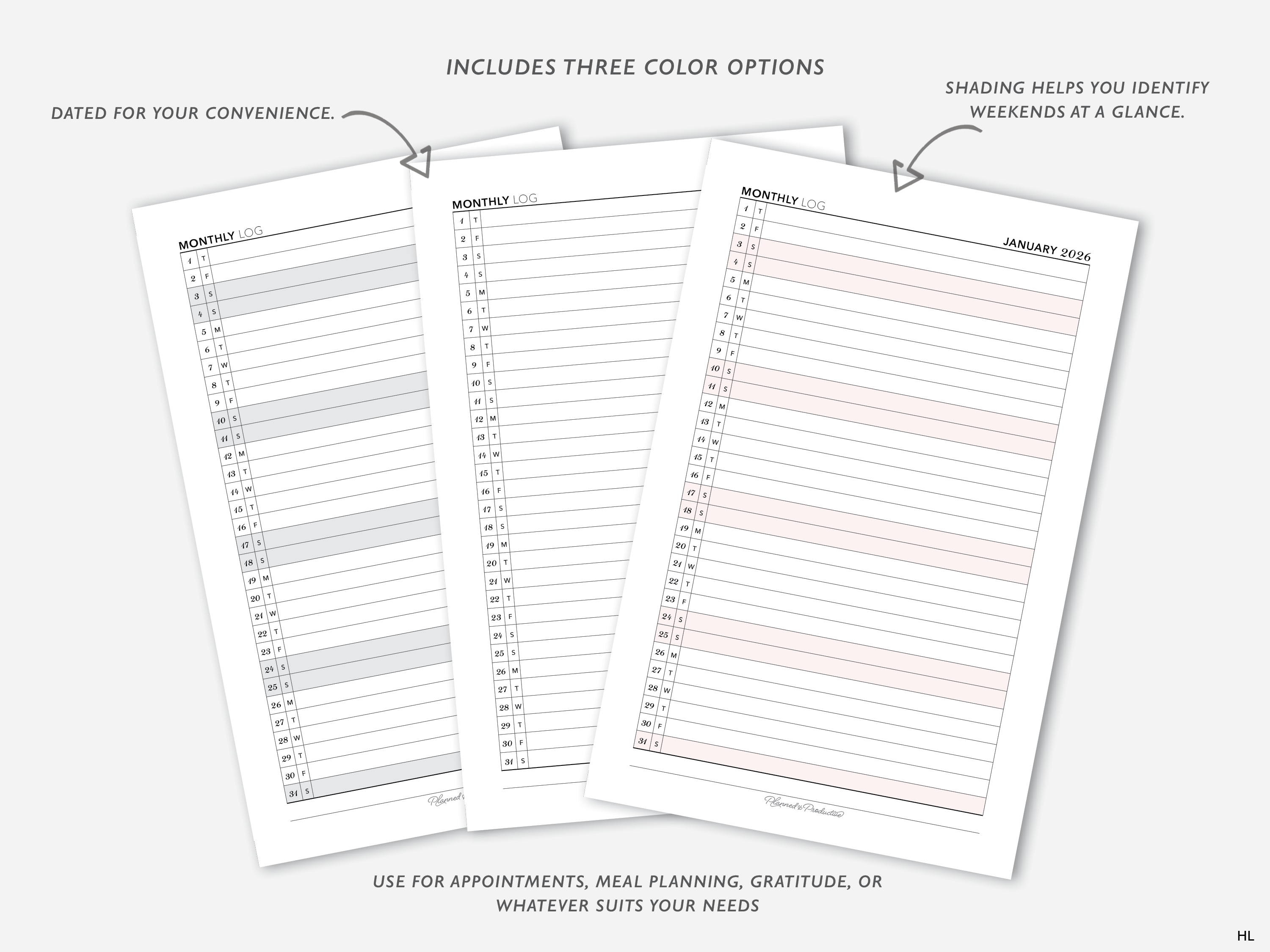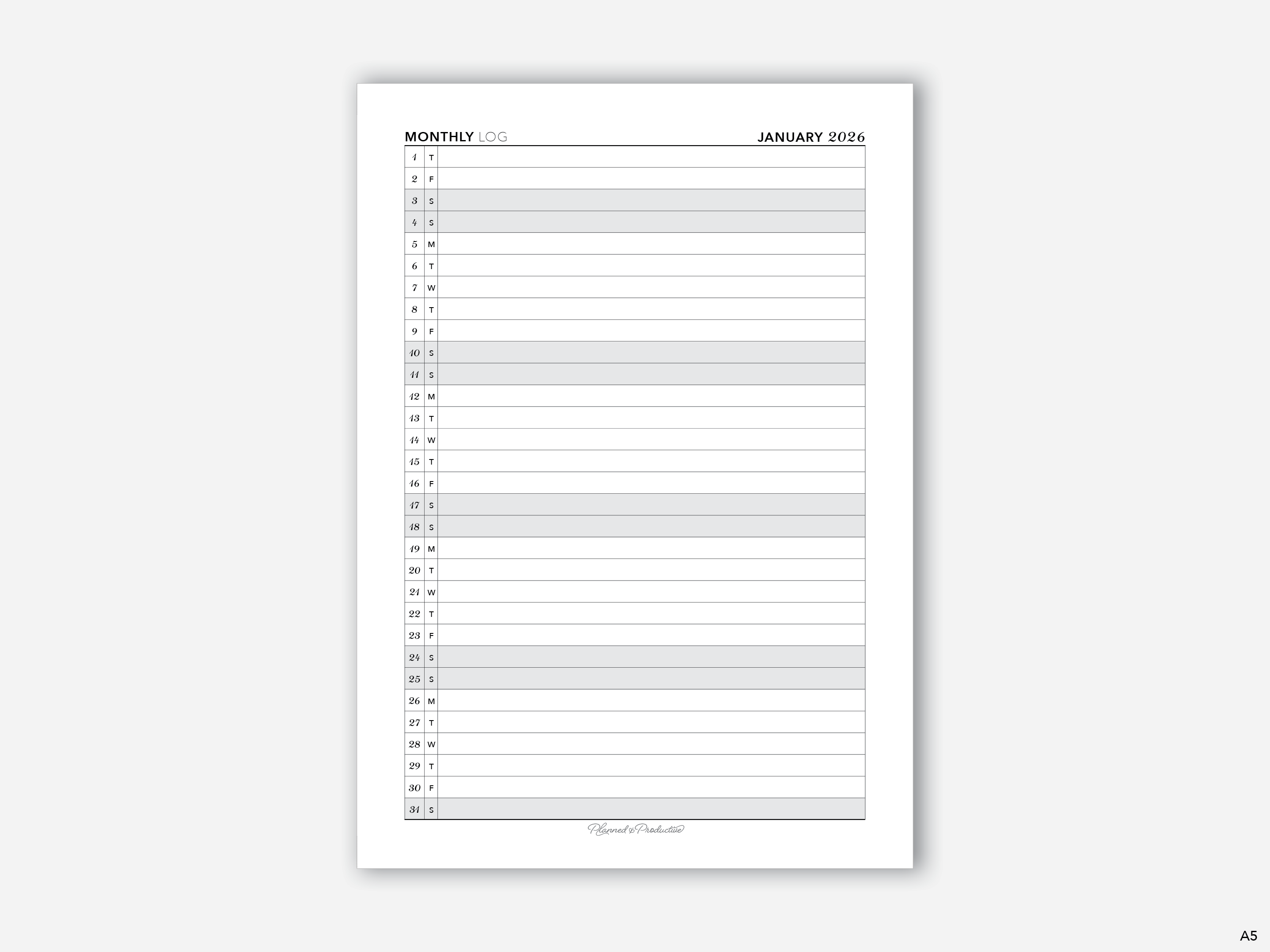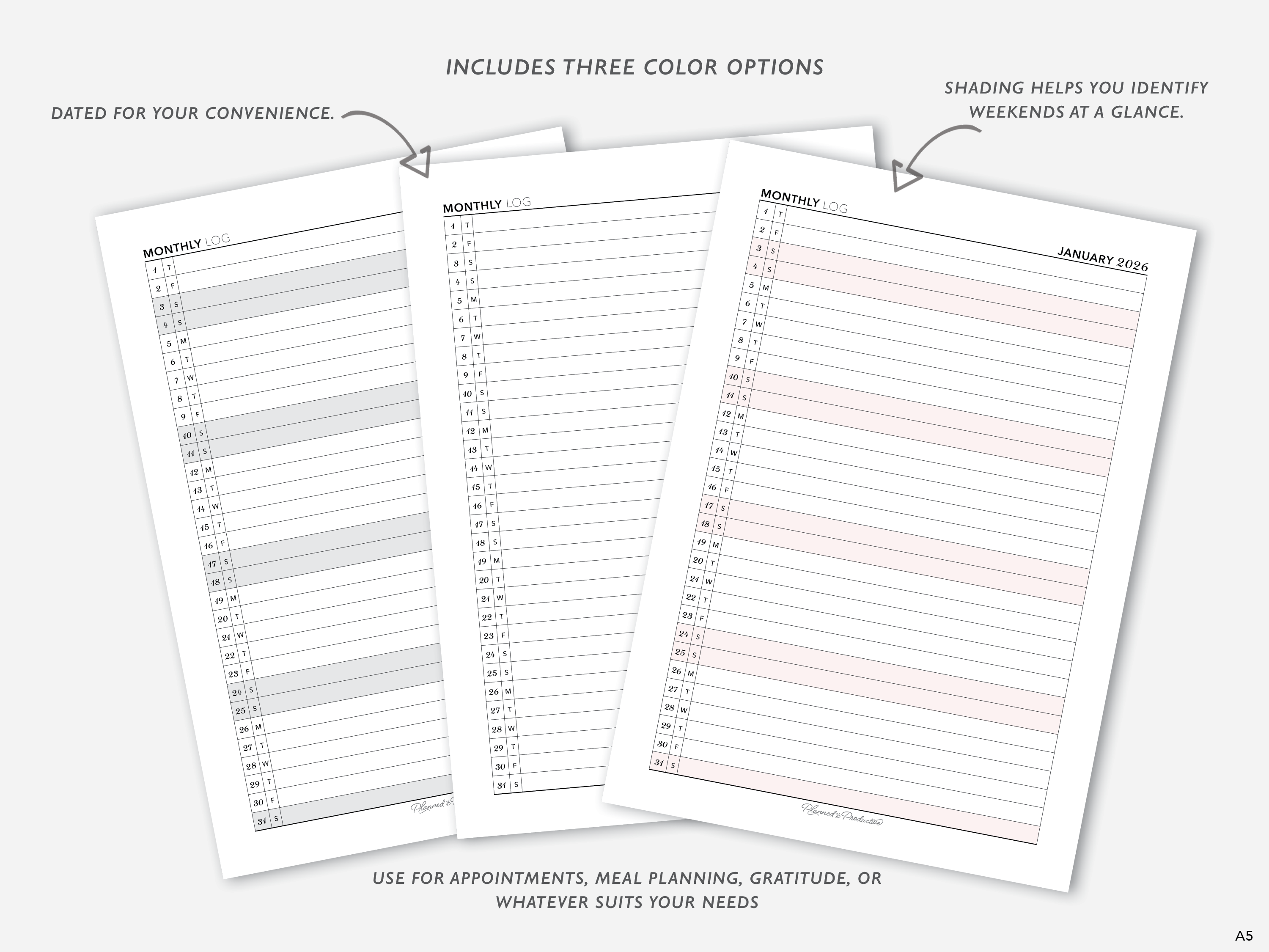 2026 Daily Vertical Style Planner Insert with Weekly Overview