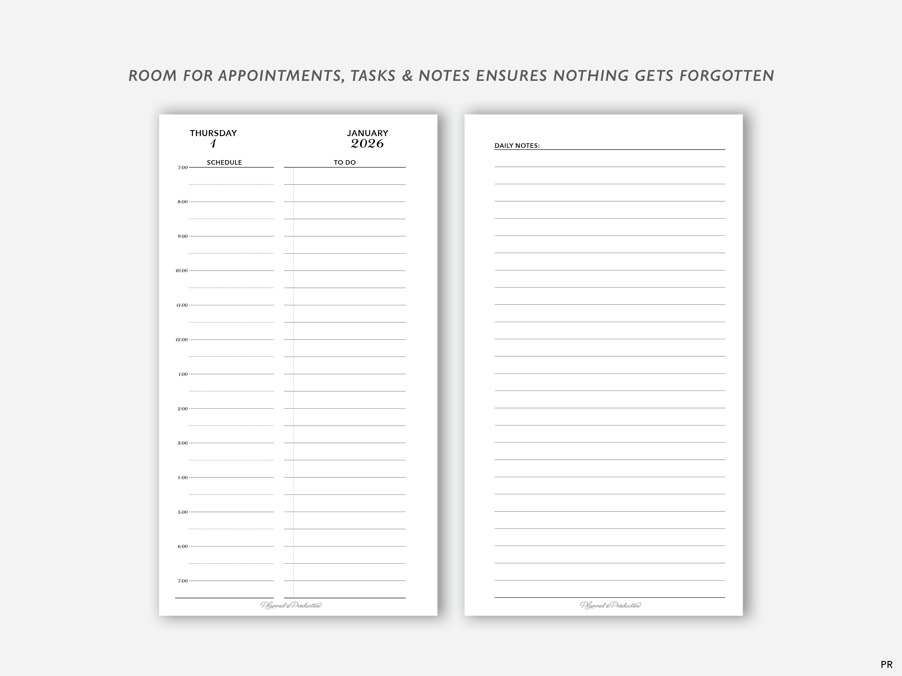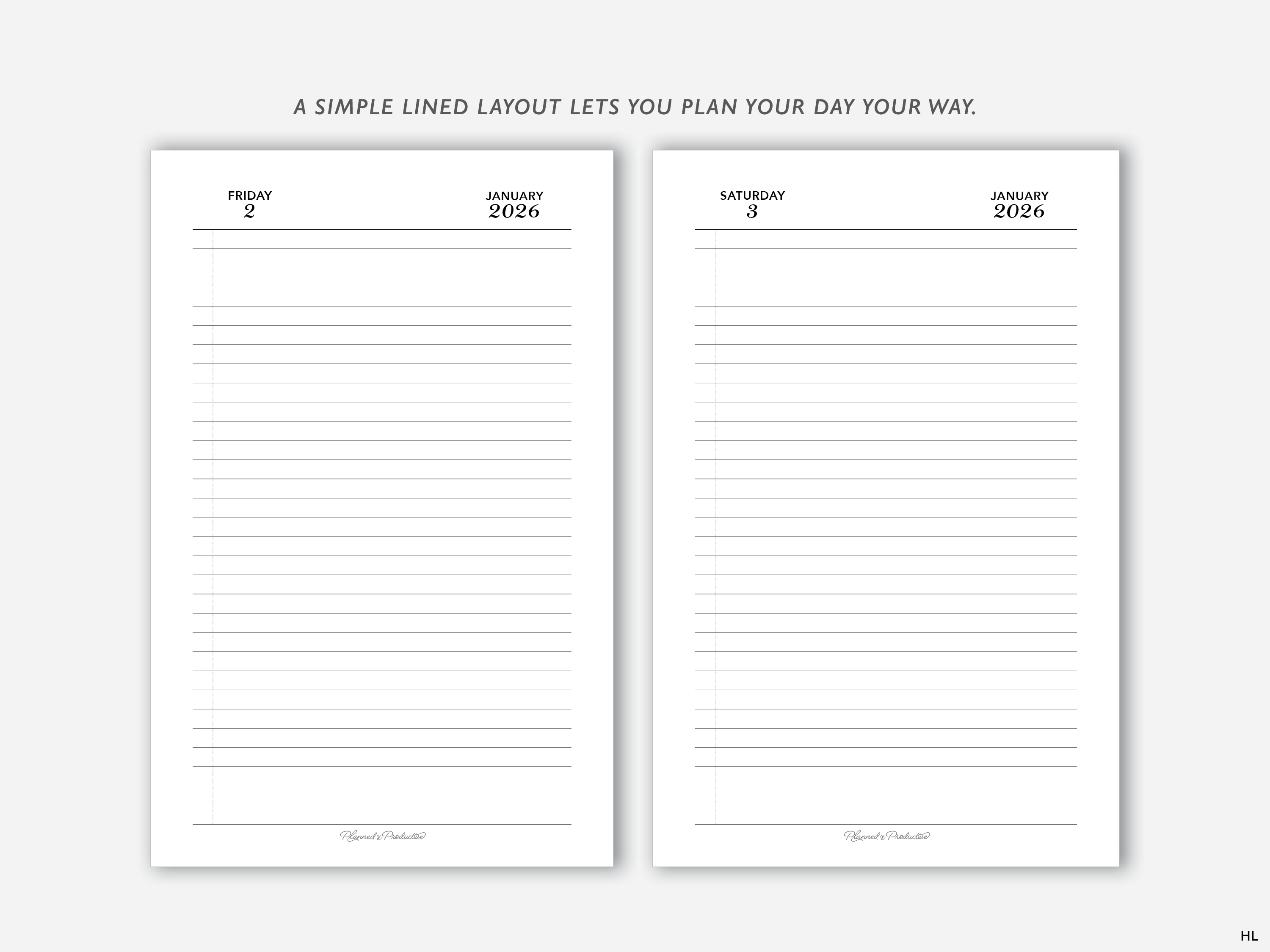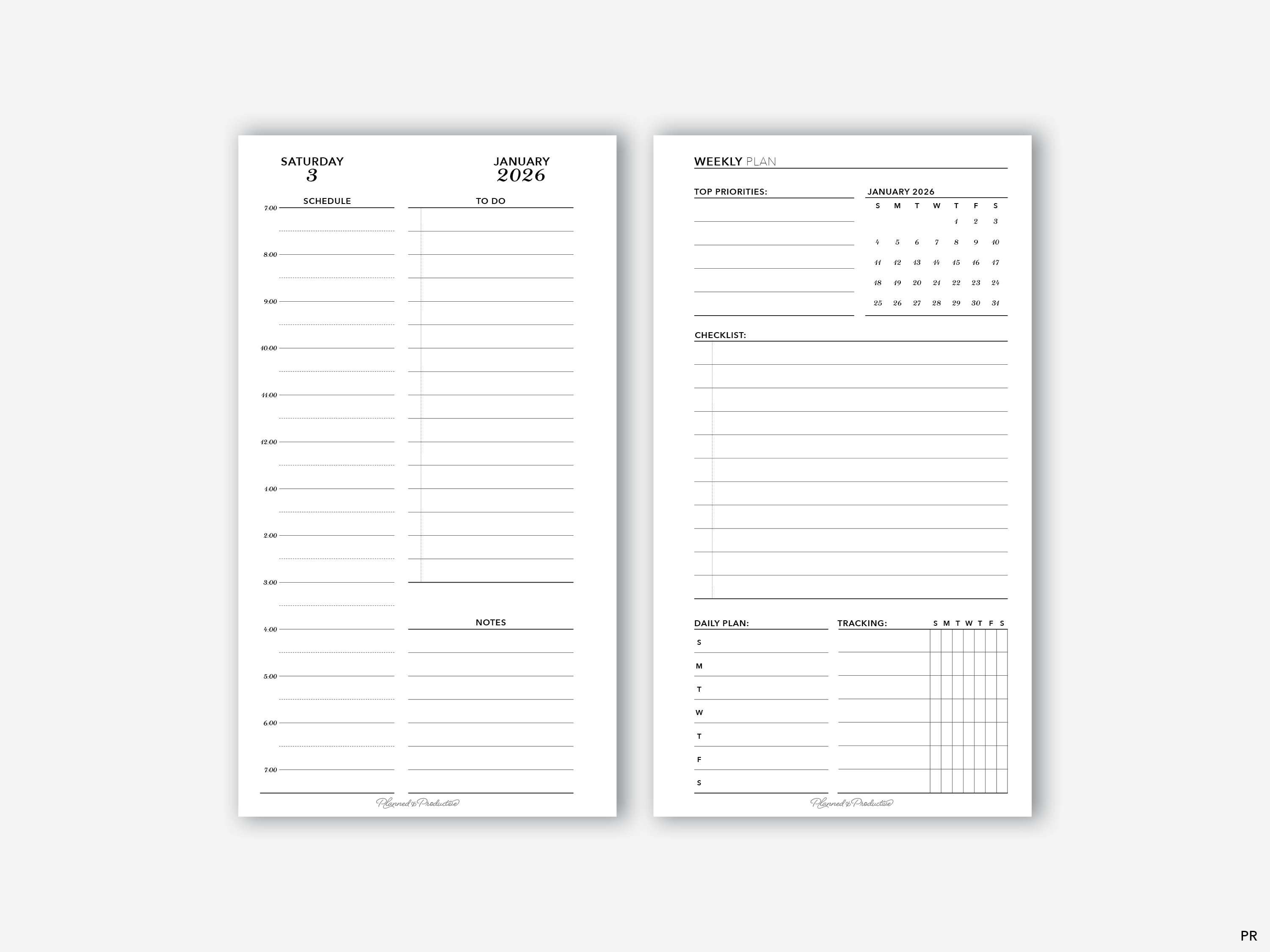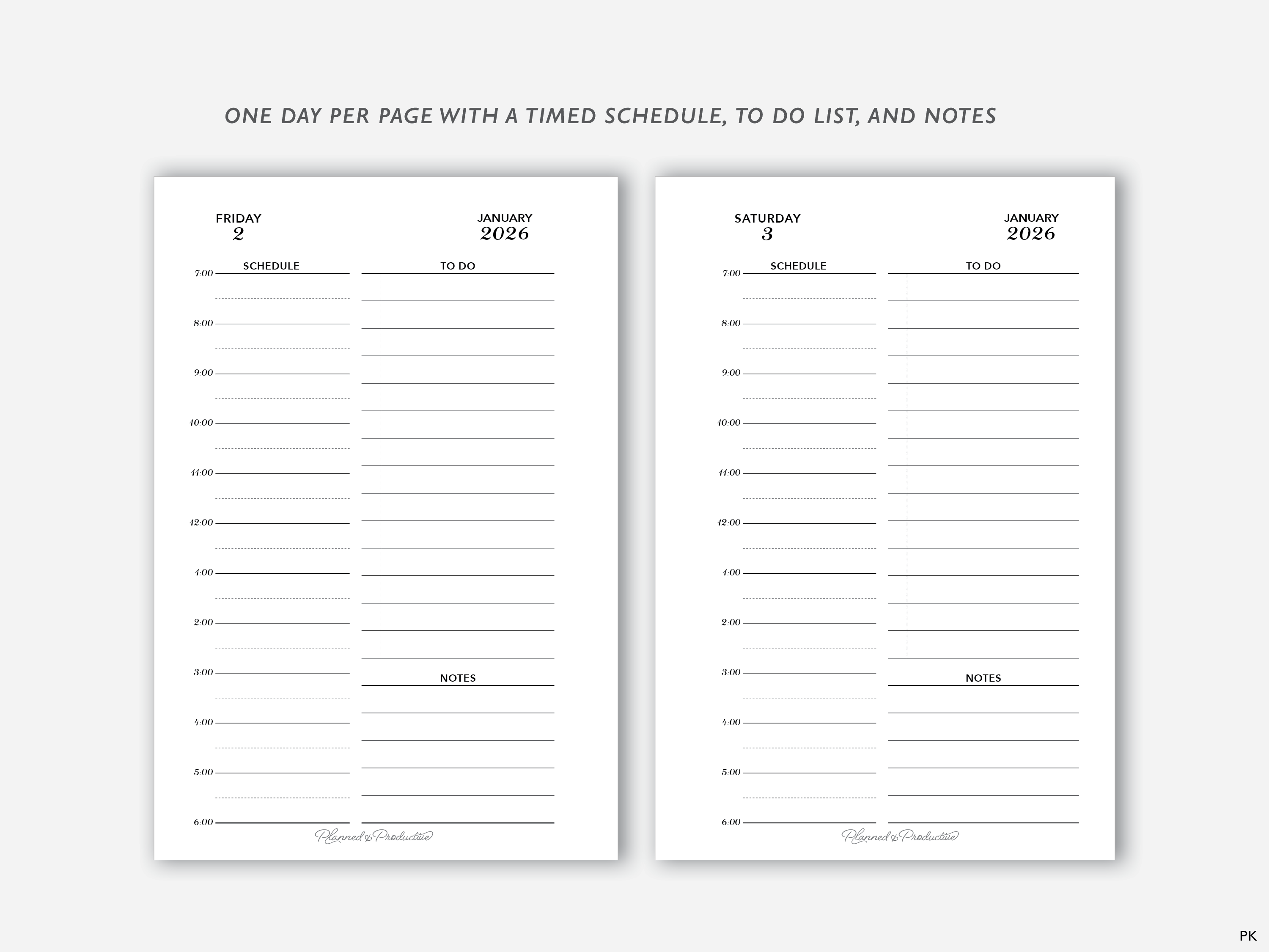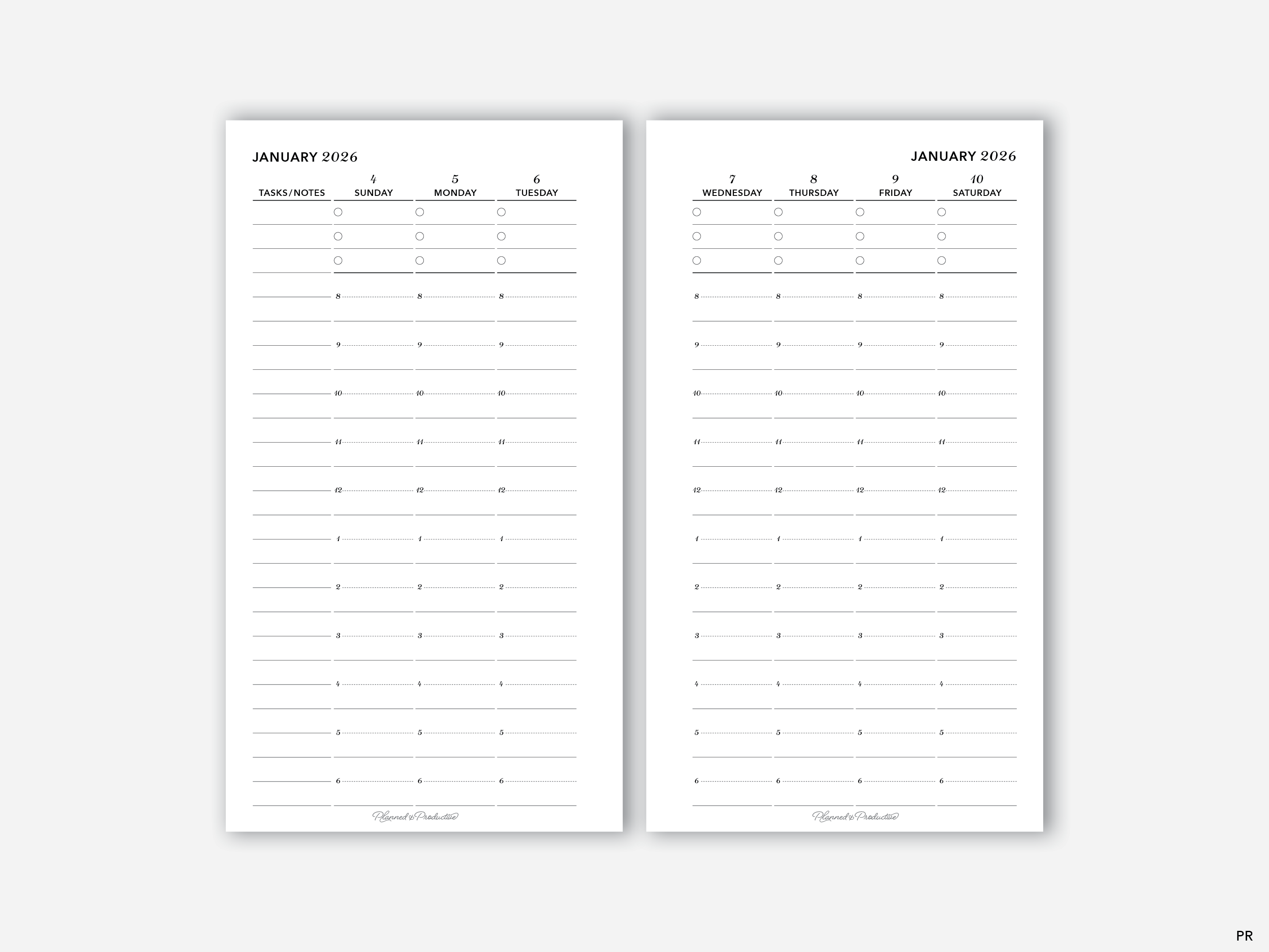 2026 Two Page Daily Timed Style Insert with Weekly Overview