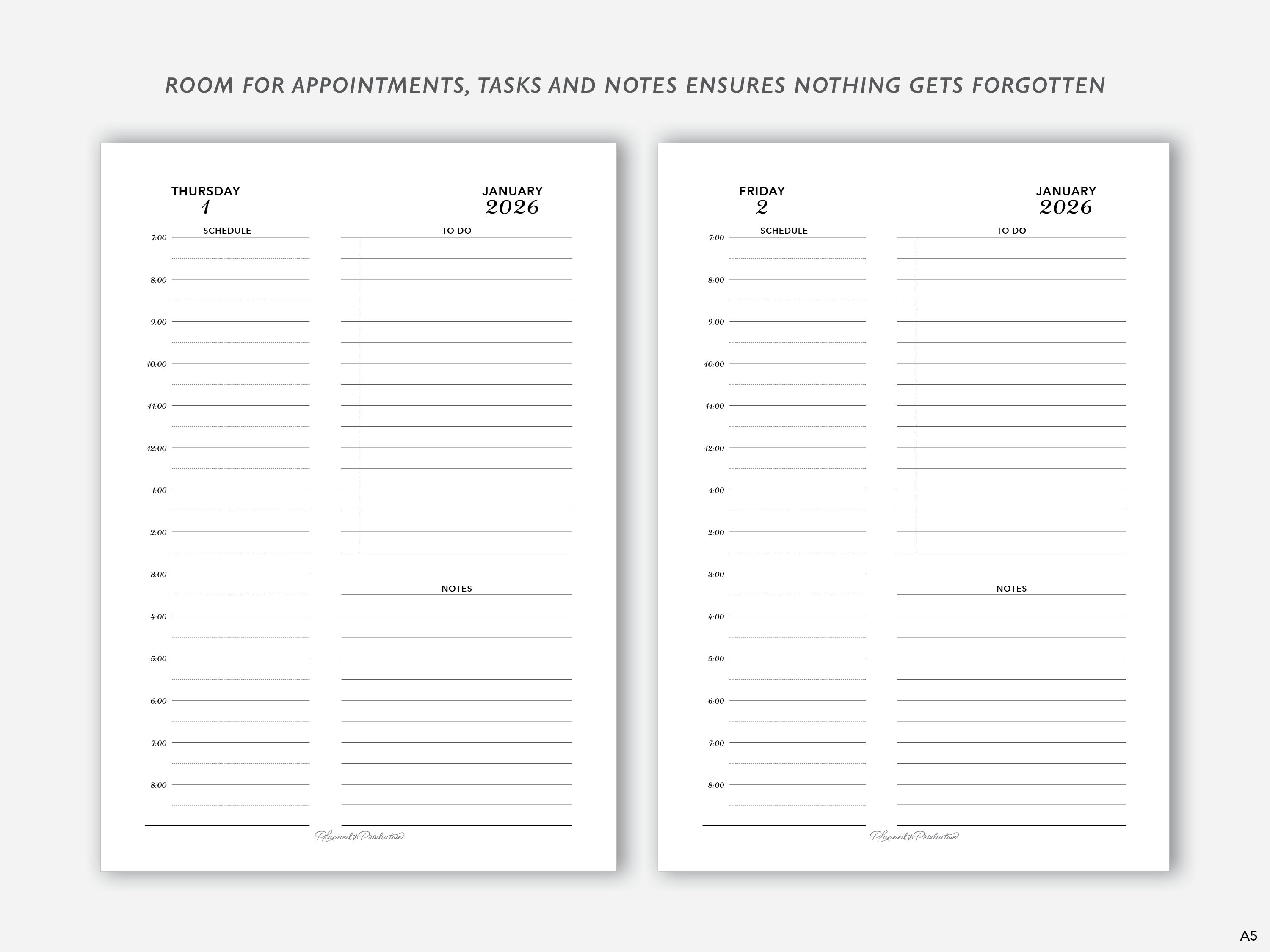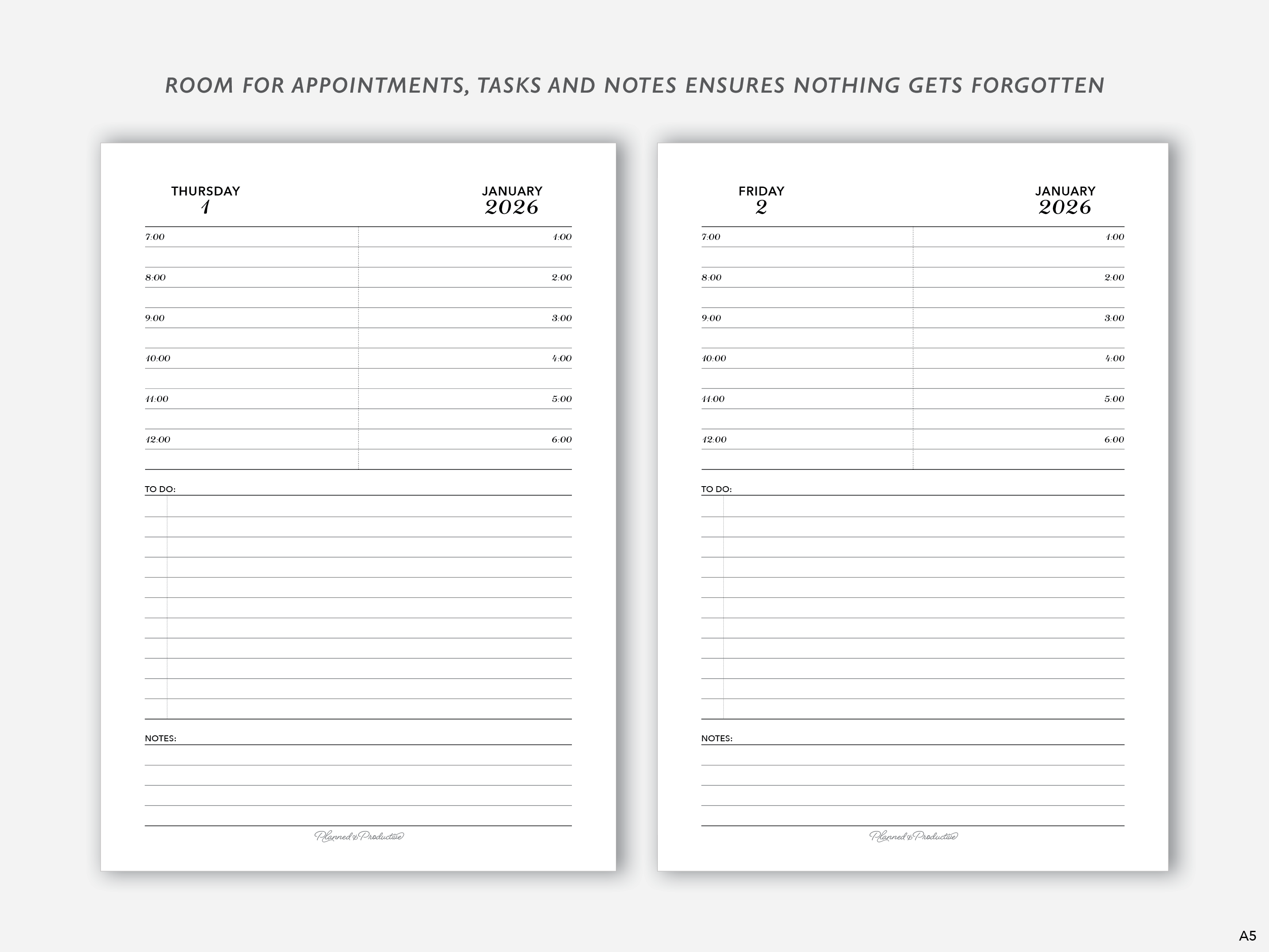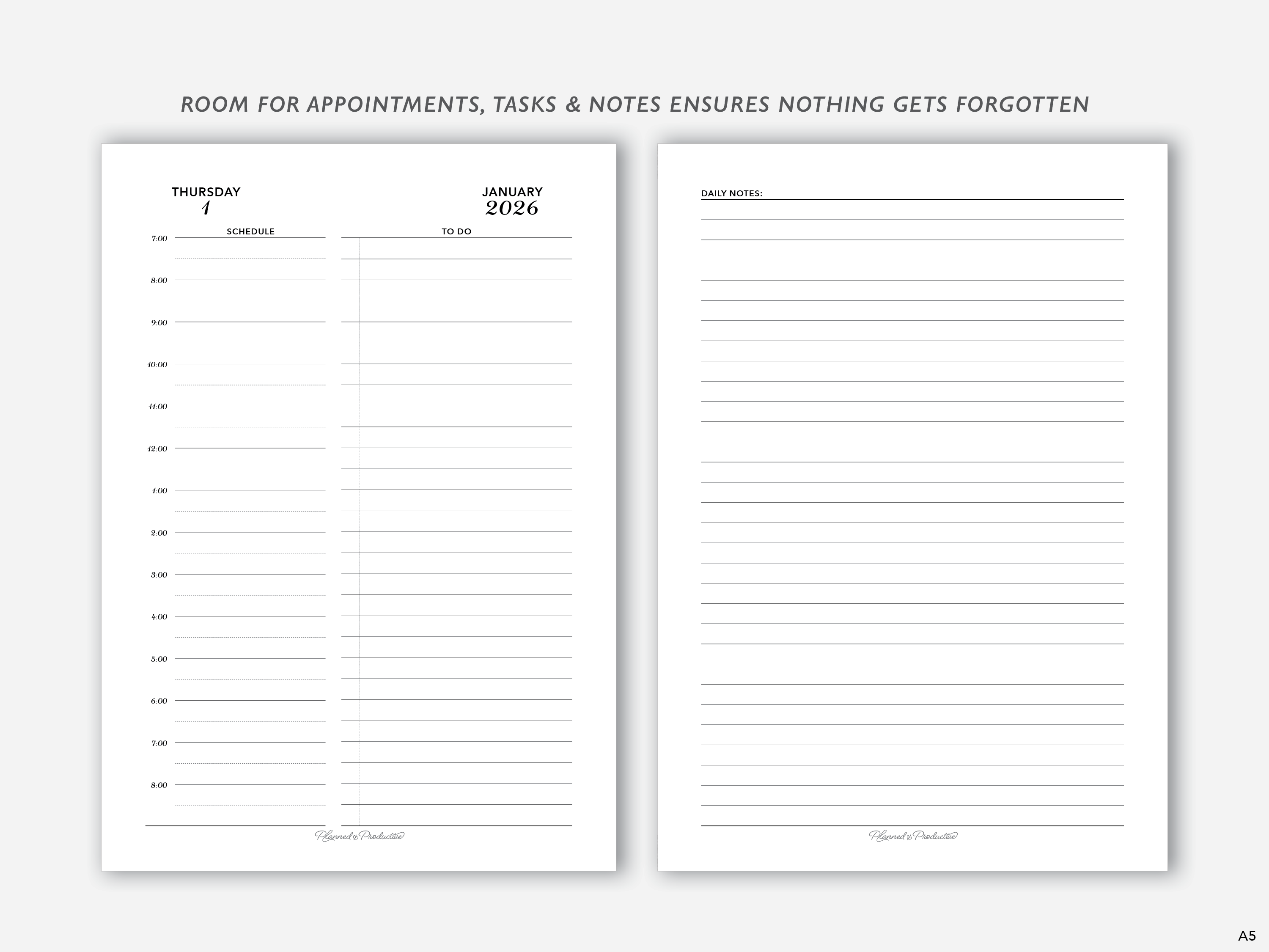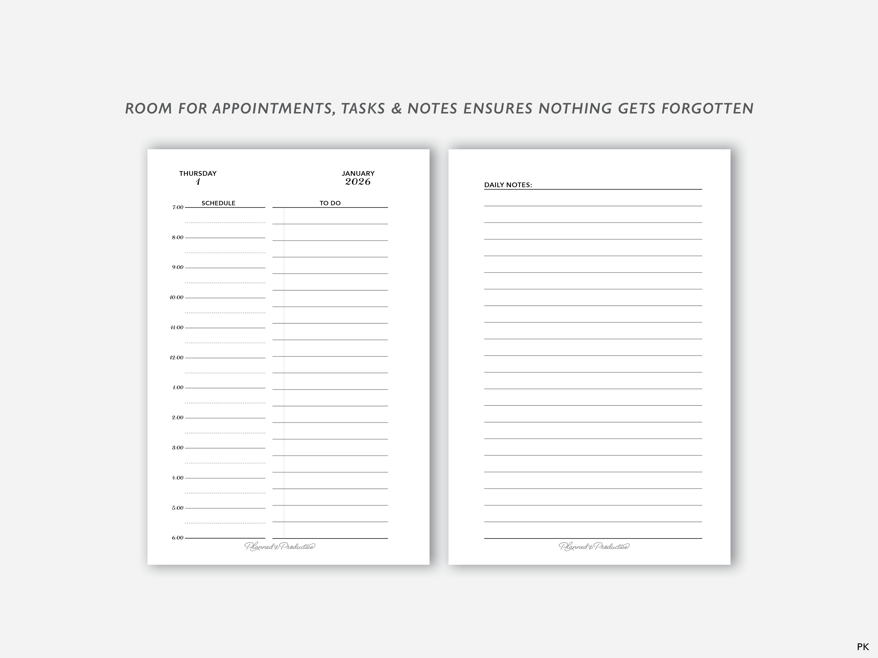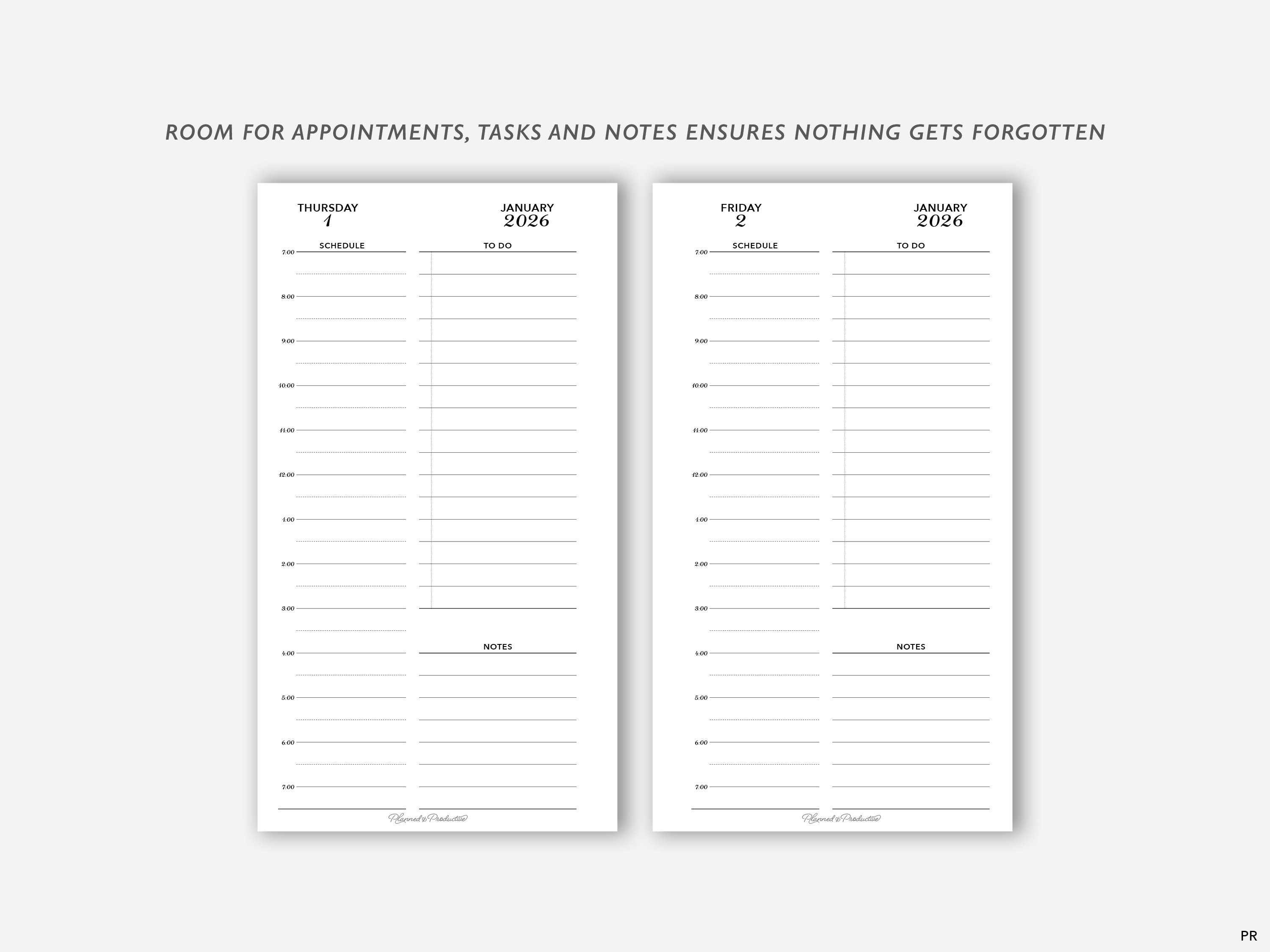 2026 Two Page Daily Timed Style Insert with Weekly Overview