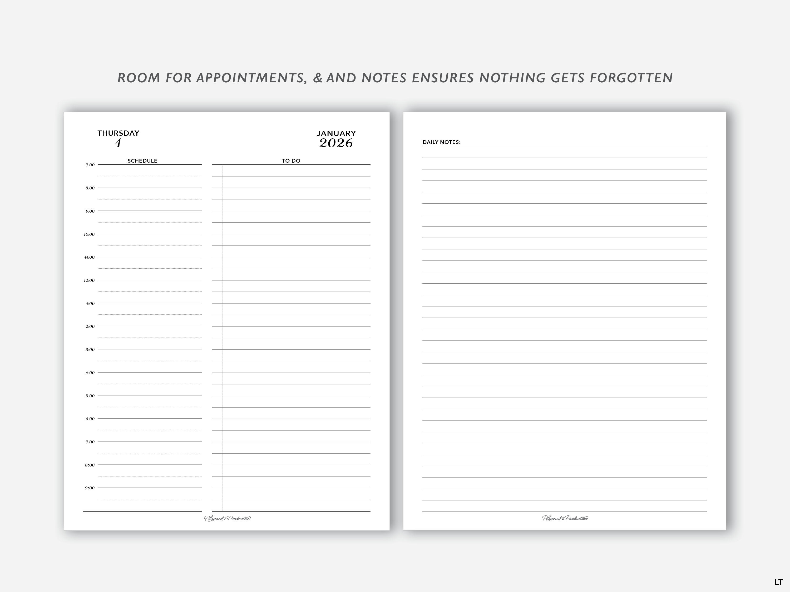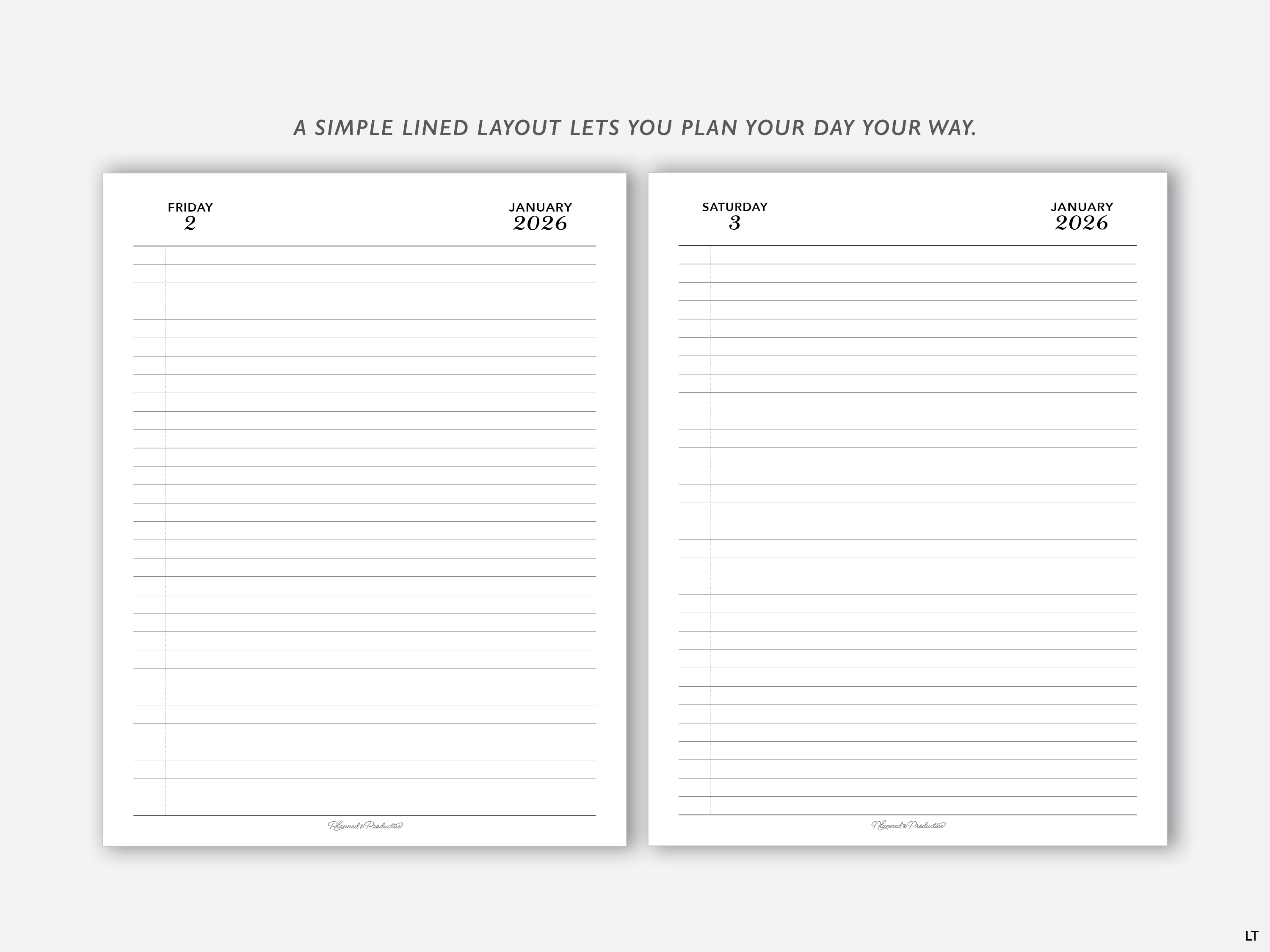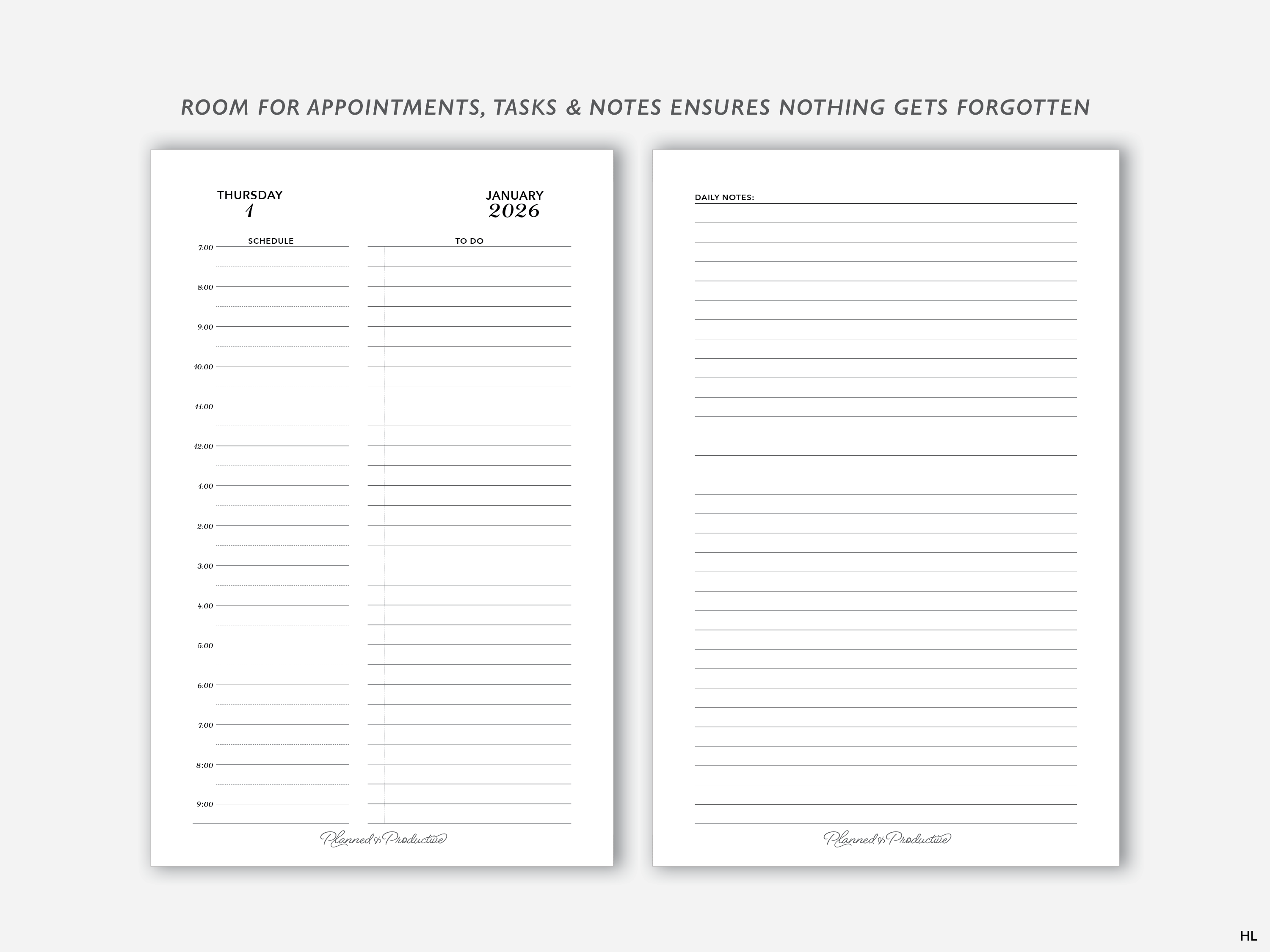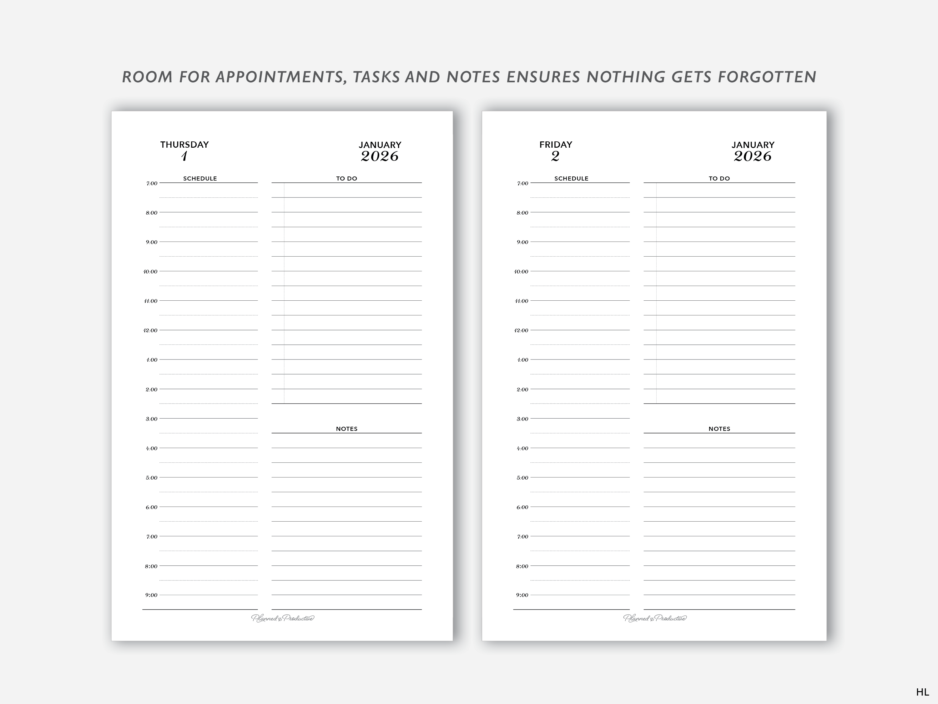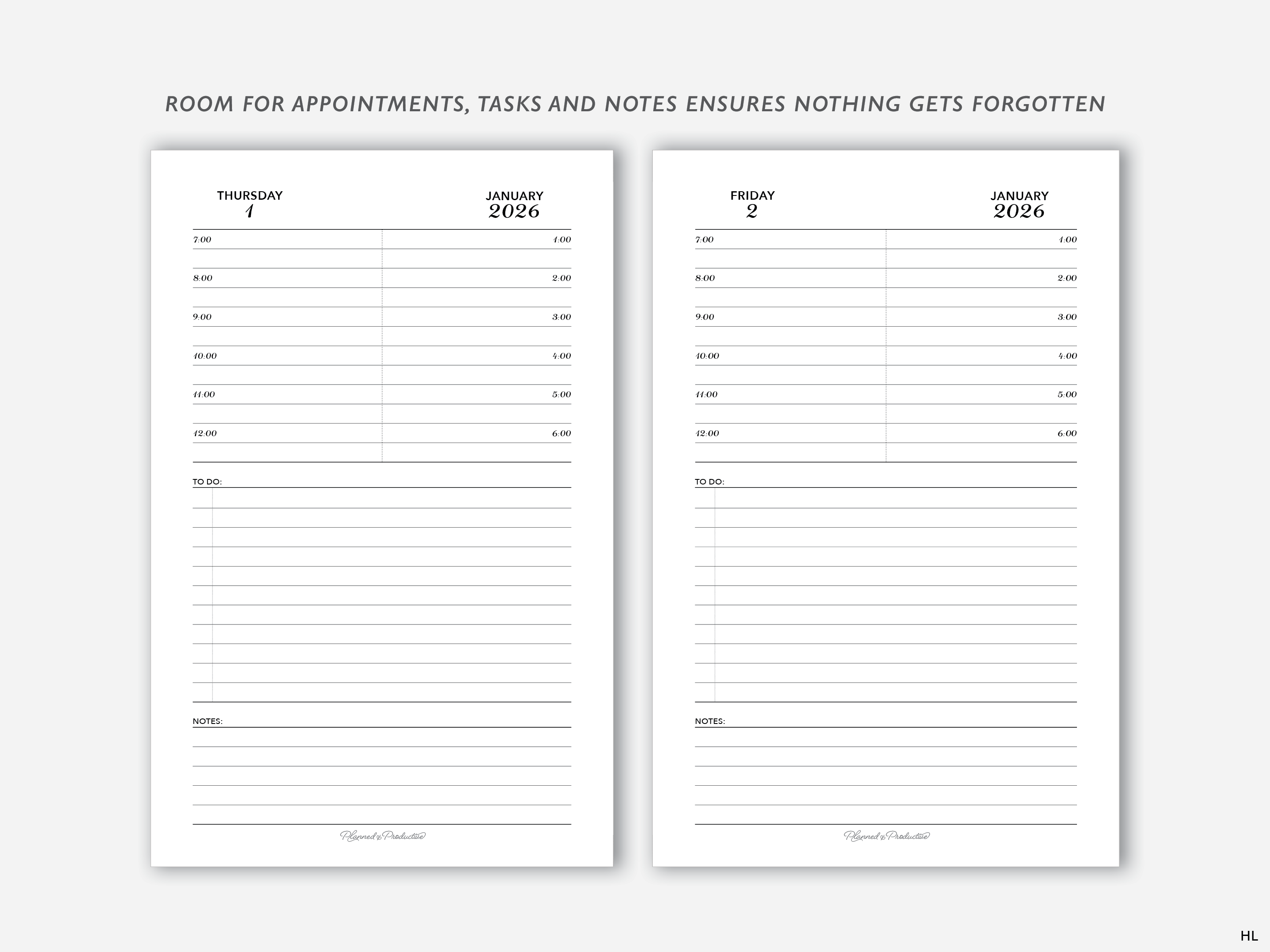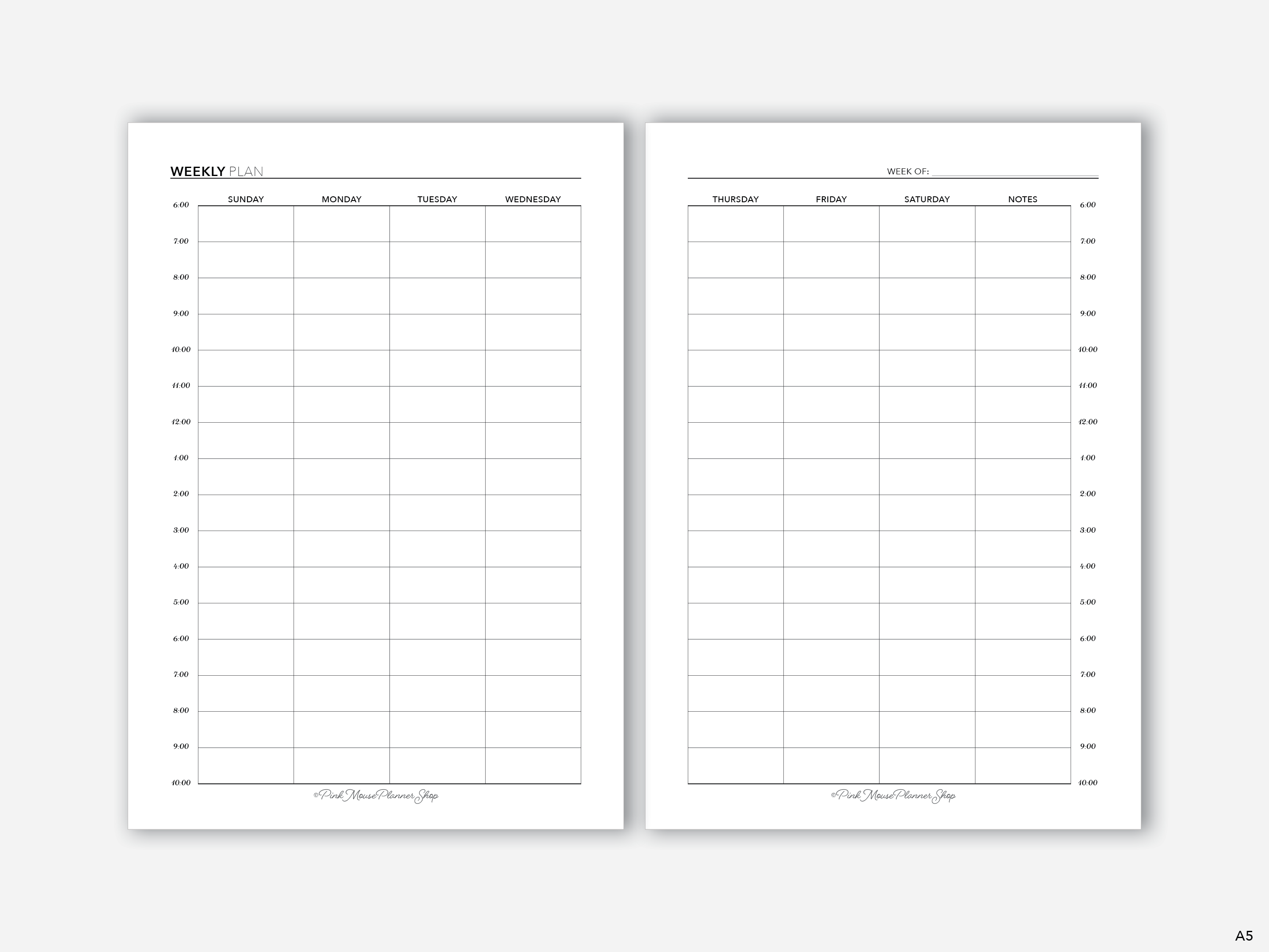 2026 Two Page Daily Timed Style Insert with Weekly Overview