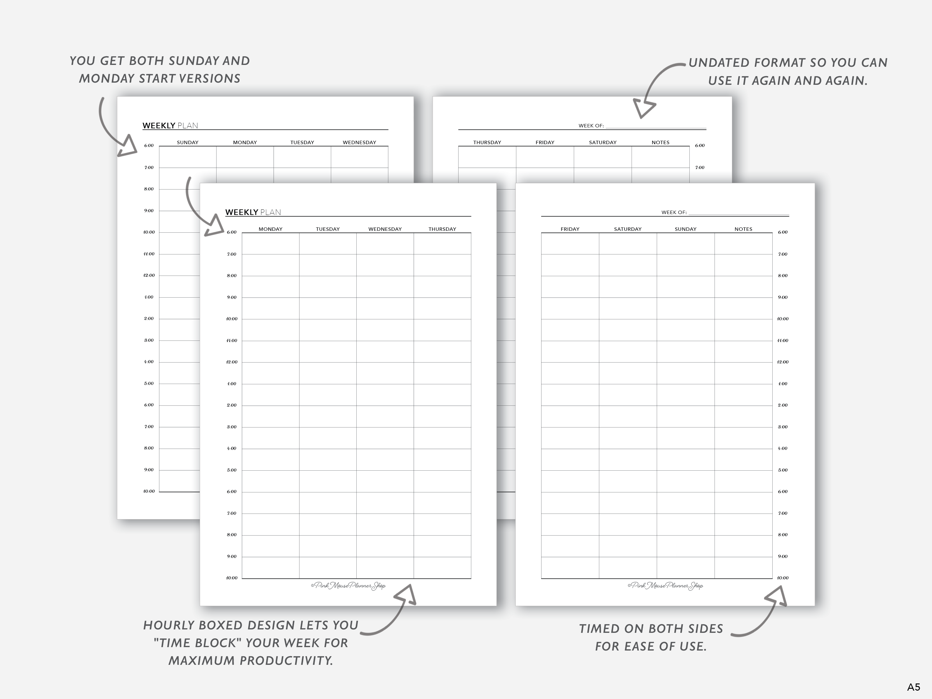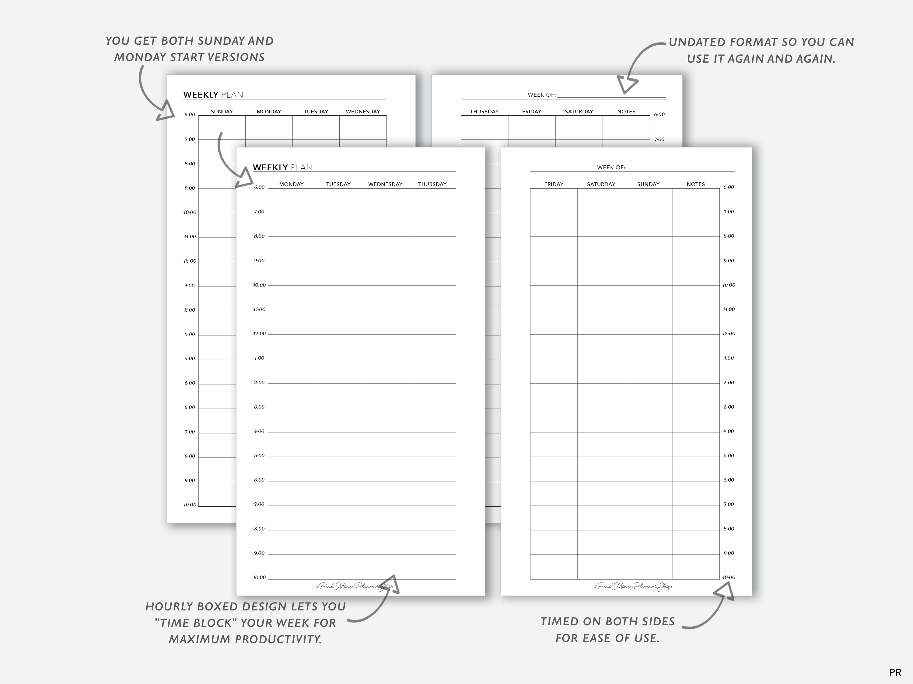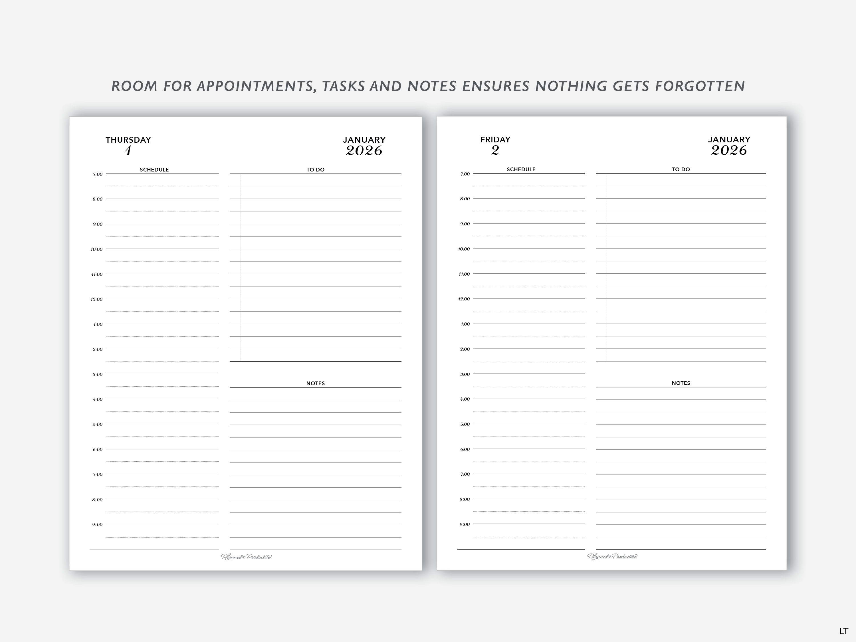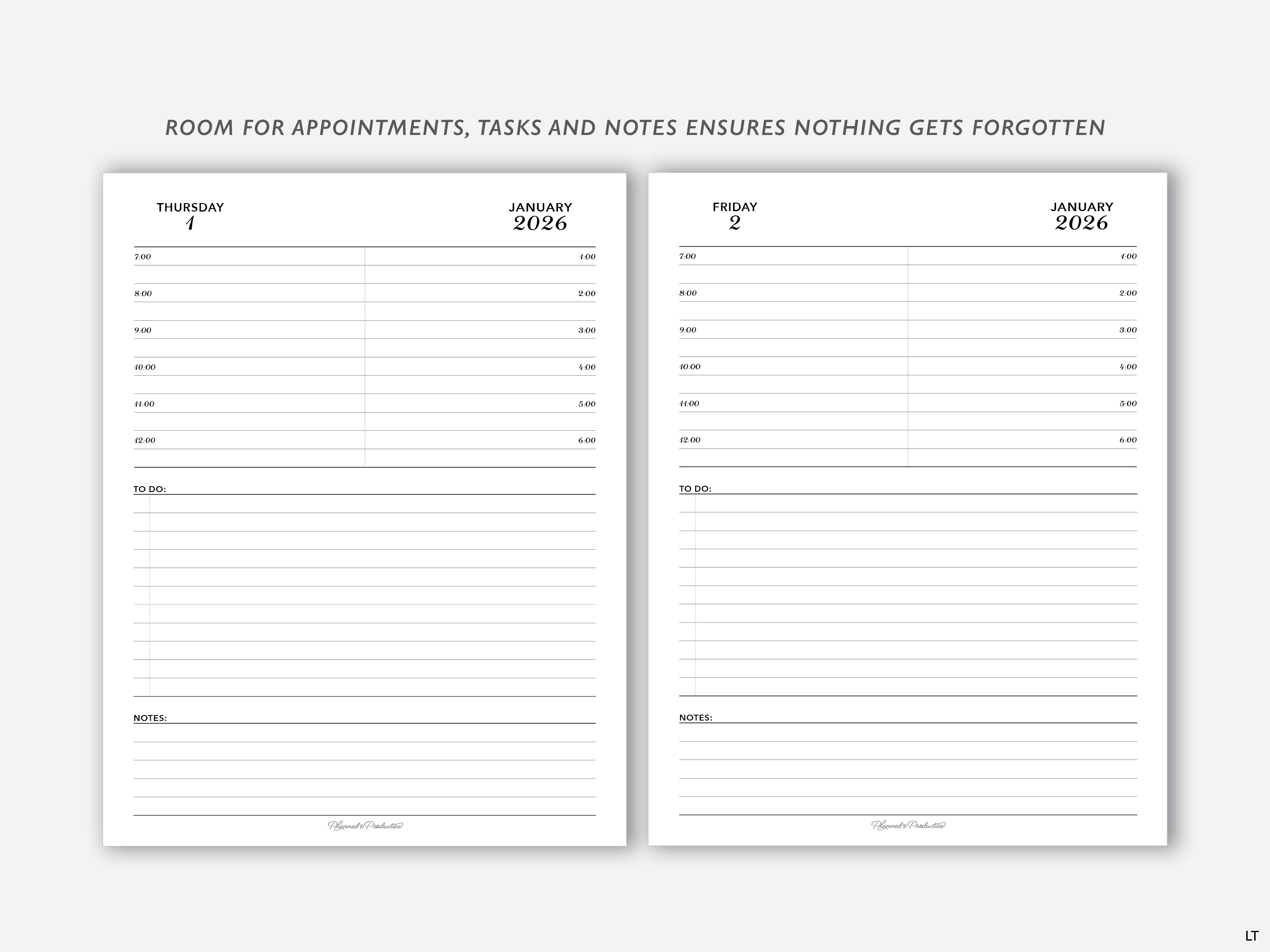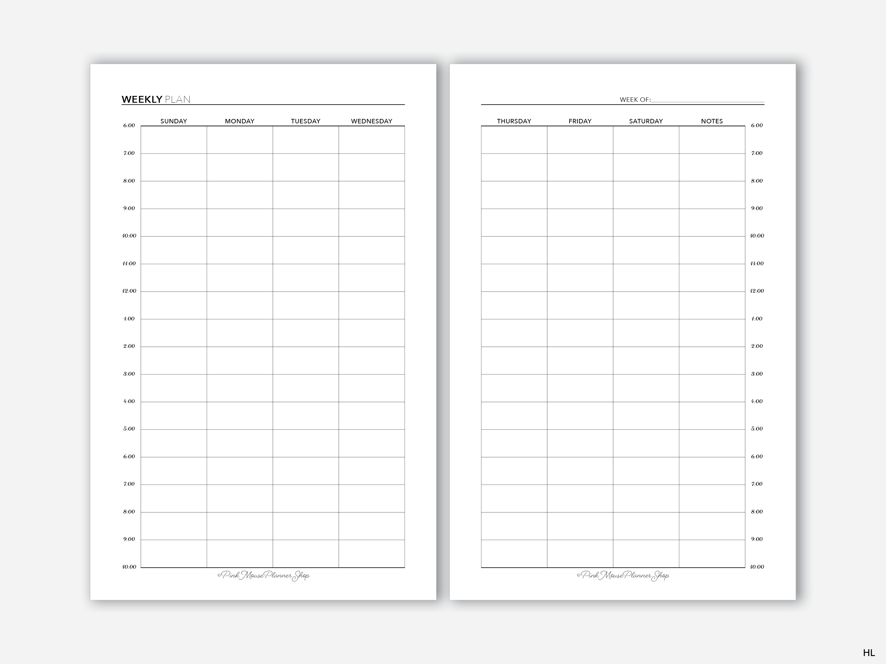 2026 Two Page Daily Timed Style Insert with Weekly Overview