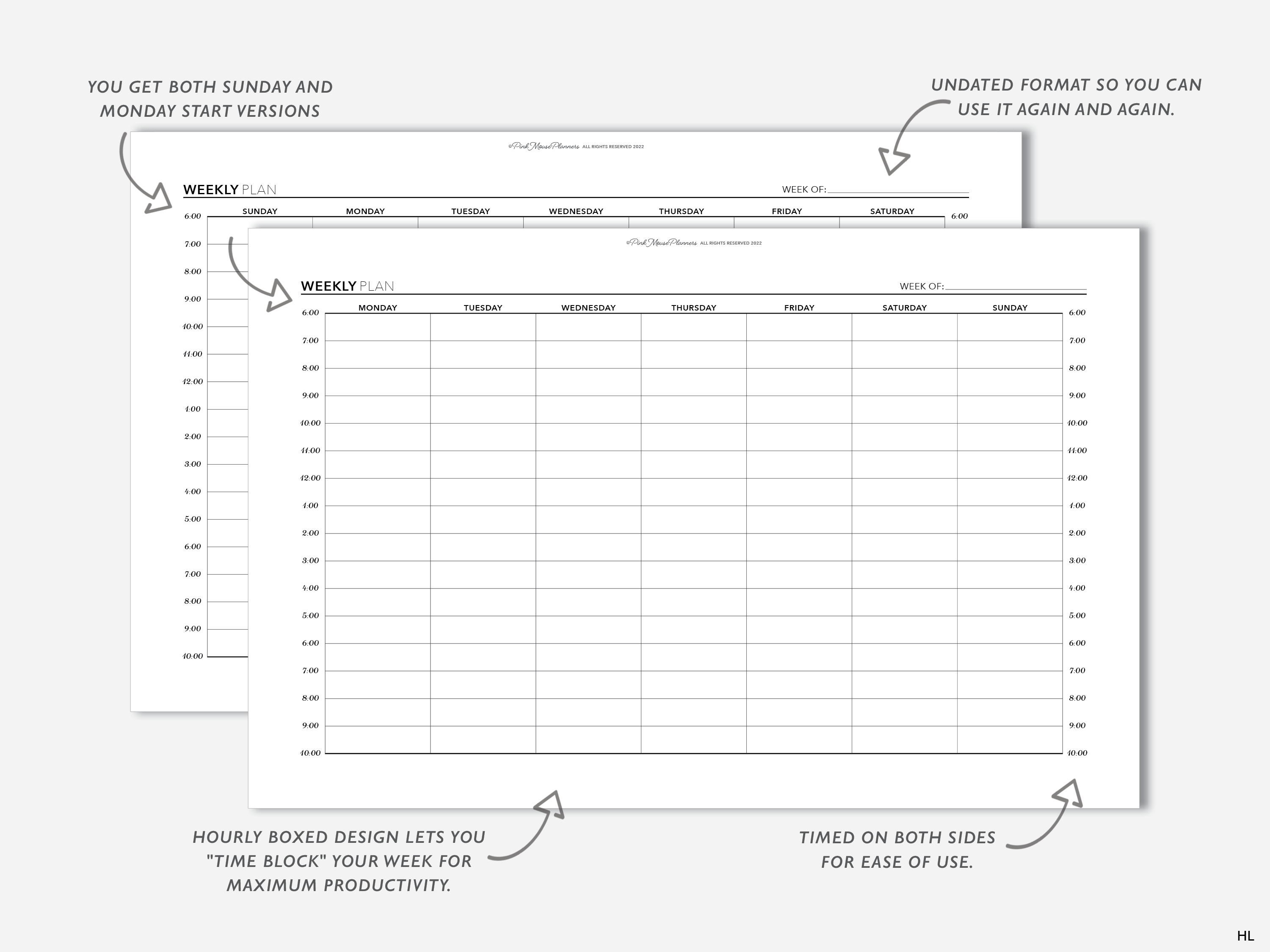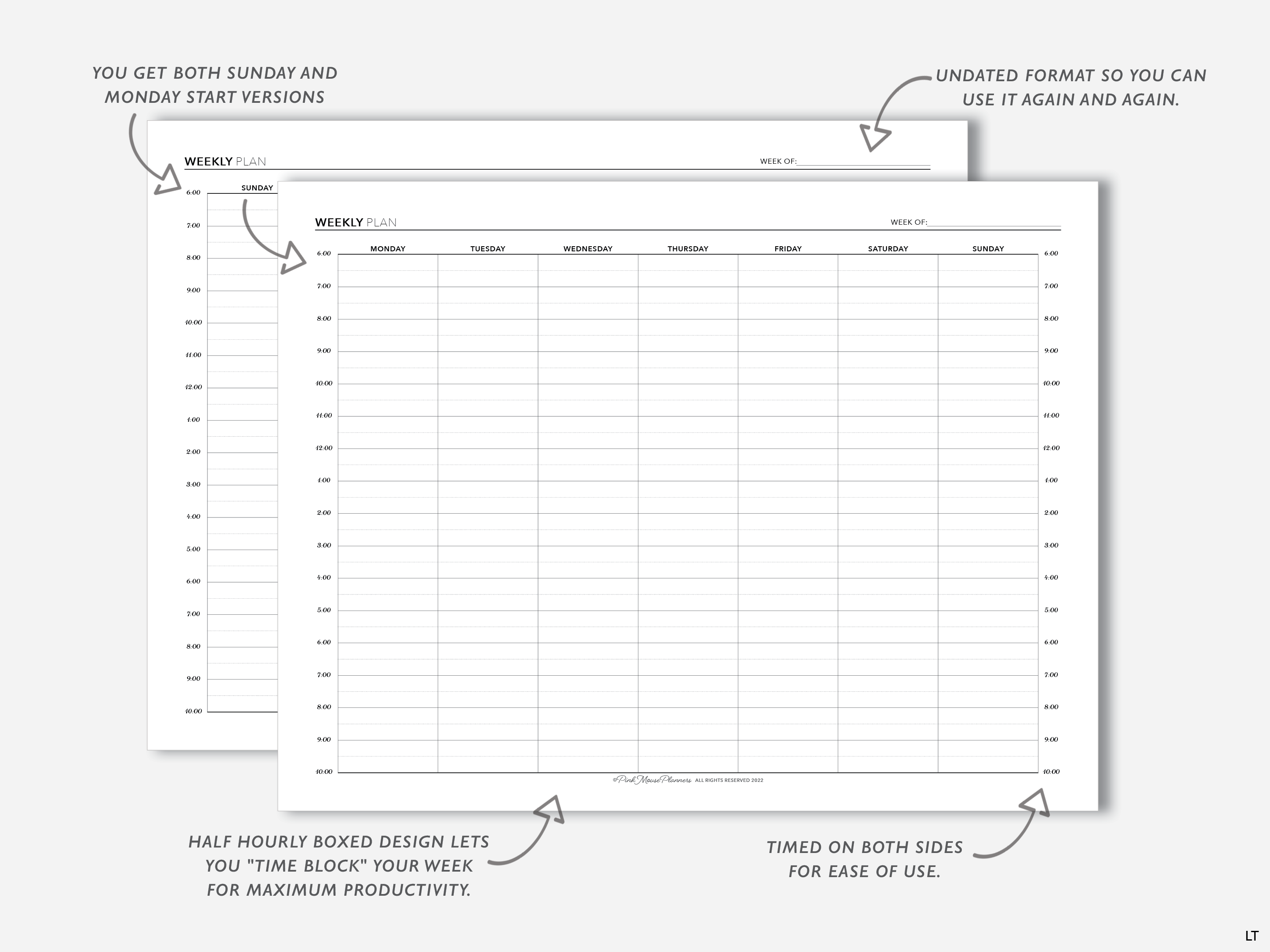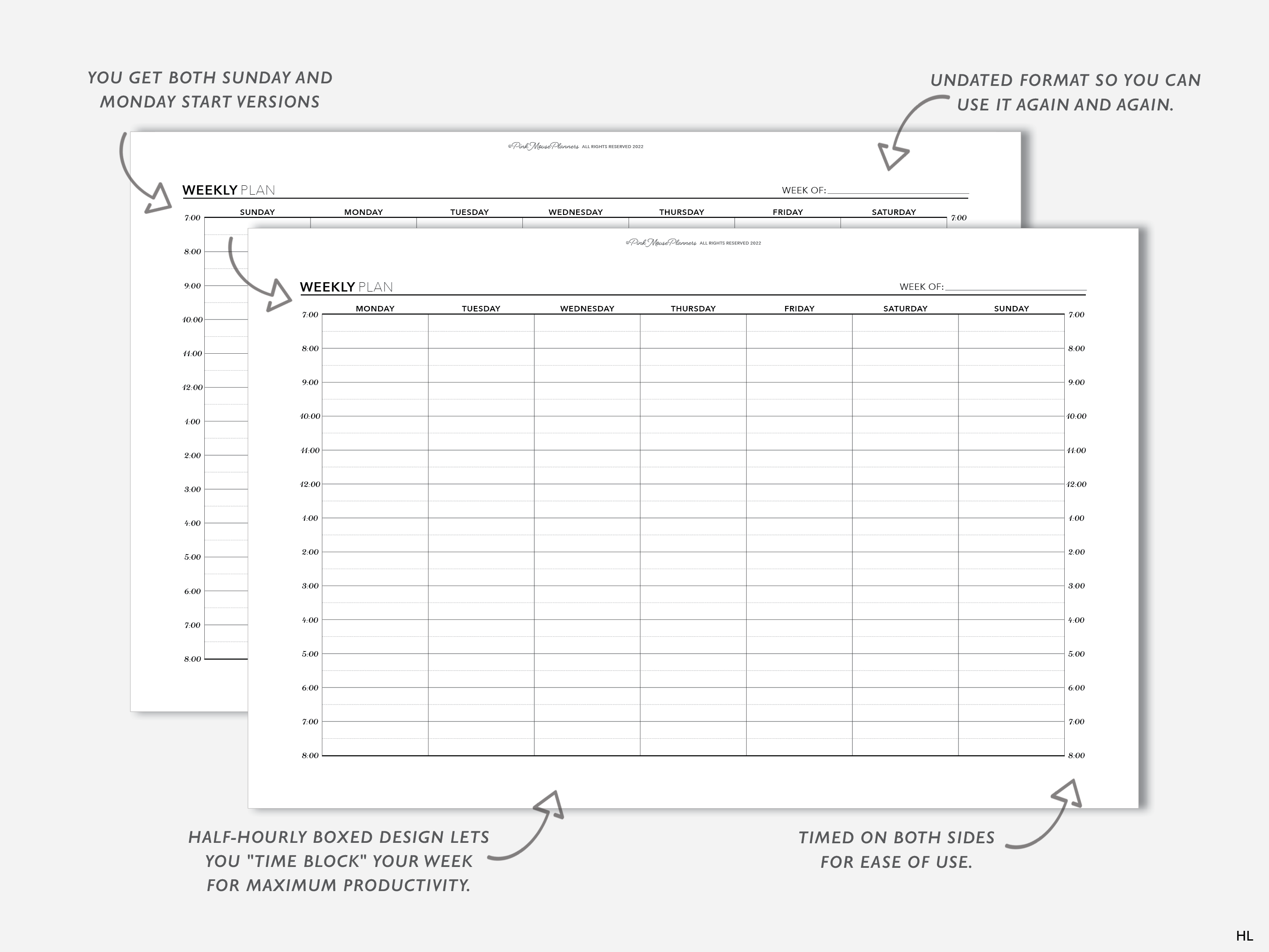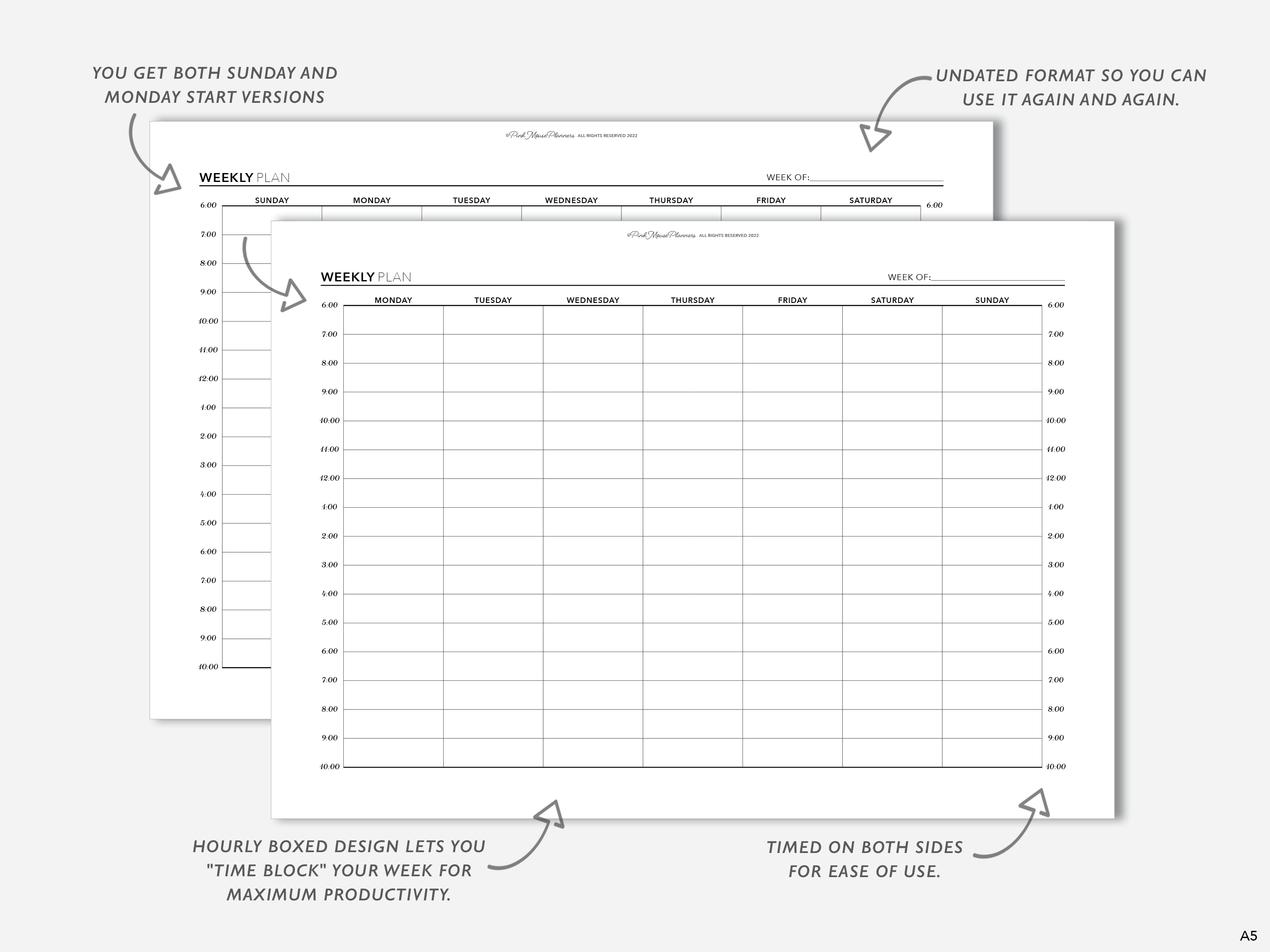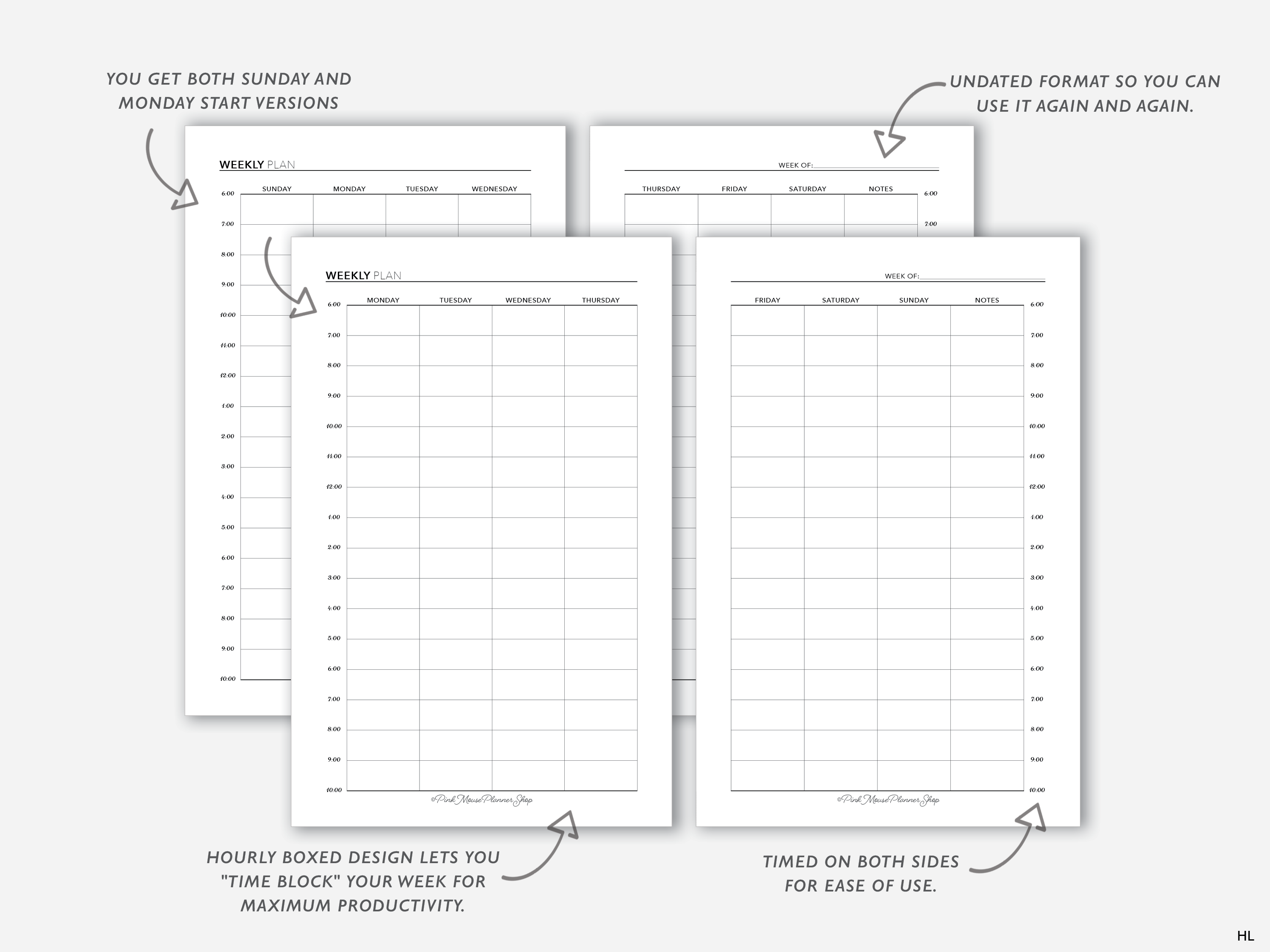 2026 Two Page Daily Timed Style Insert with Weekly Overview