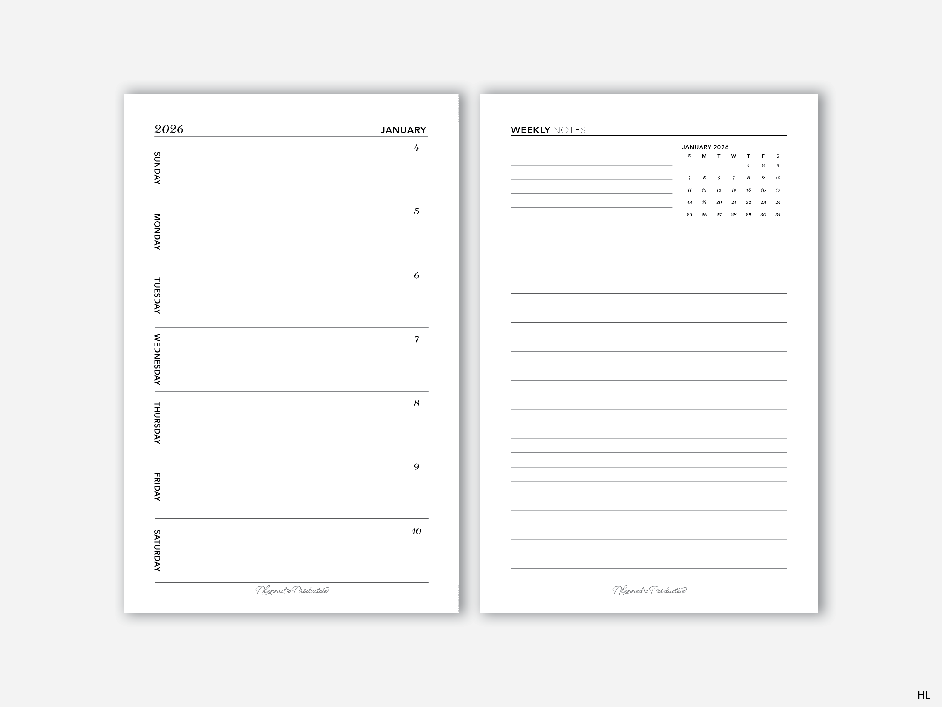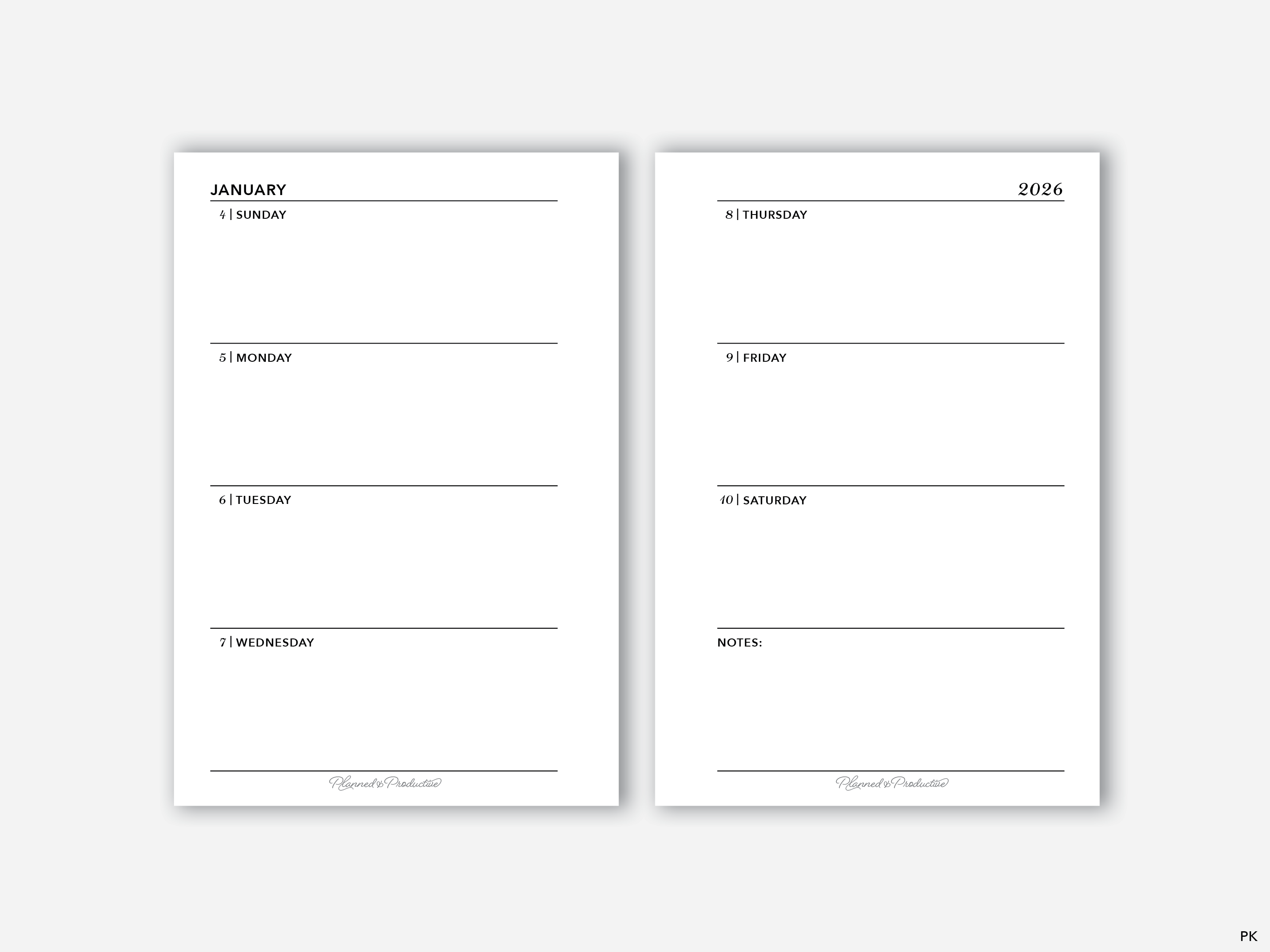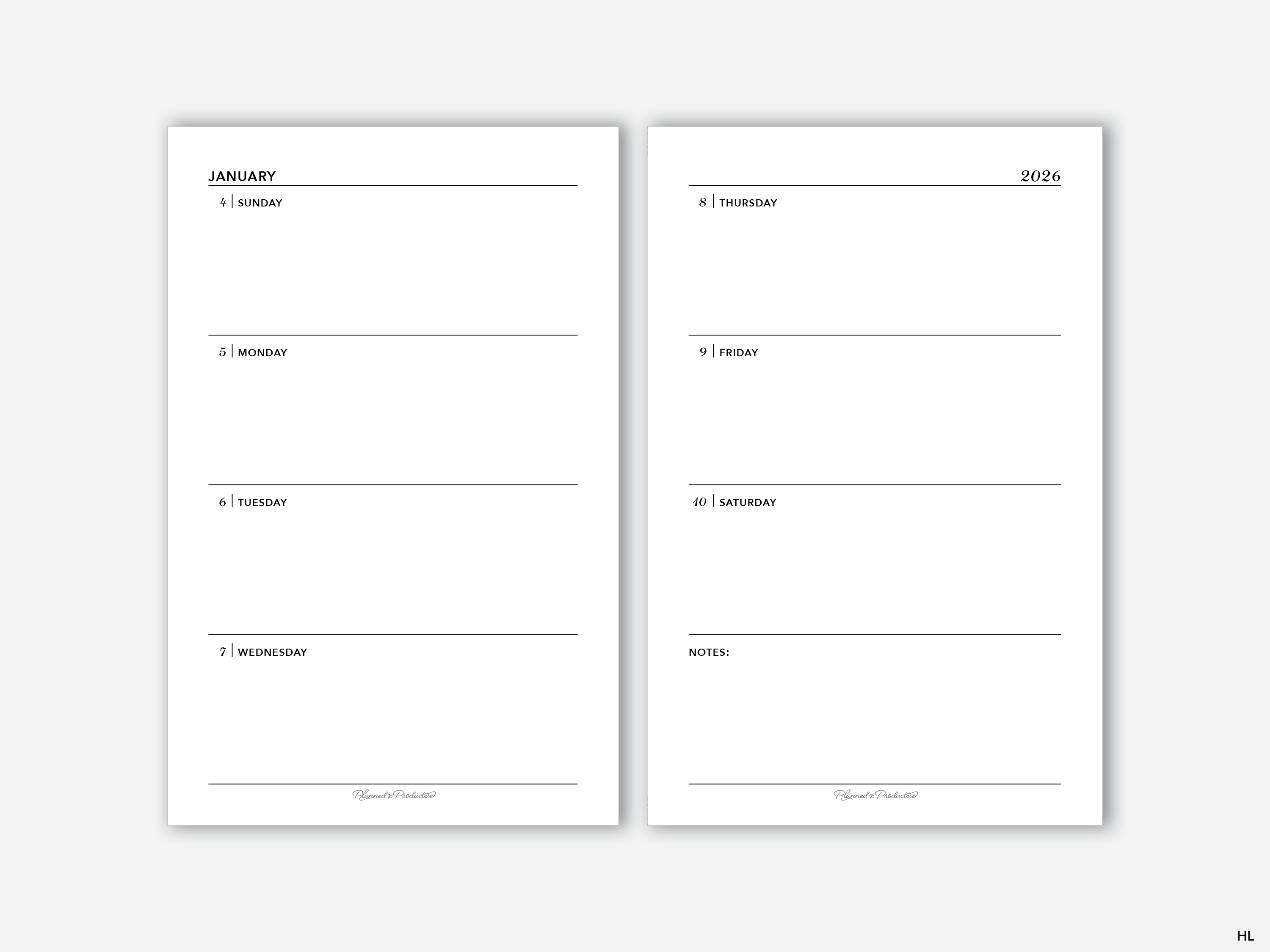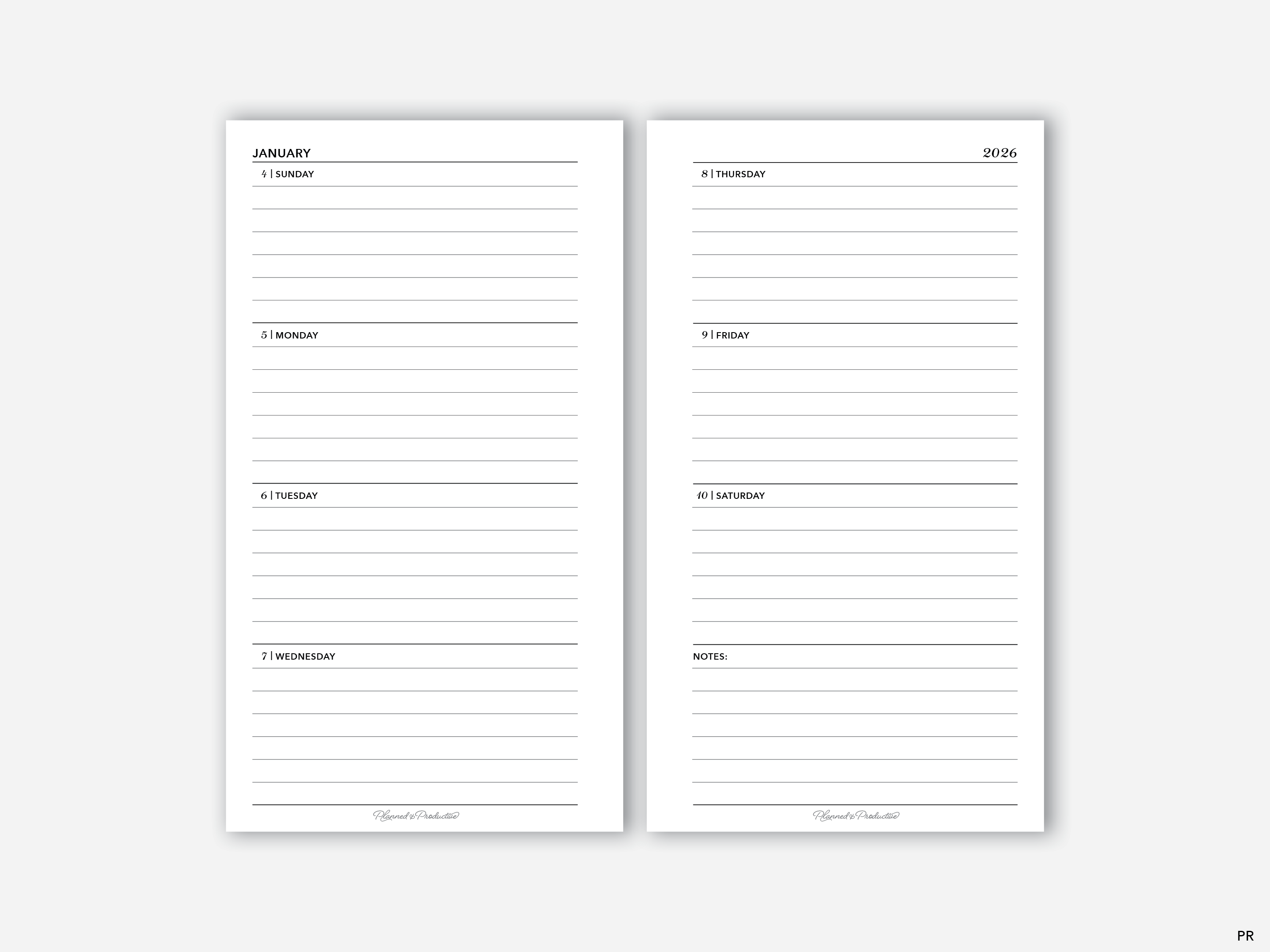 2026 Two Page Daily Vertical Style Insert with Weekly Overview