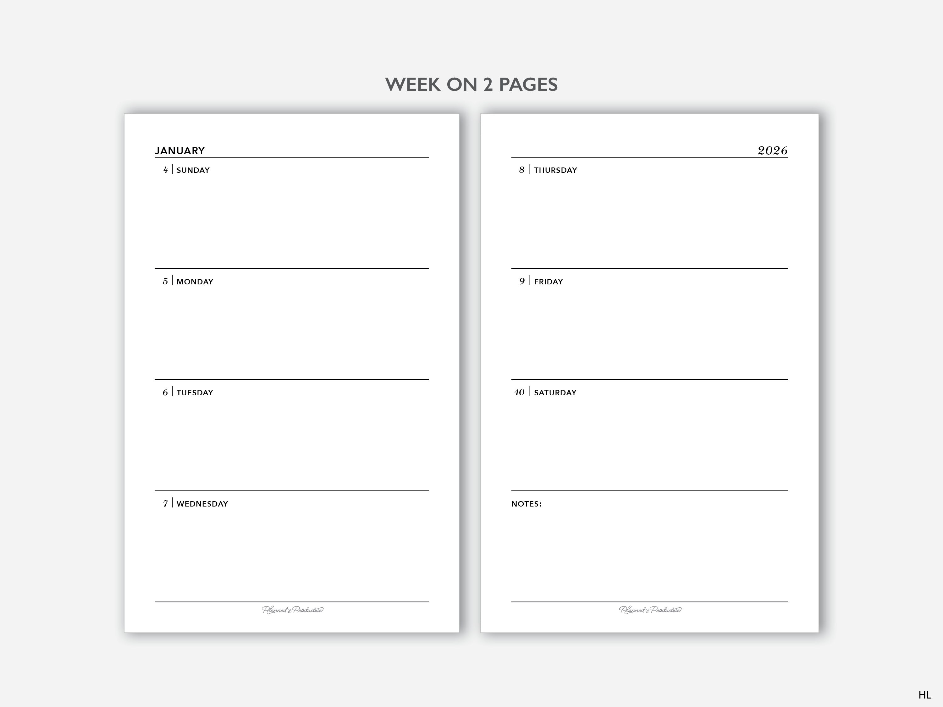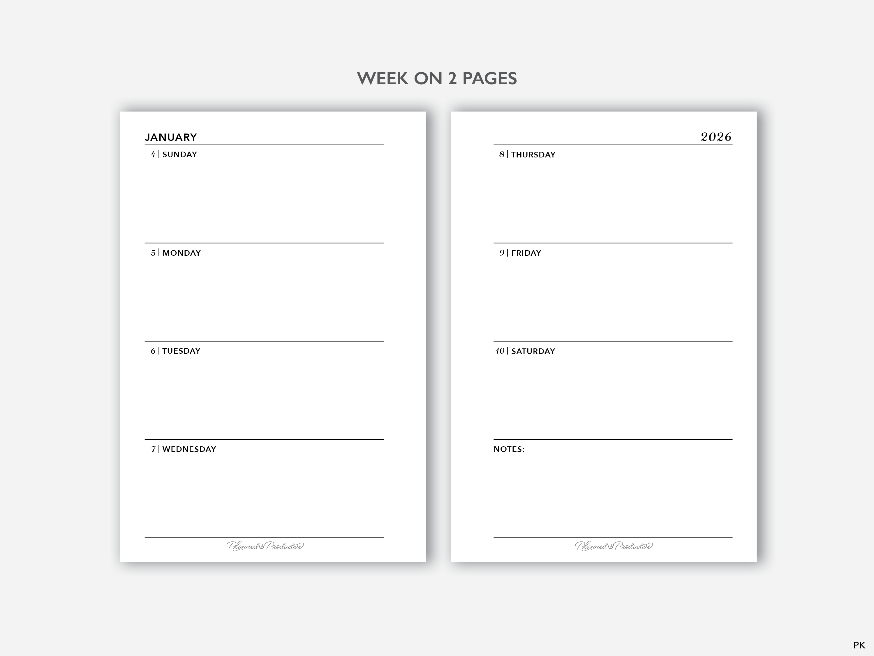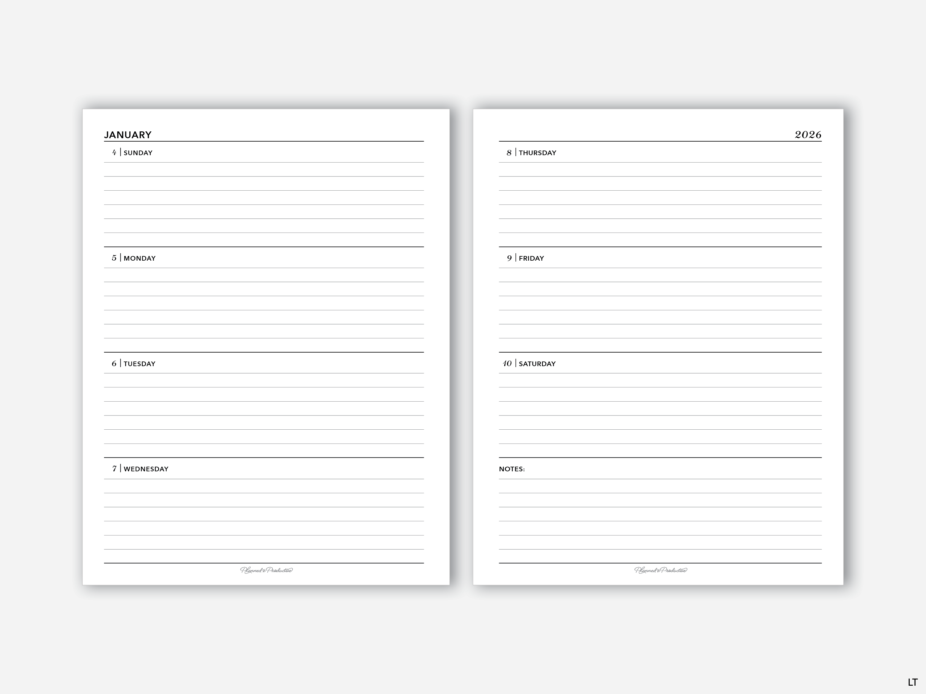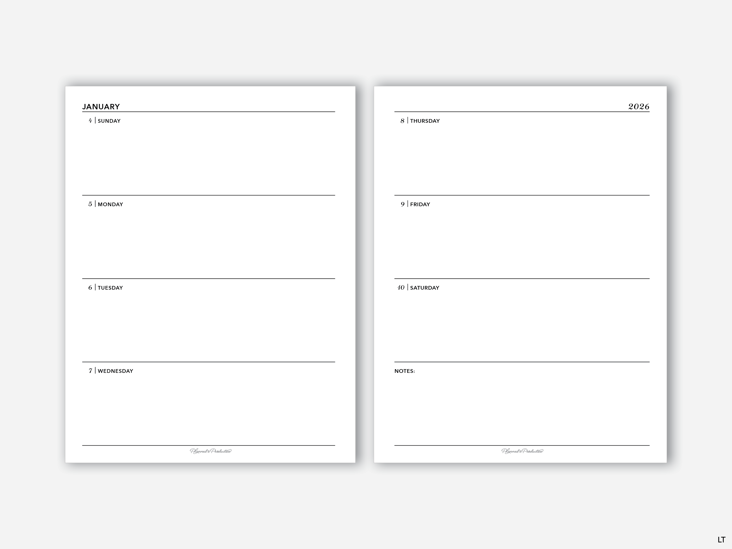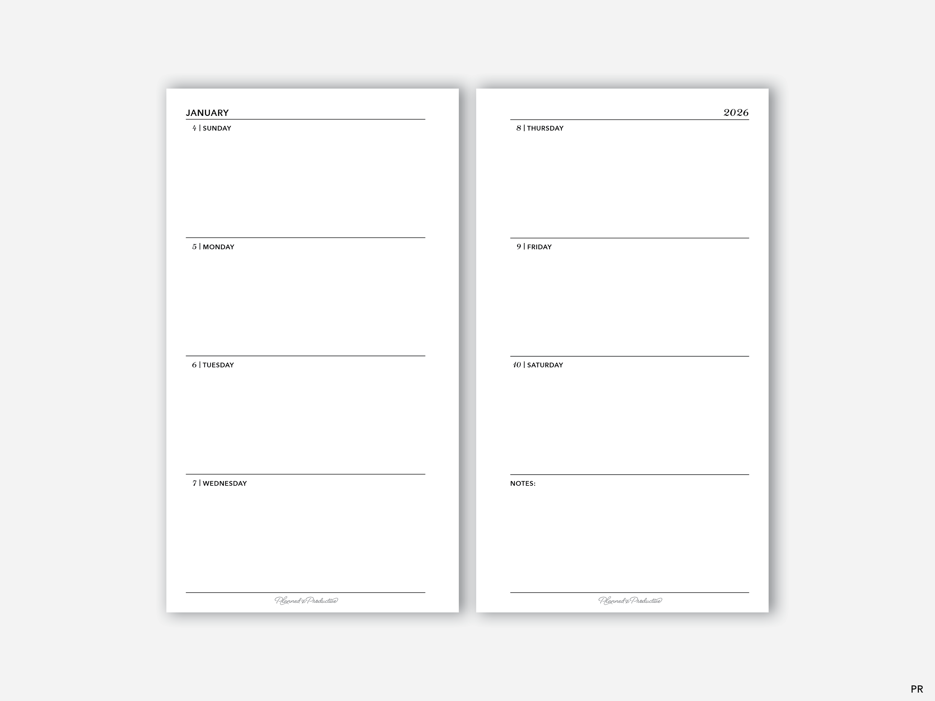 2026 Two Page Daily Vertical Style Insert with Weekly Overview