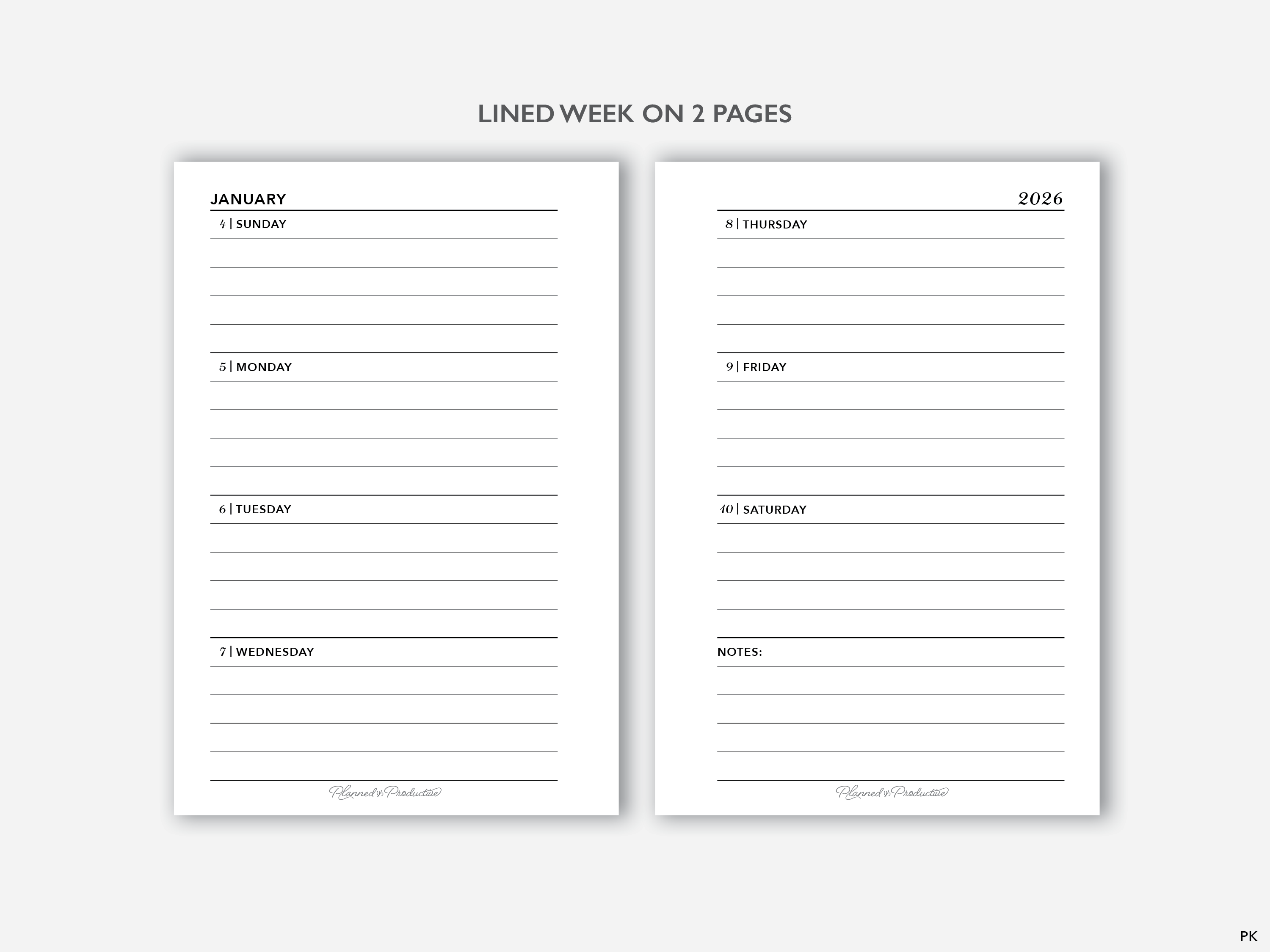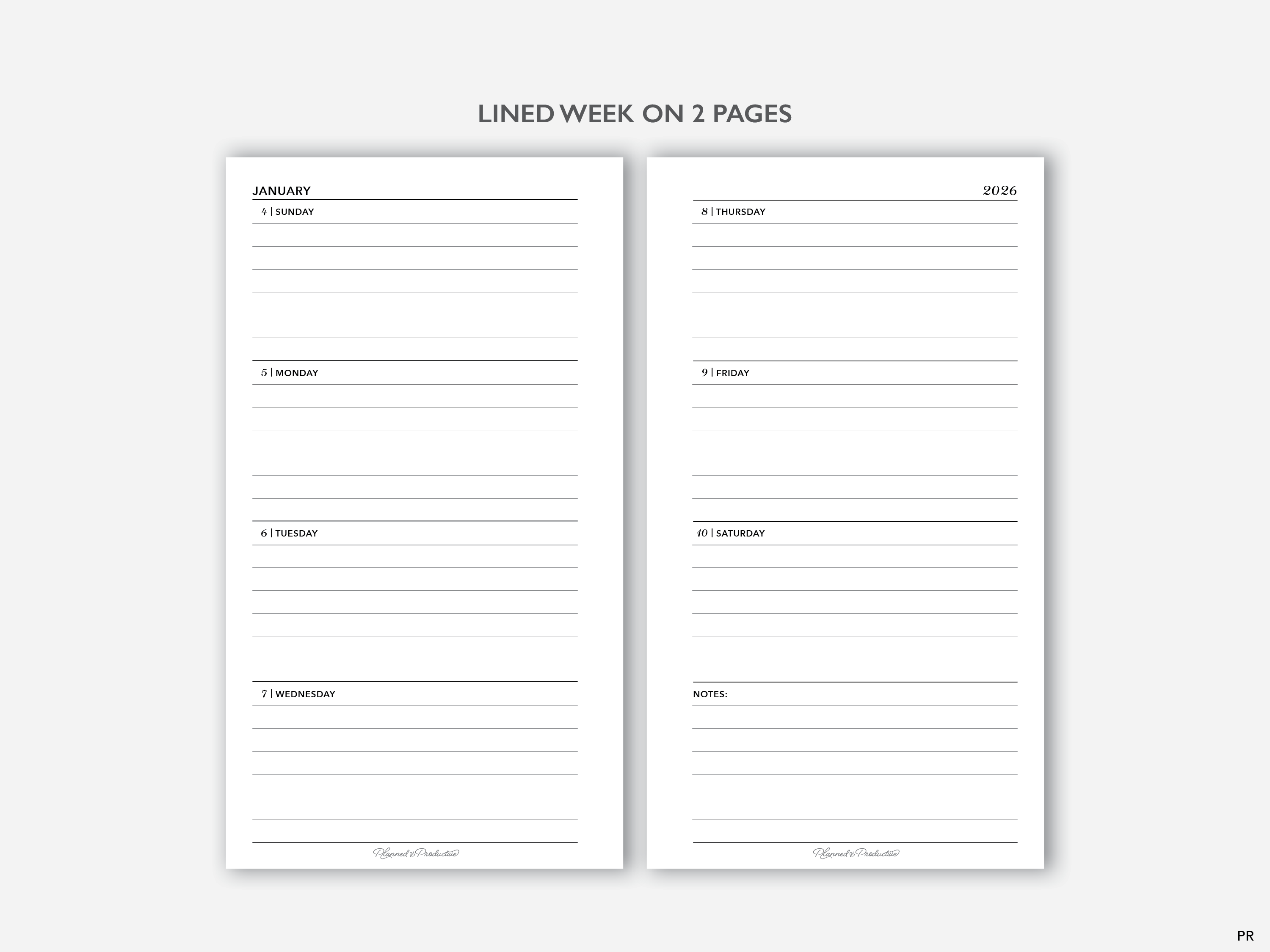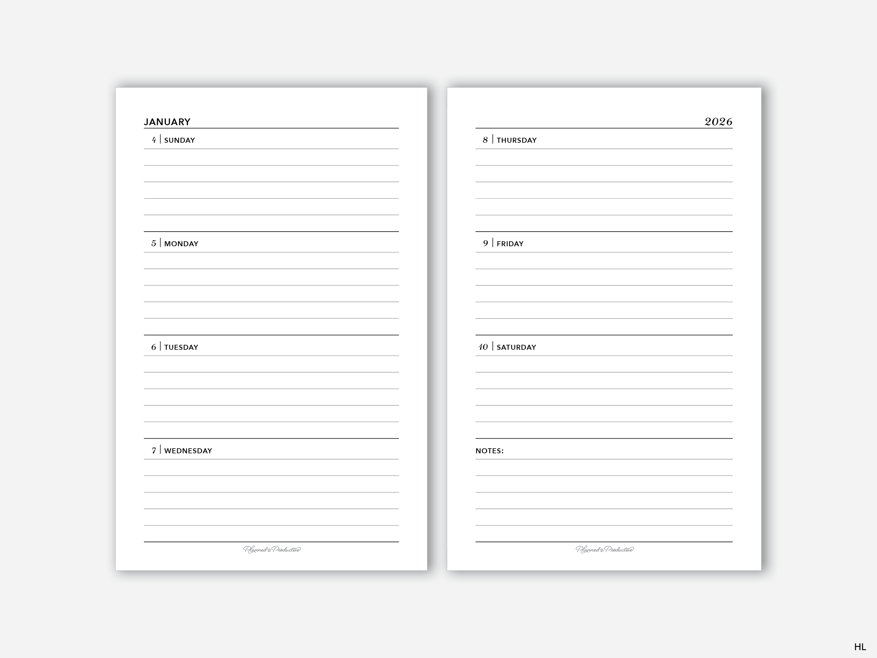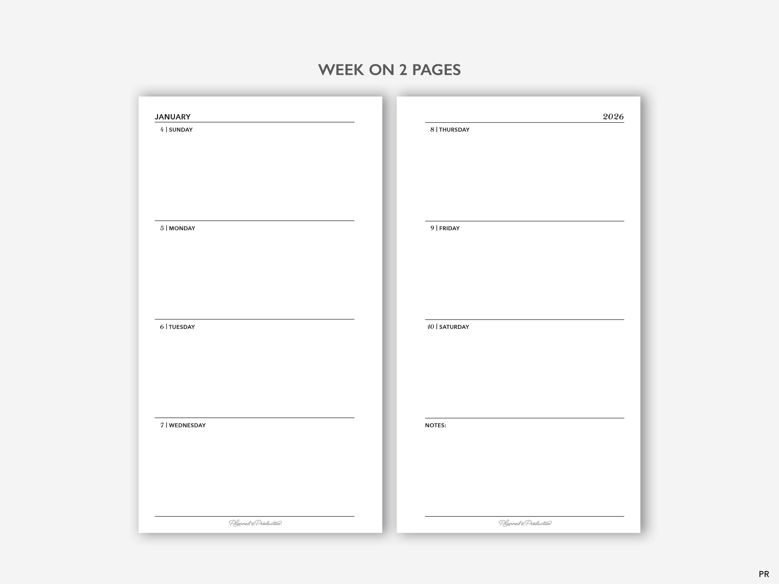 2026 Two Page Daily Vertical Style Insert with Weekly Overview