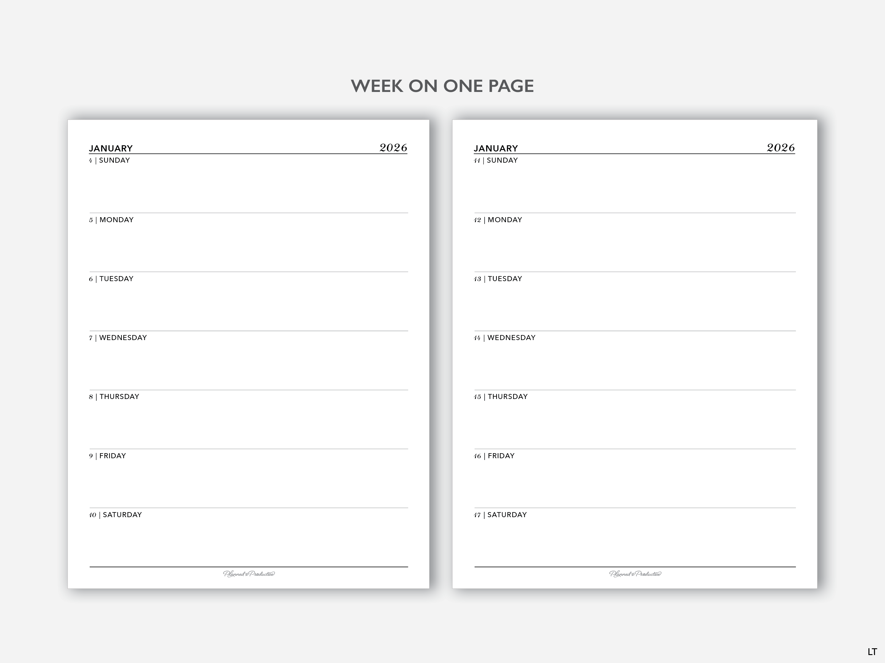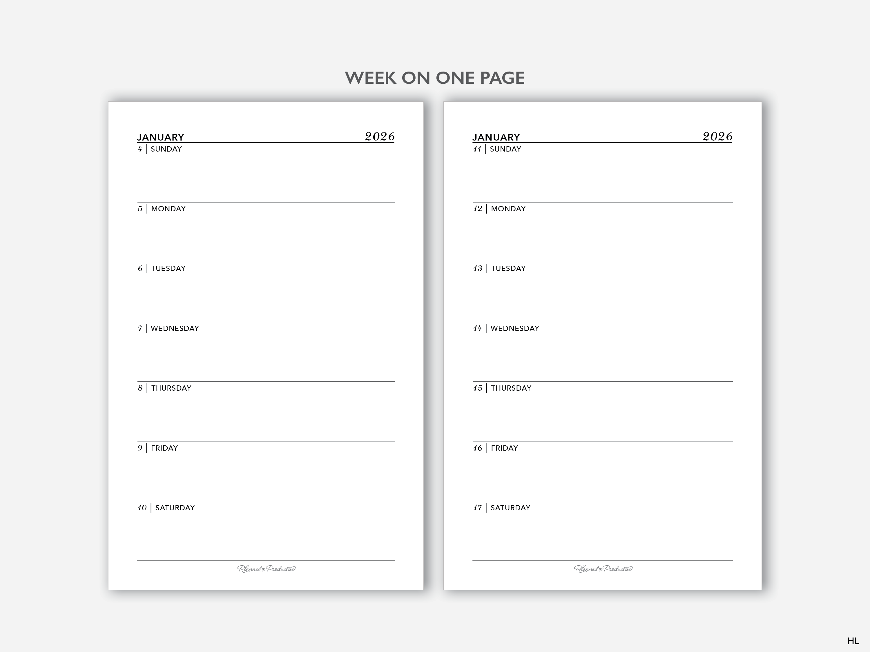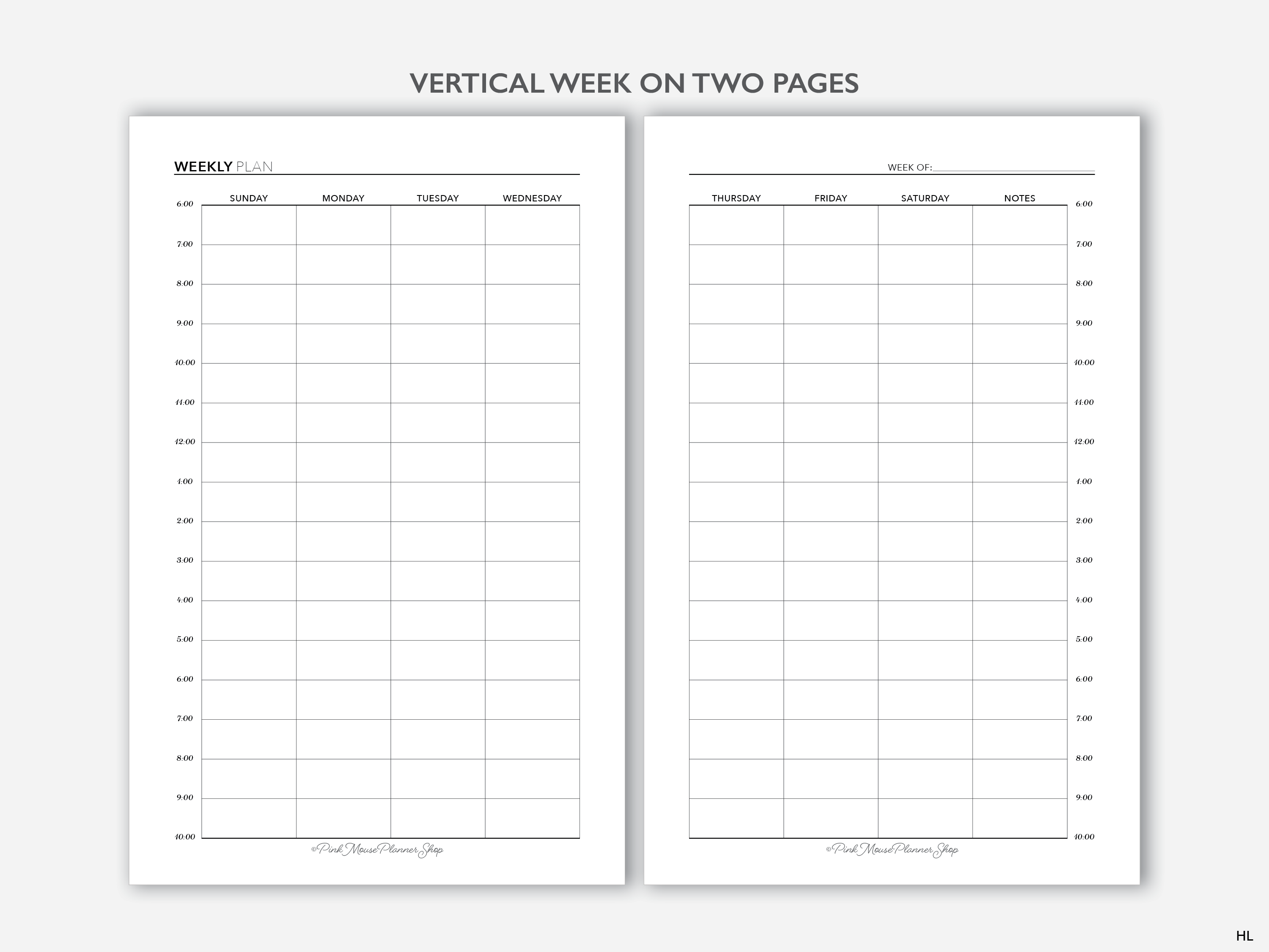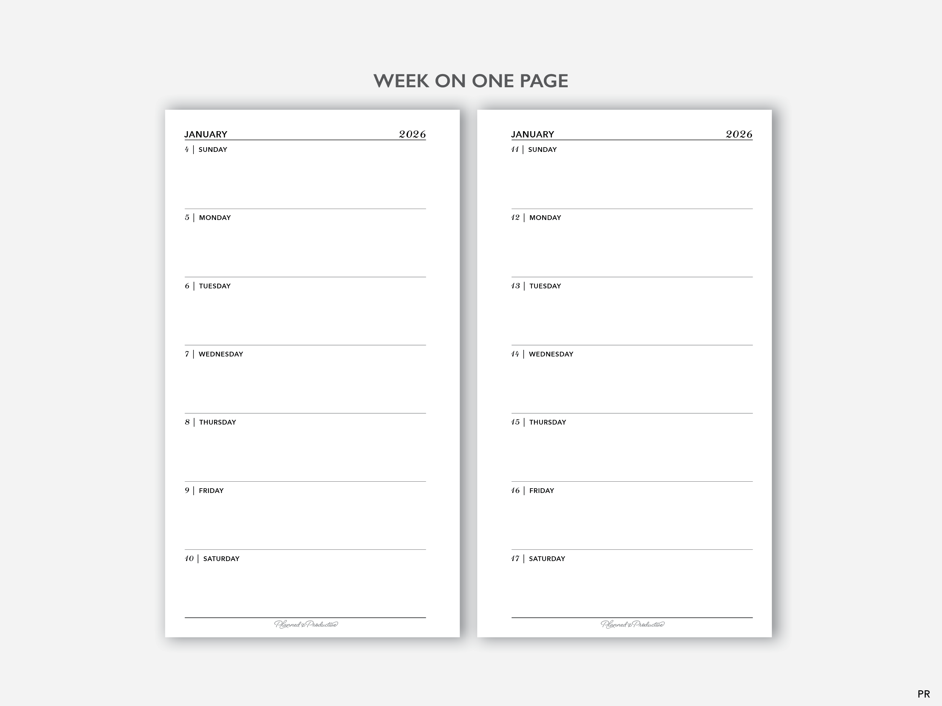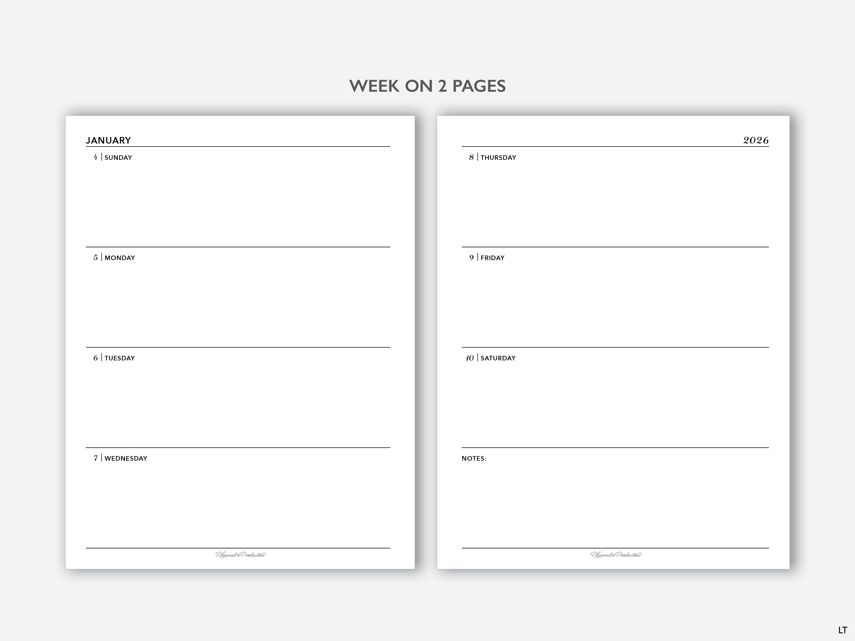 2026 Two Page Daily Vertical Style Insert with Weekly Overview
