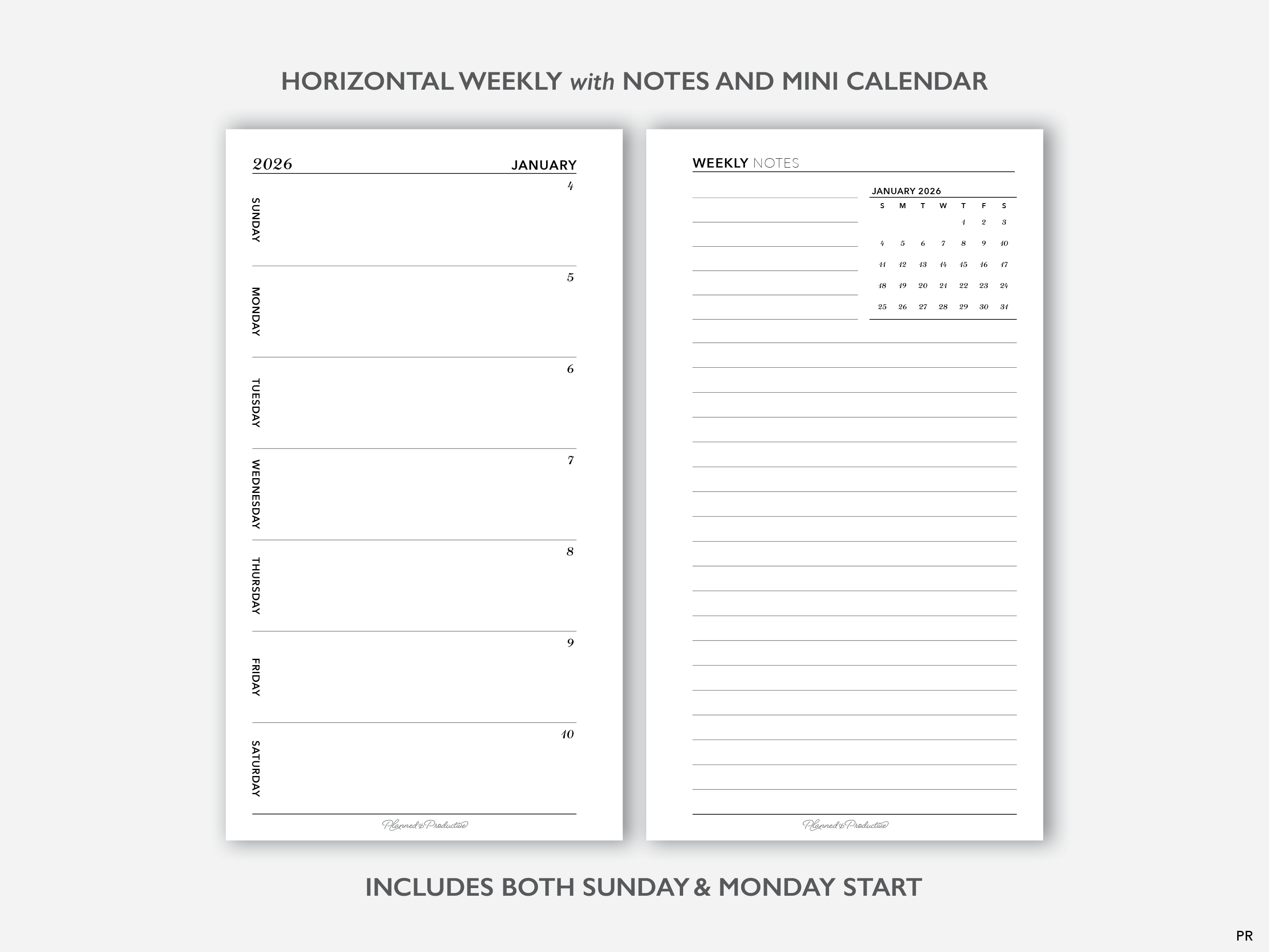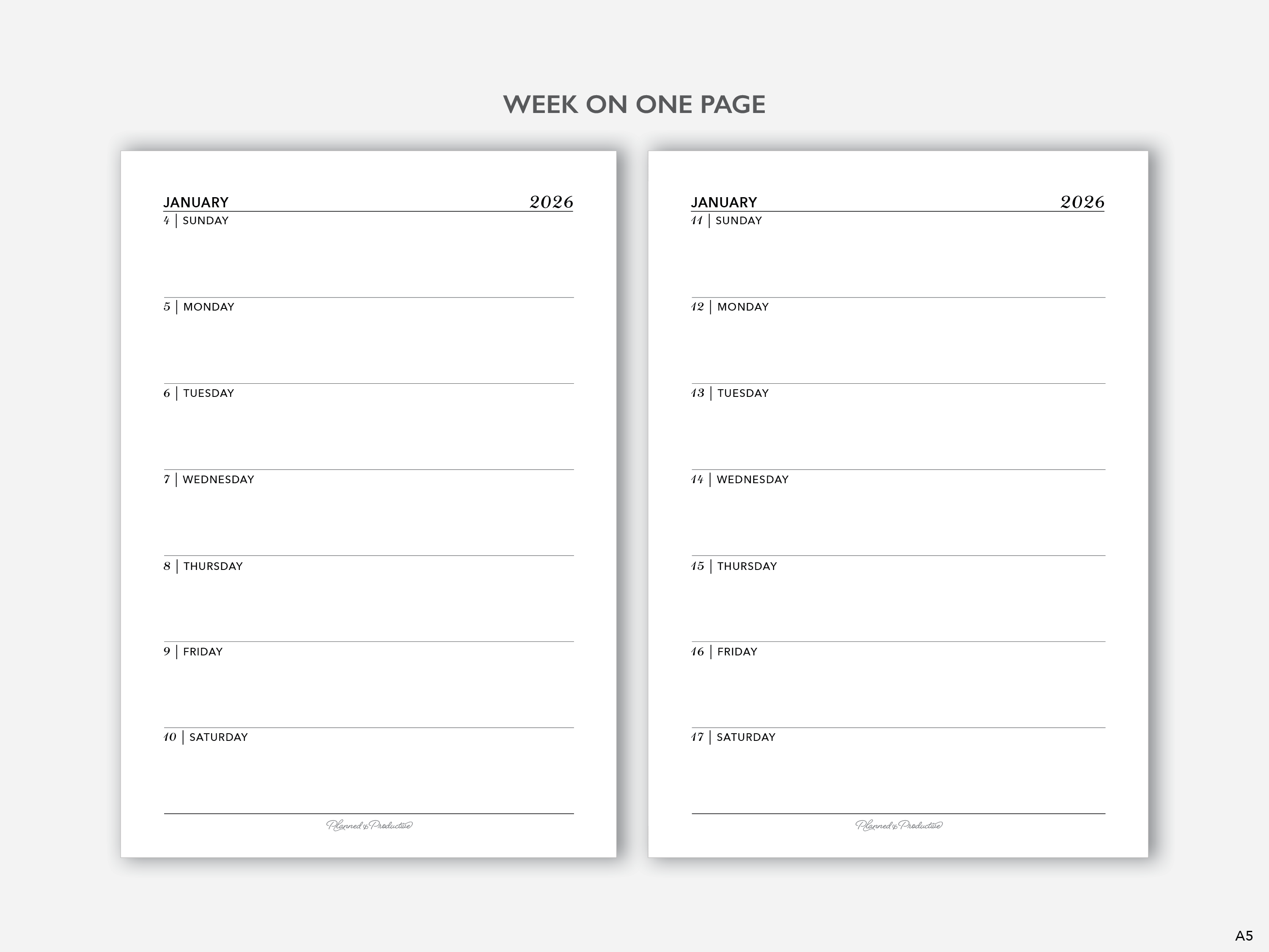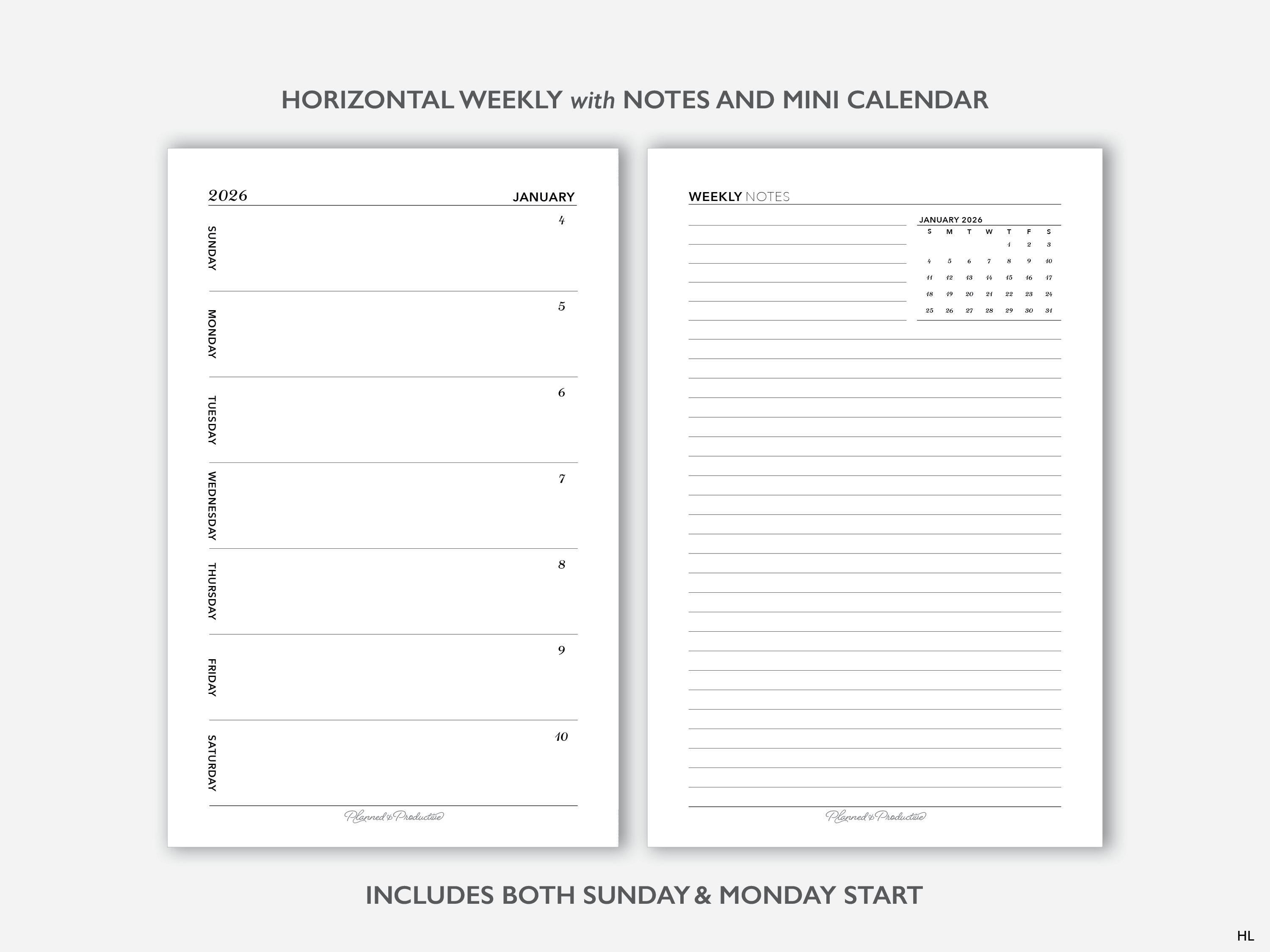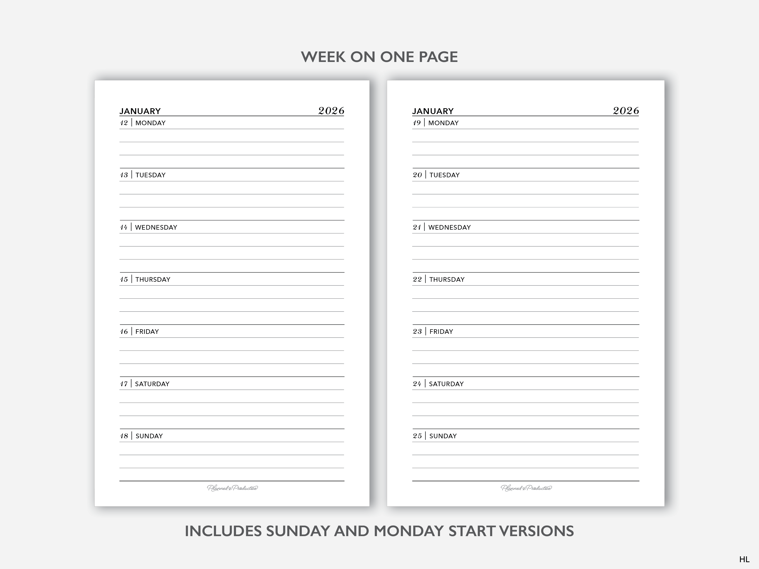 2026 Two Page Daily Vertical Style Insert with Weekly Overview