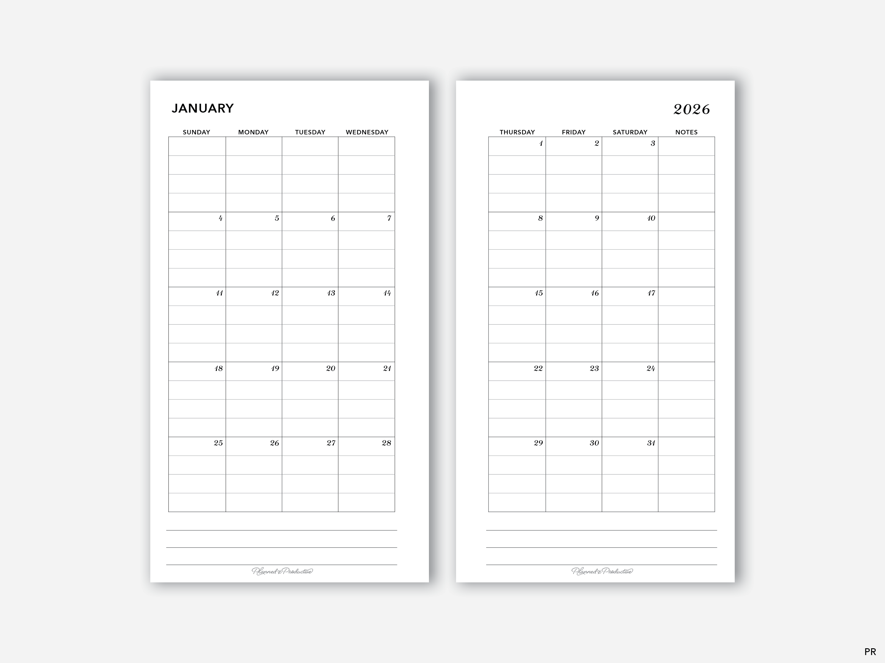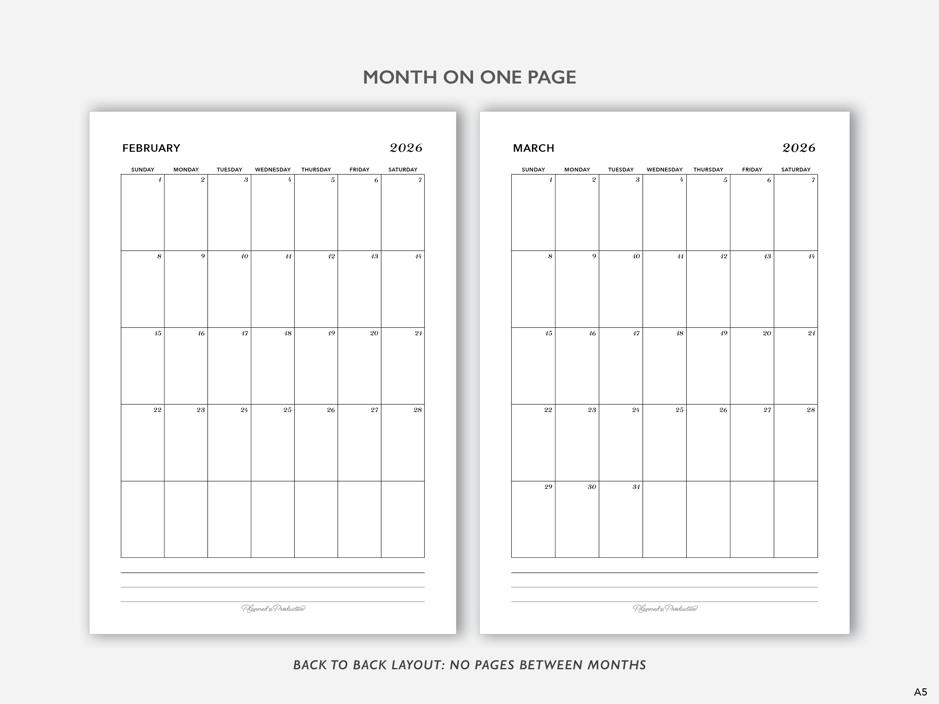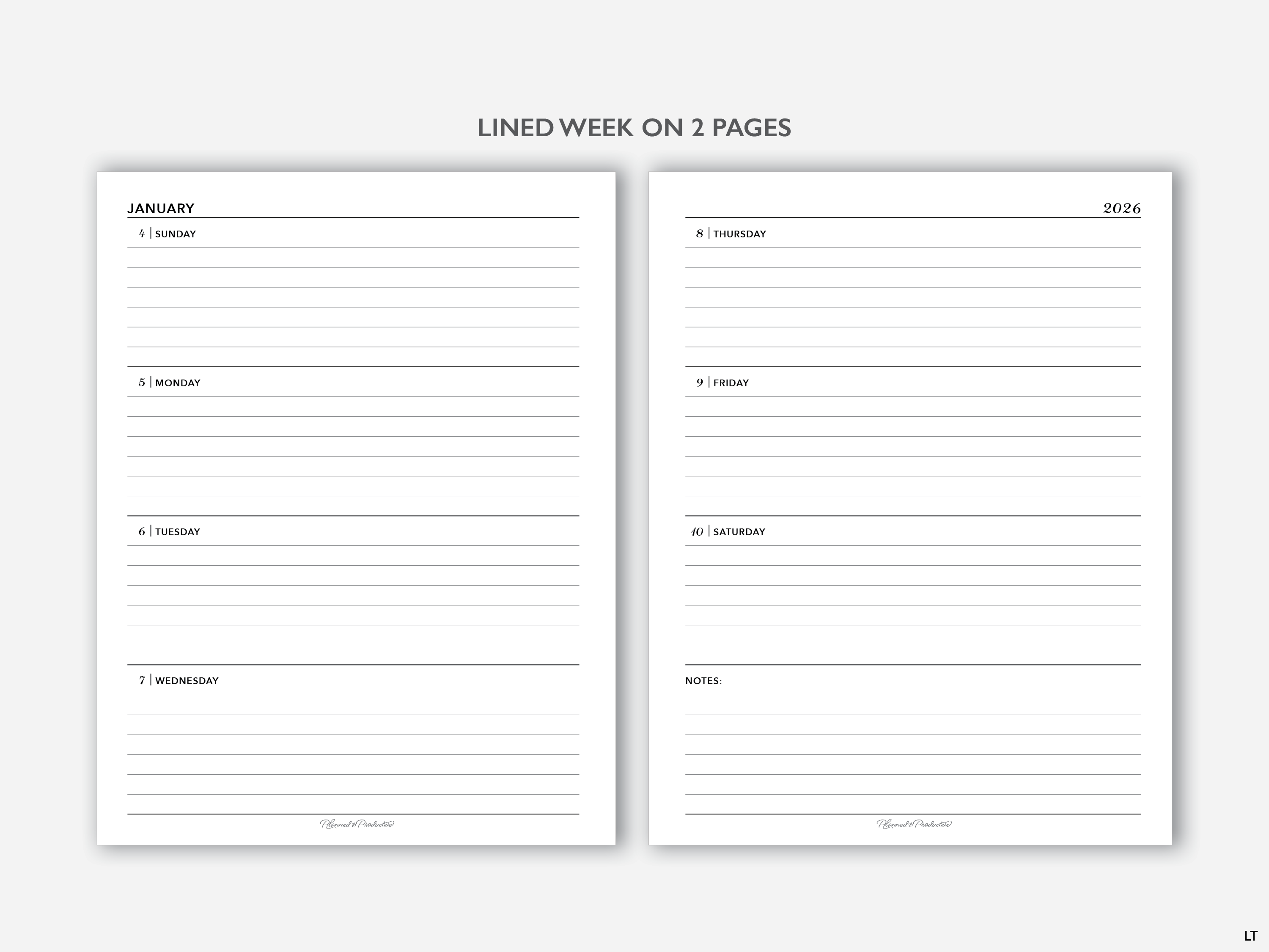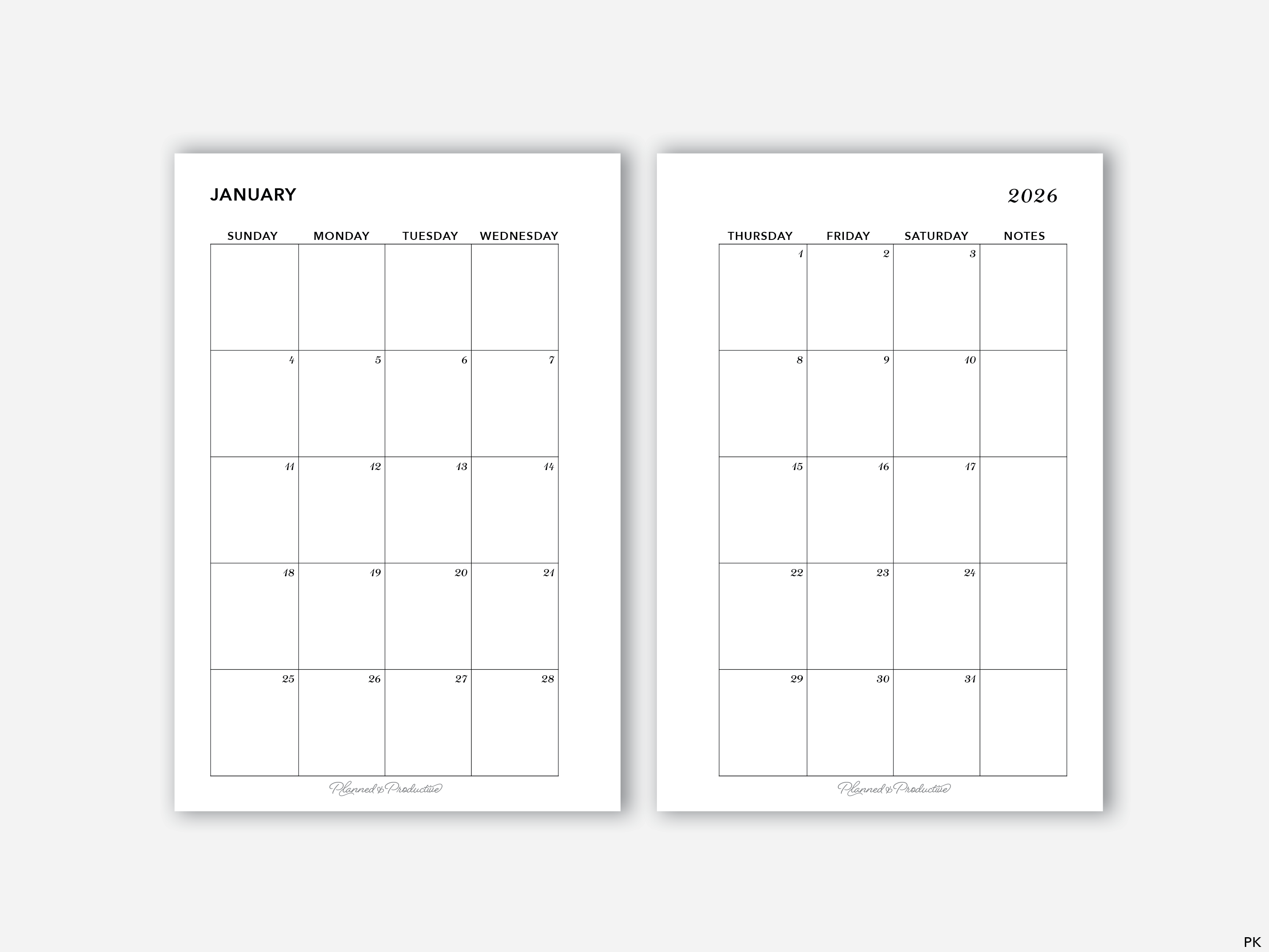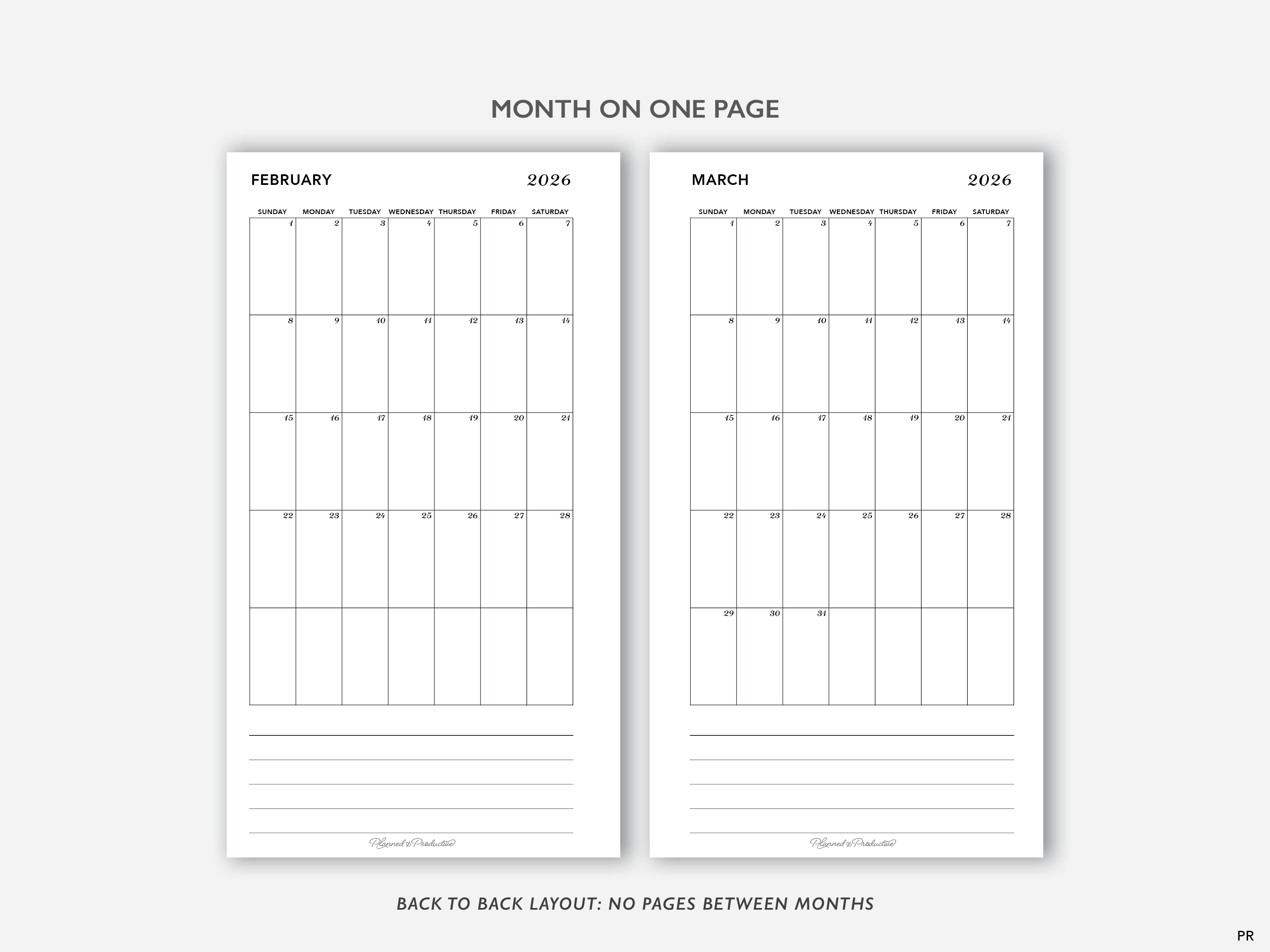 2026 Two Page Lined Monthly Calendar - Separated Layout