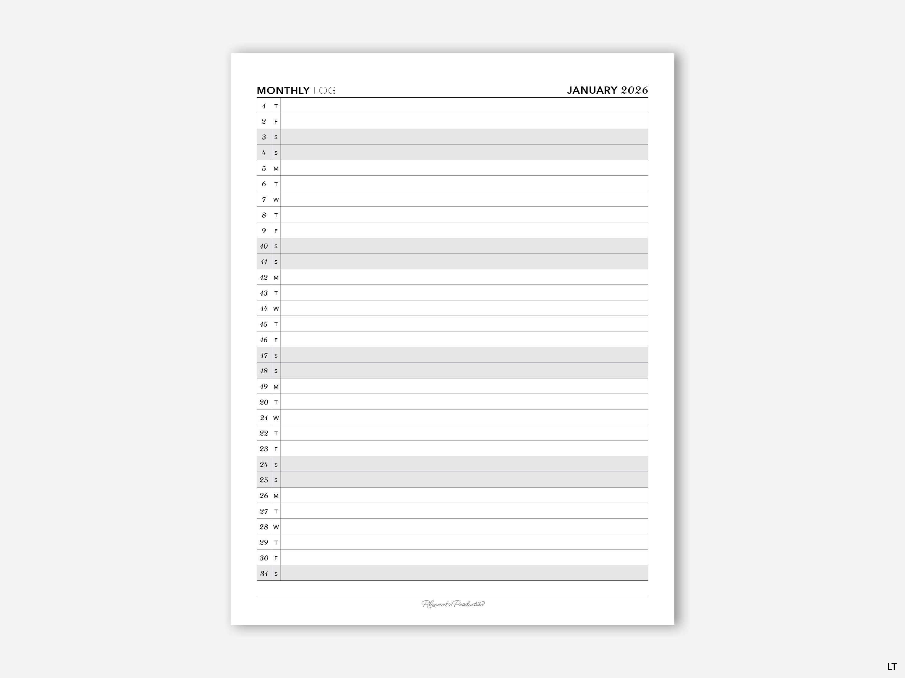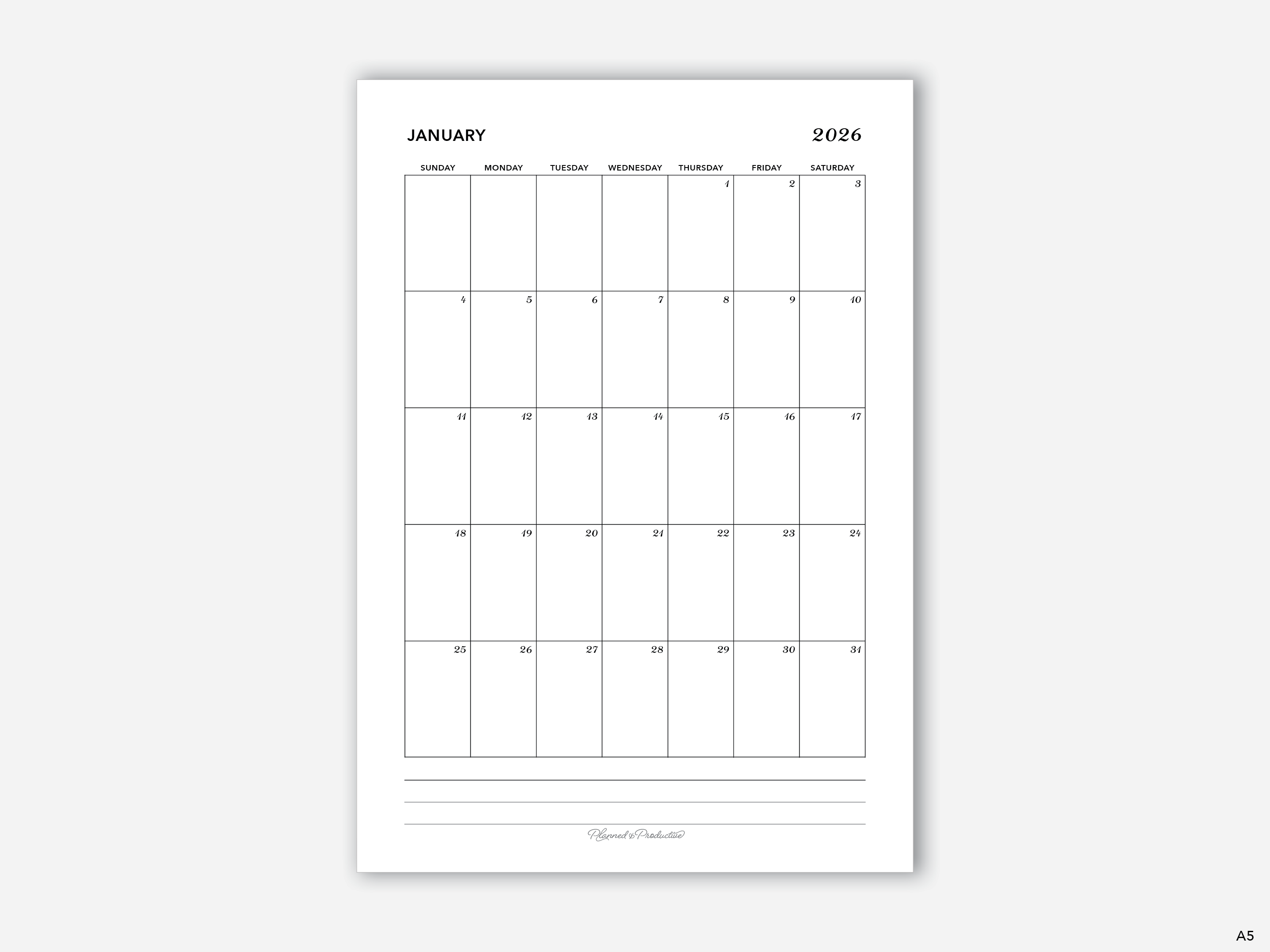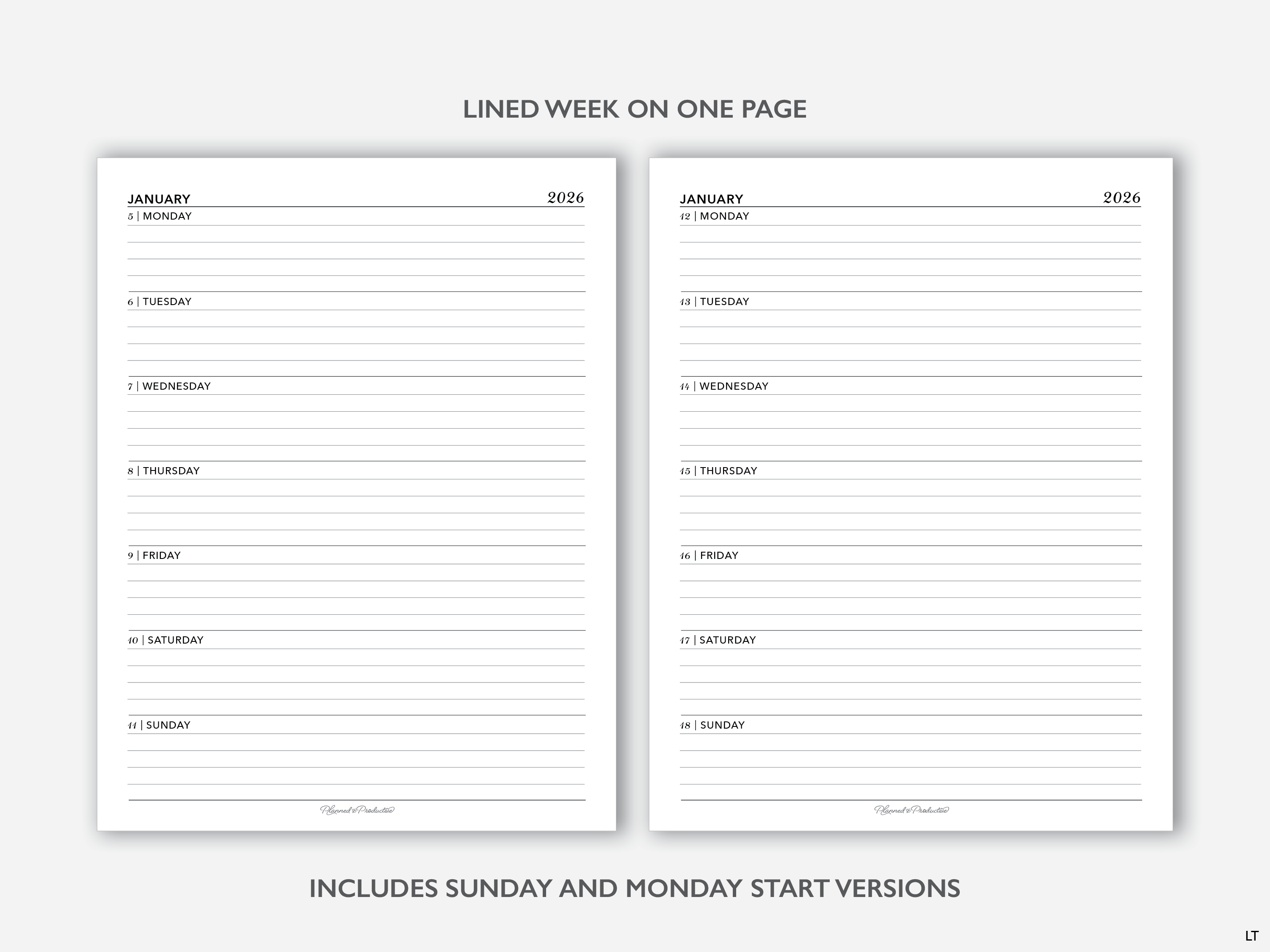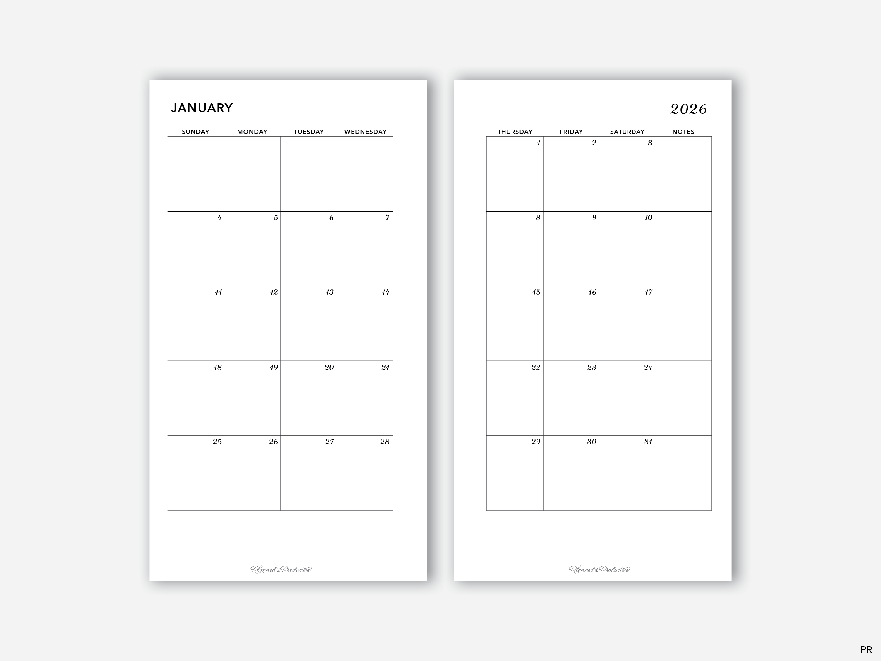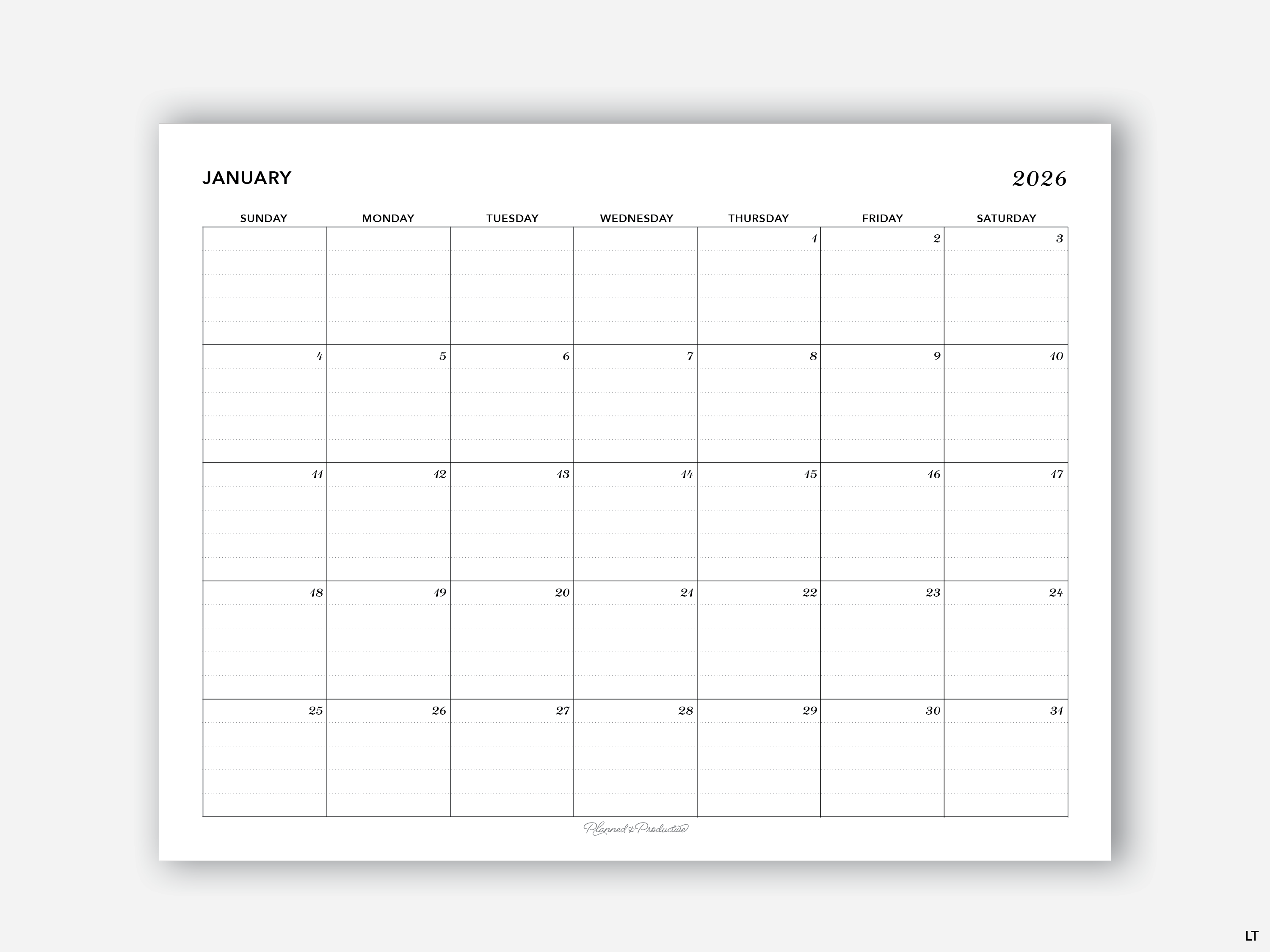 2026 Two Page Lined Monthly Calendar - Separated Layout