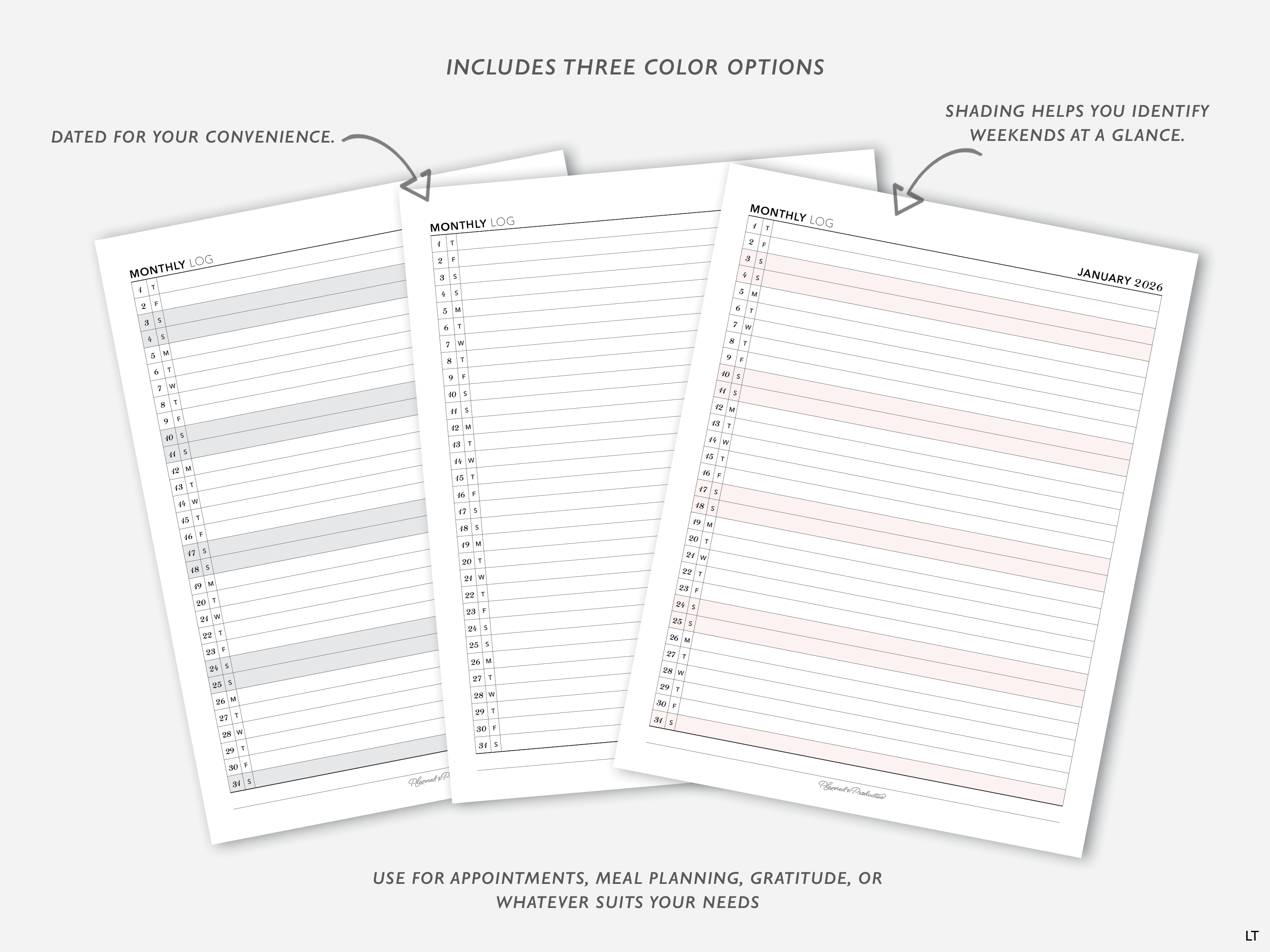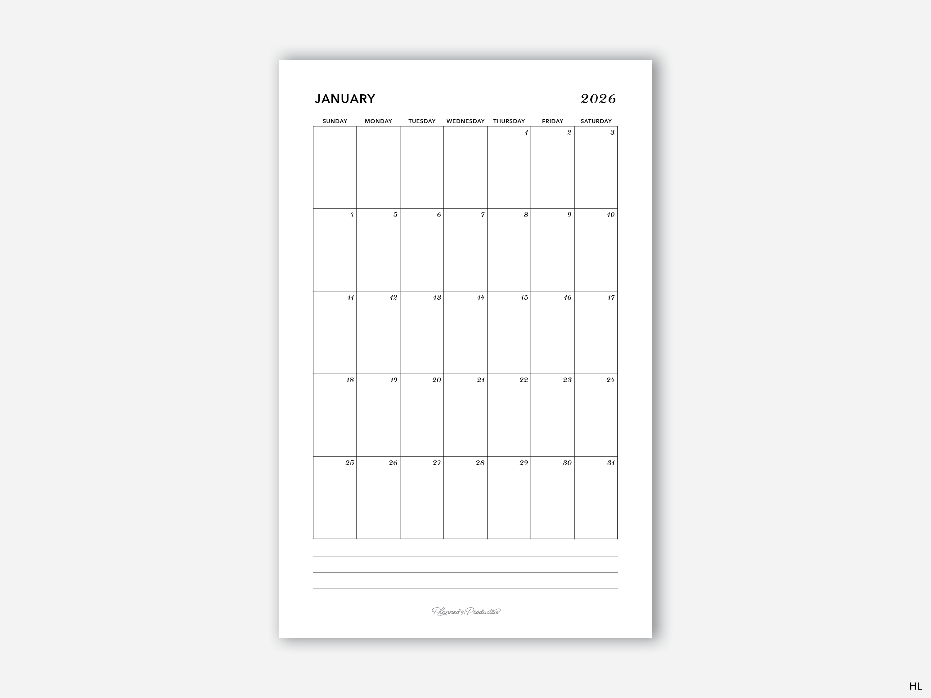 2026 Two Page Lined Monthly Calendar with Yearly Pages