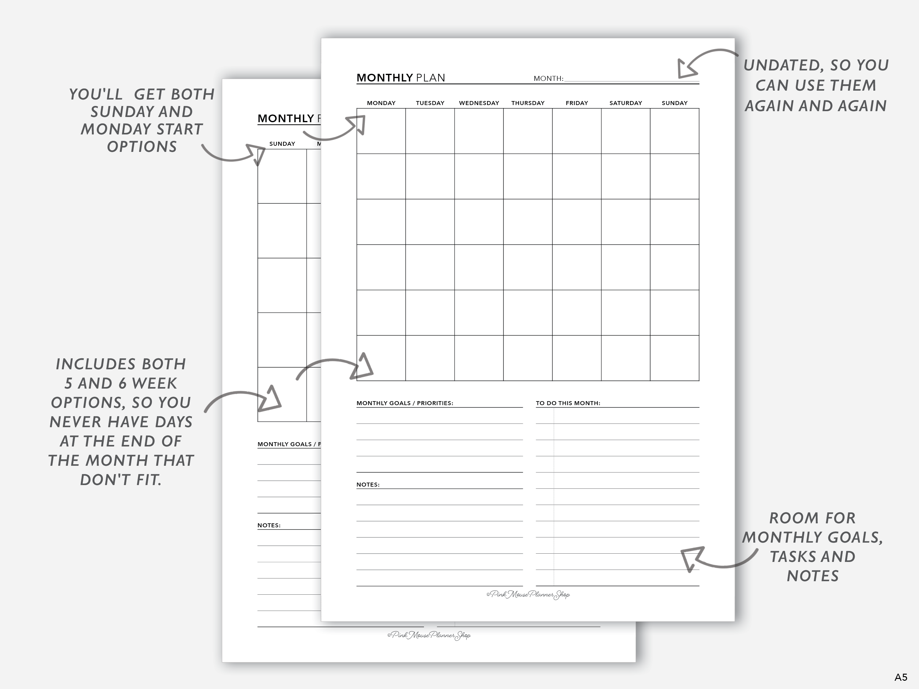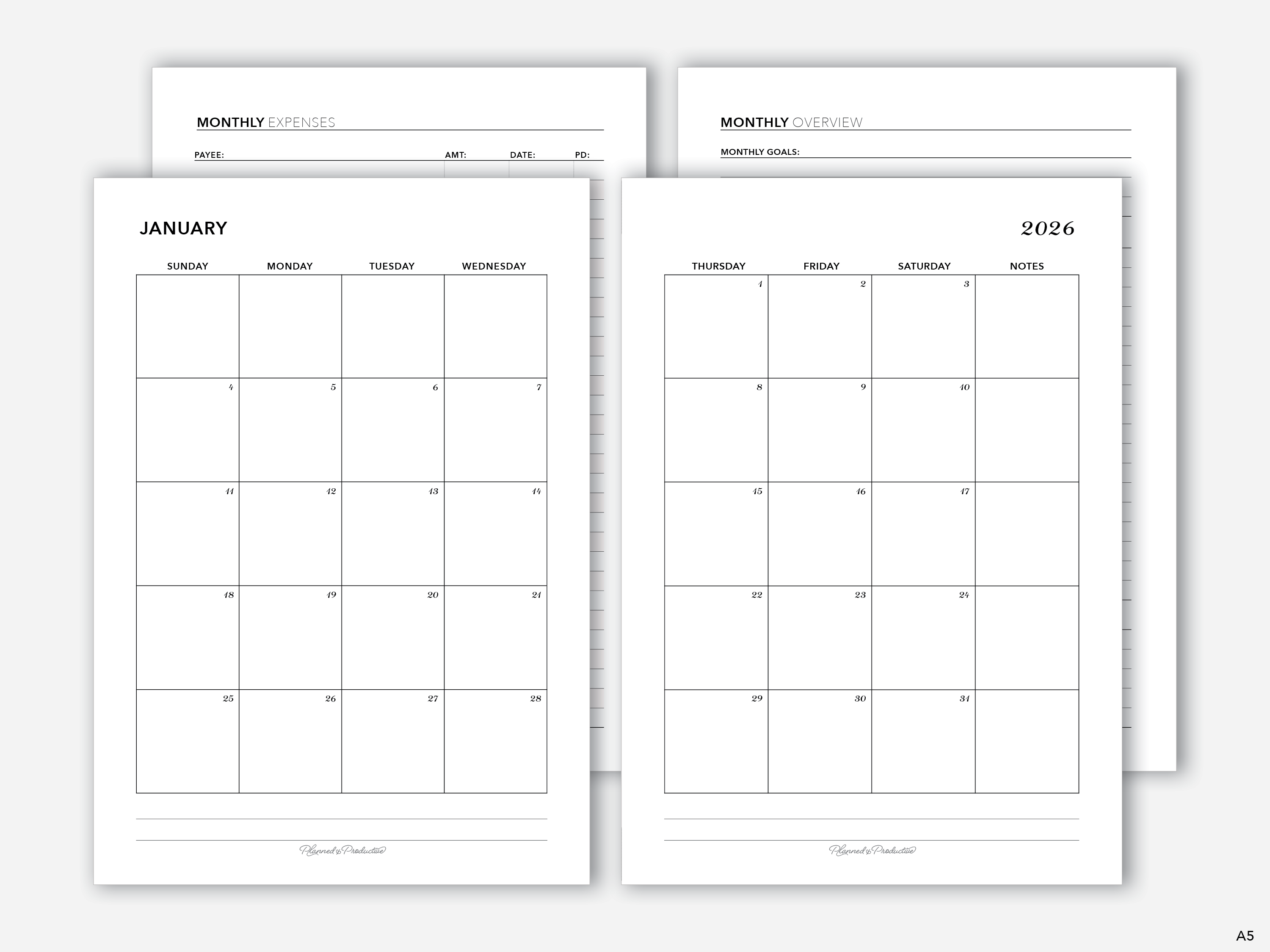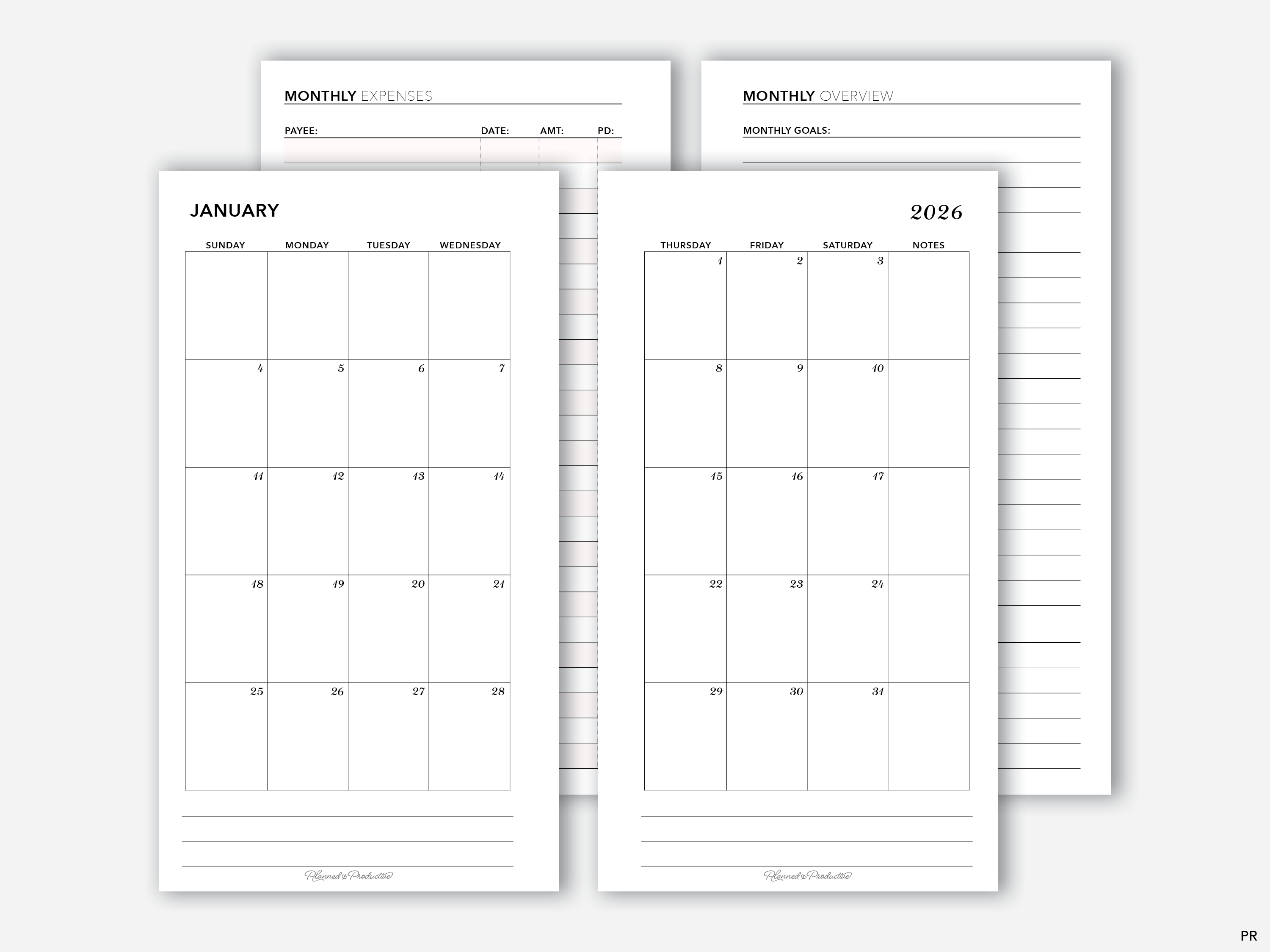 2026 Two Page Monthly Calendar with Monthly Overview and Finance Tracker