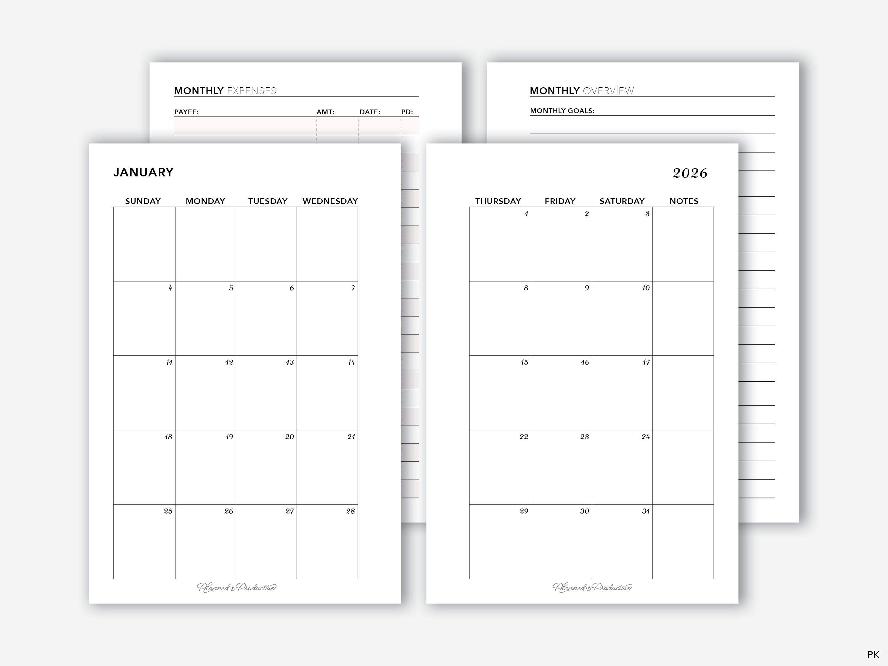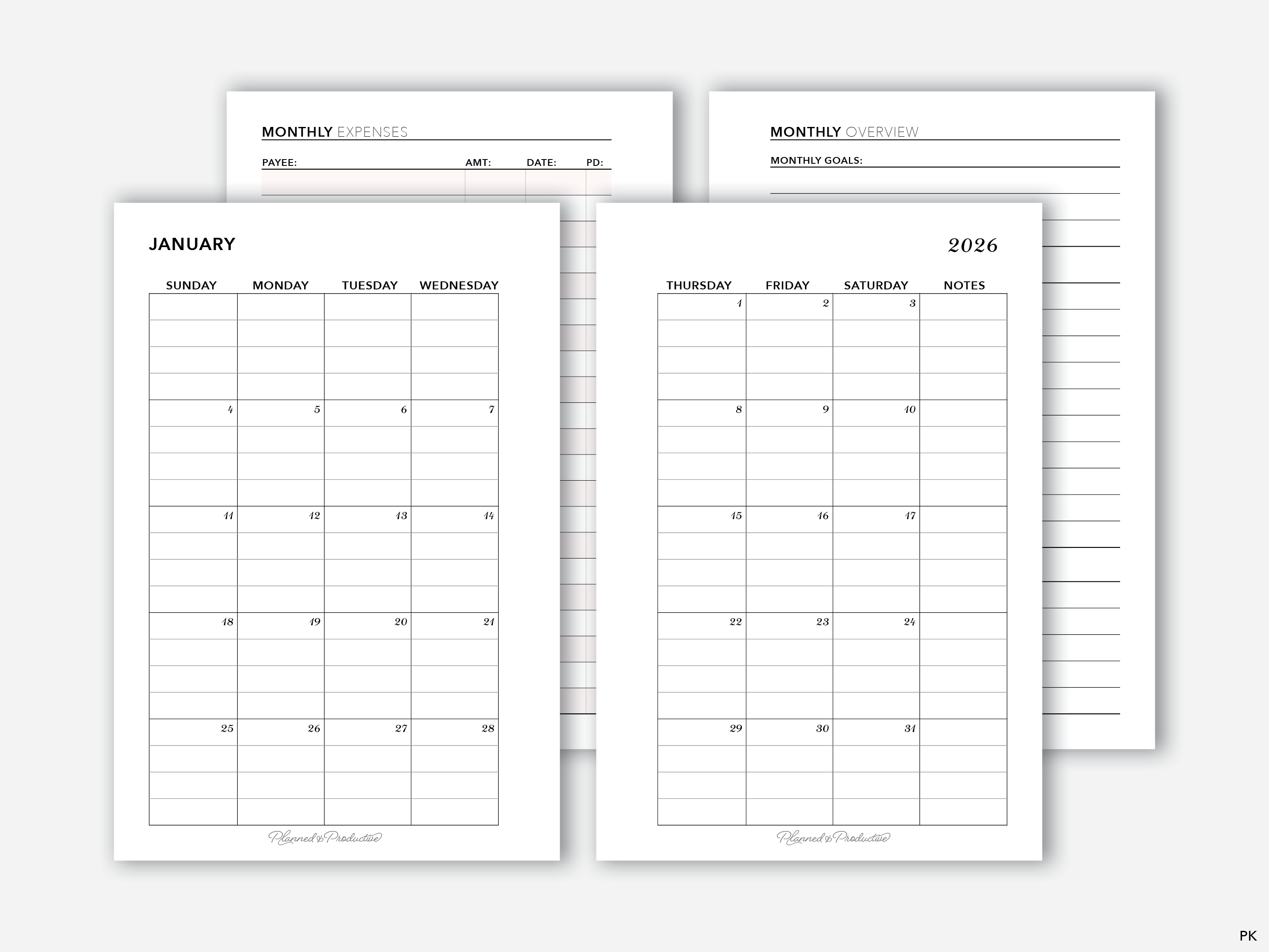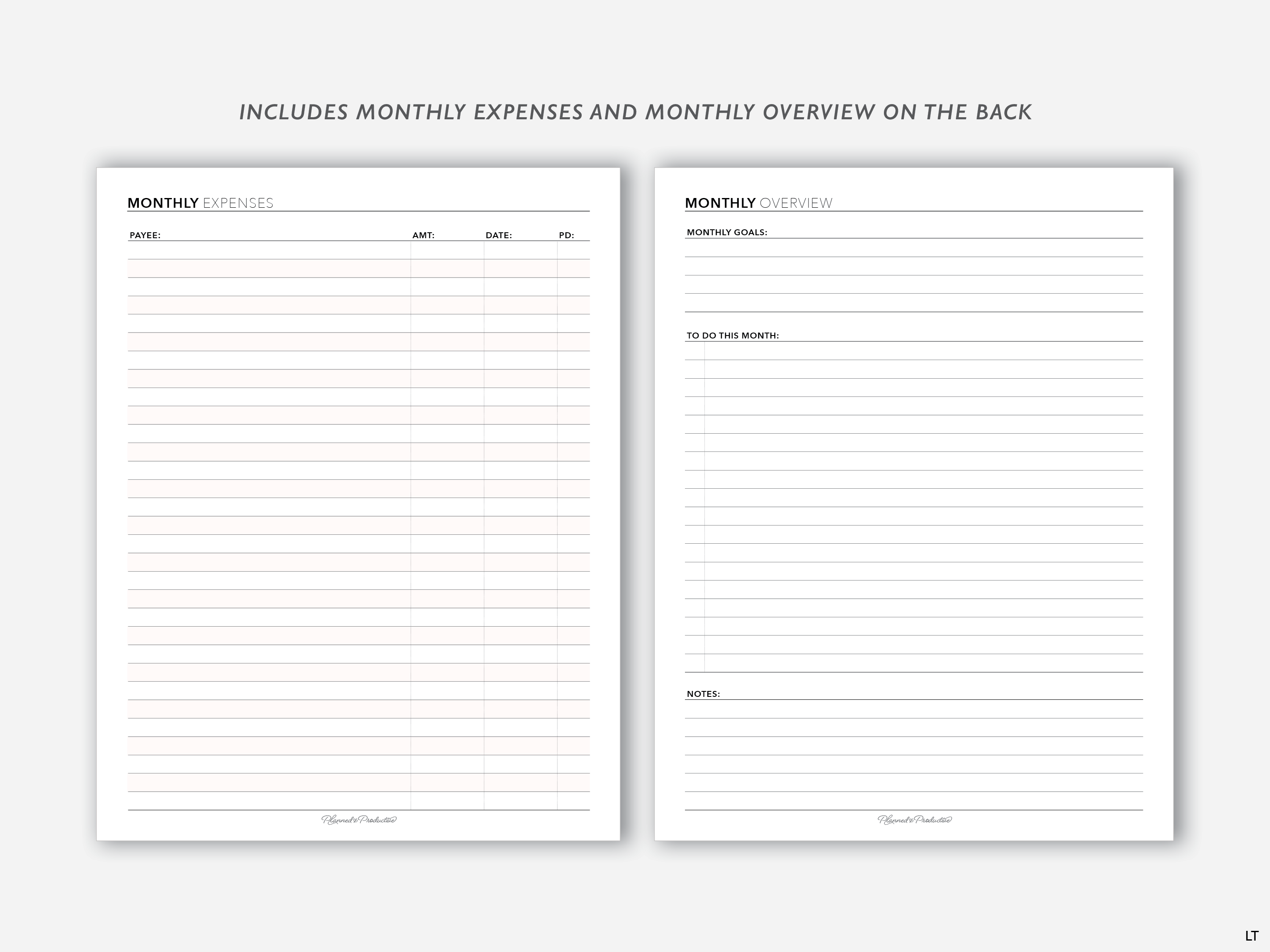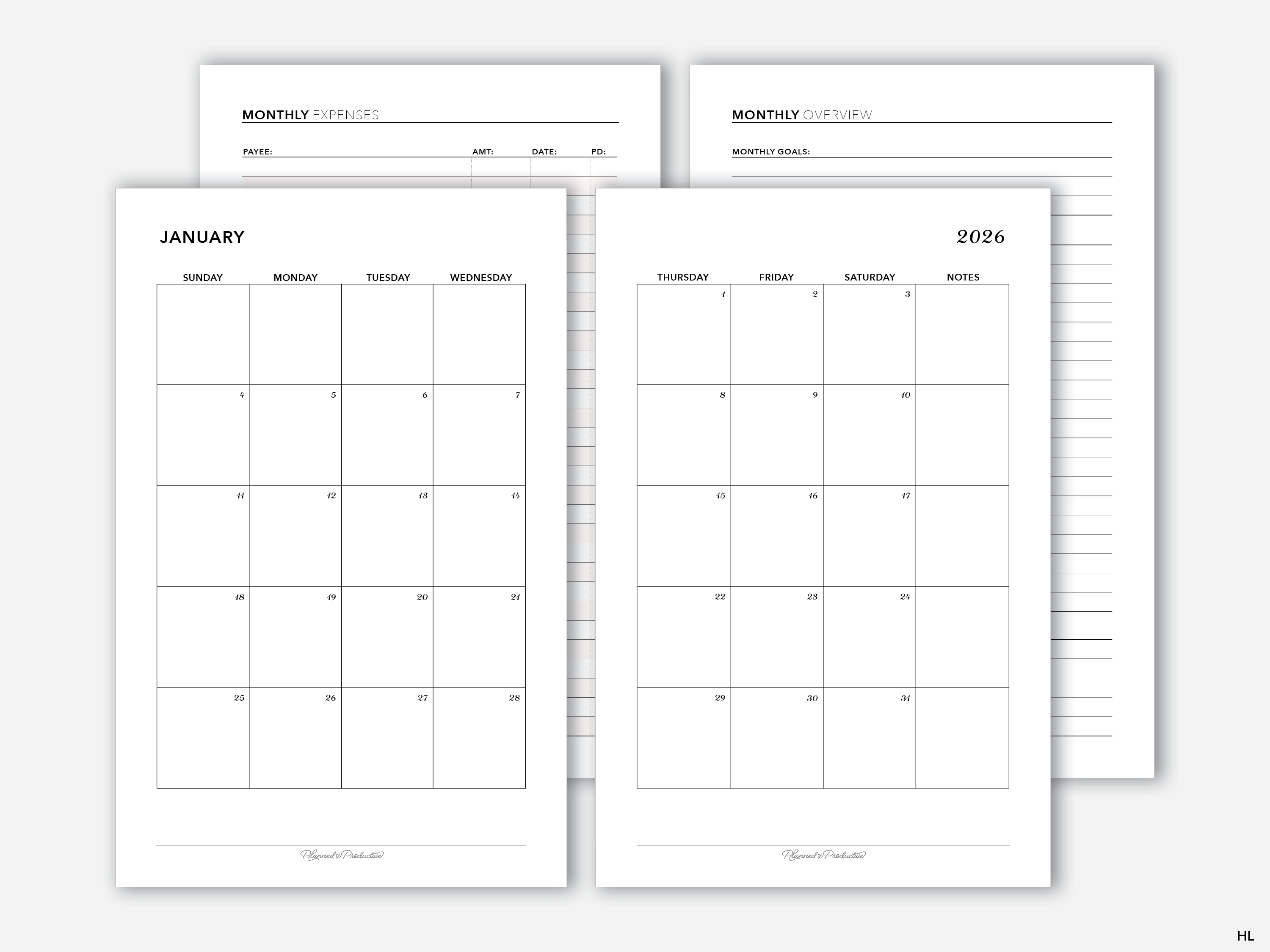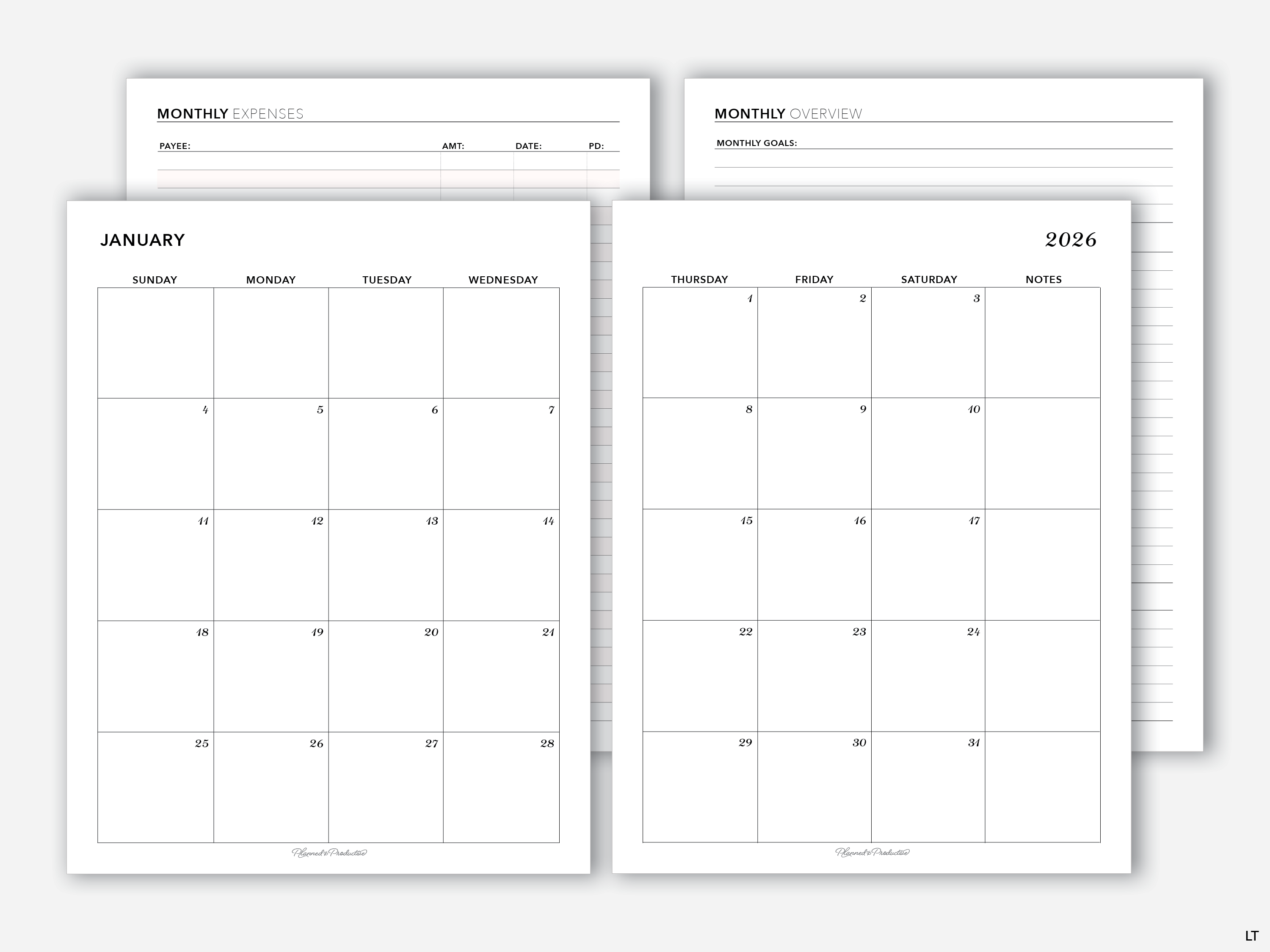 2026 Two Page Lined Monthly Calendar with Monthly Overview and Finance Tracker