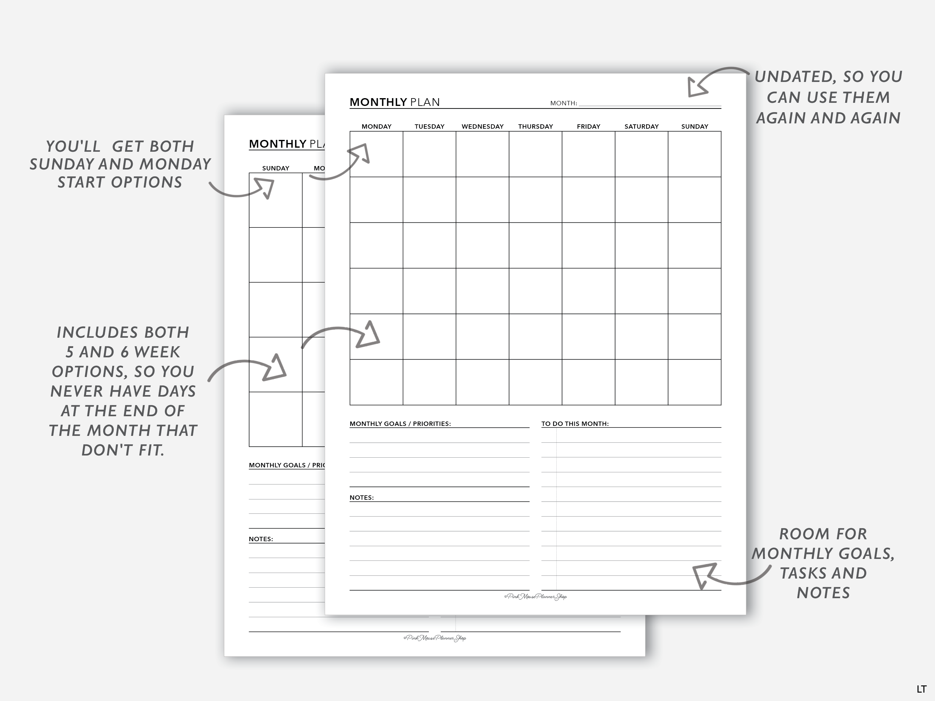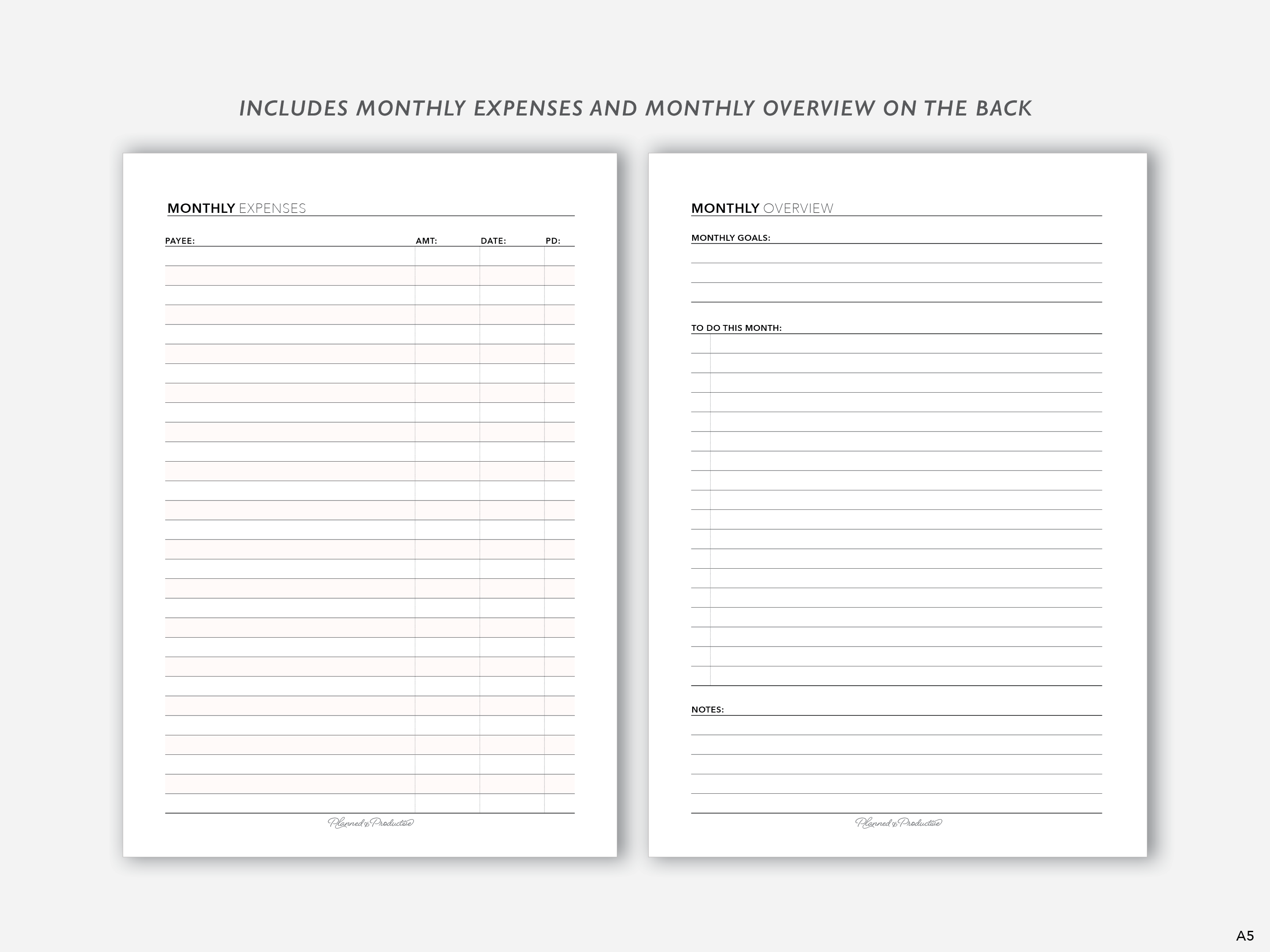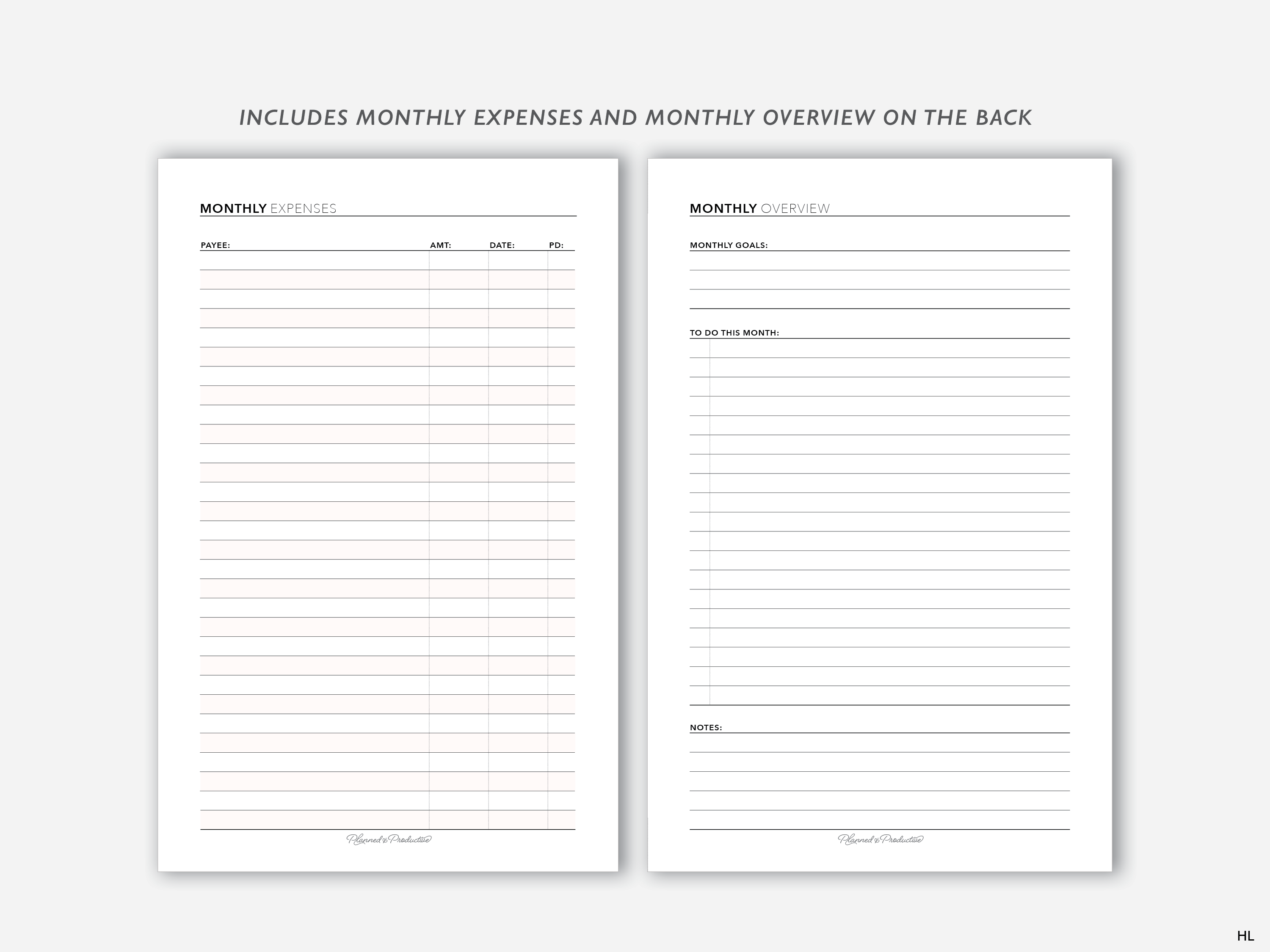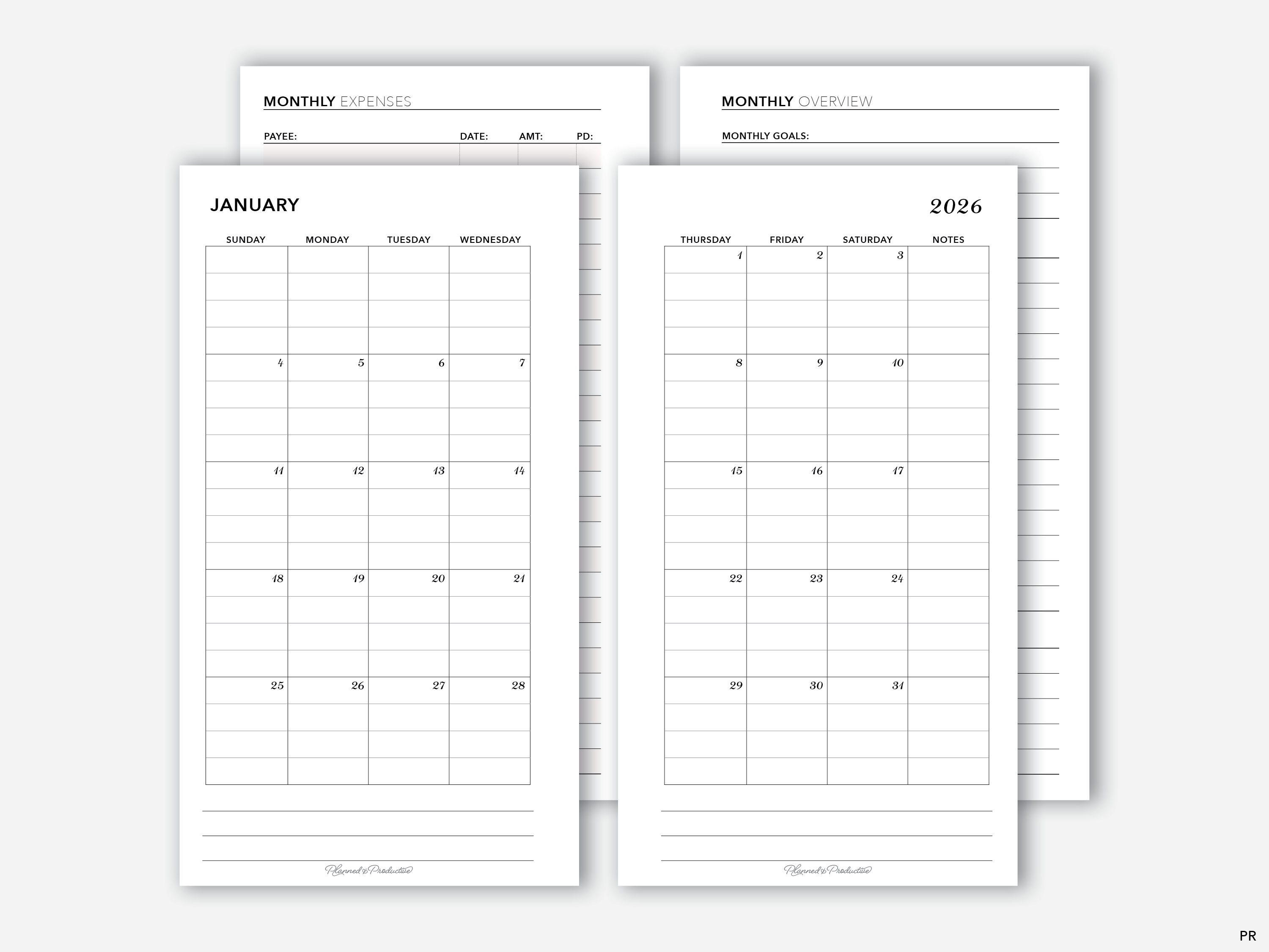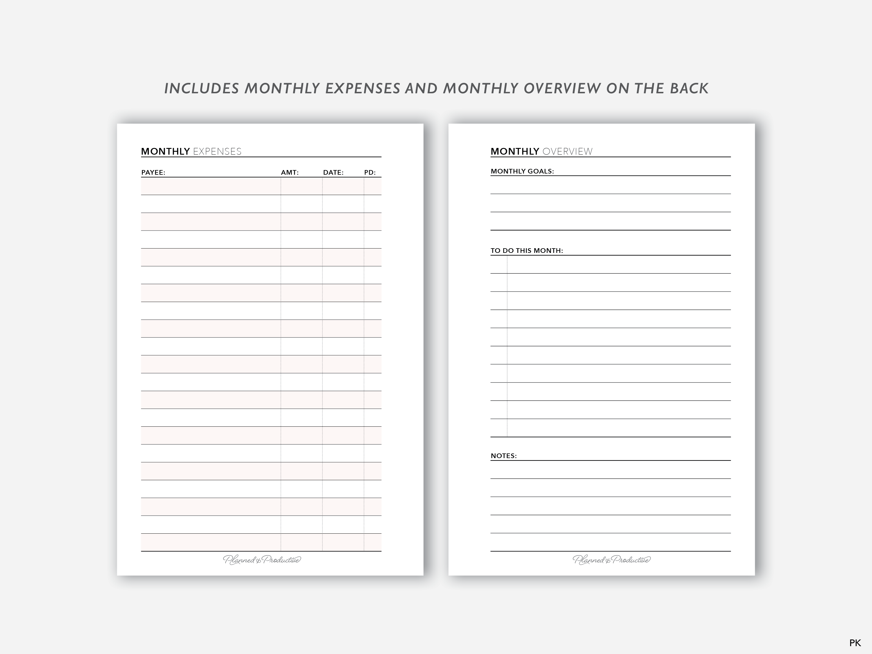 2026 Two Page Lined Monthly Calendar with Monthly Overview and Finance Tracker