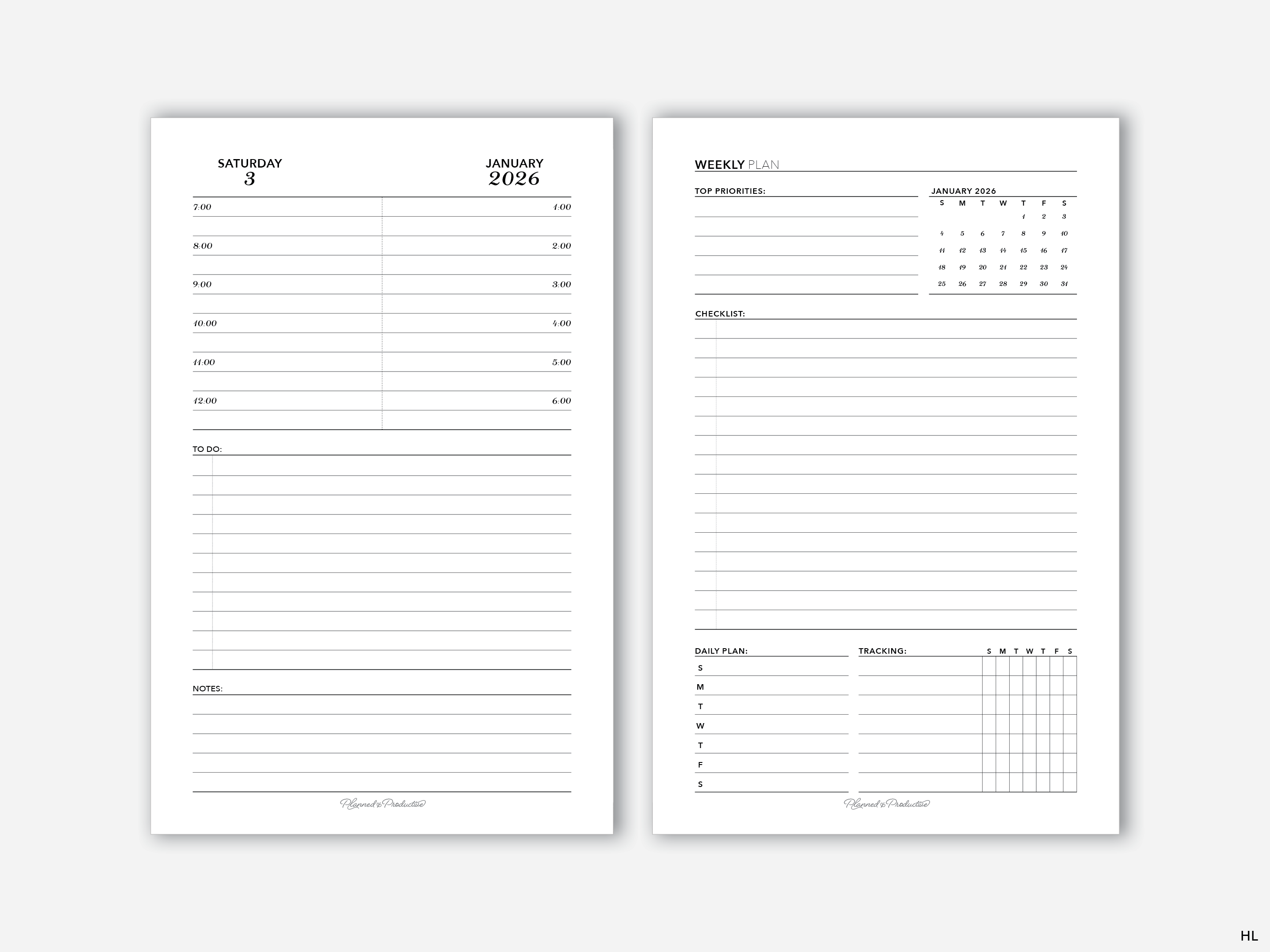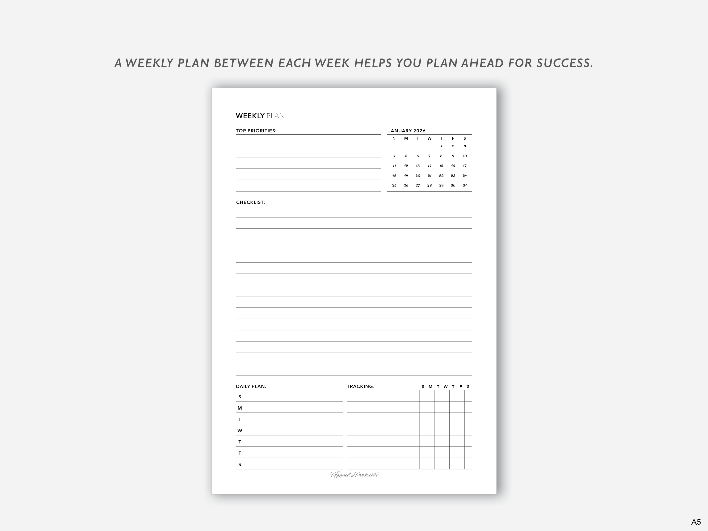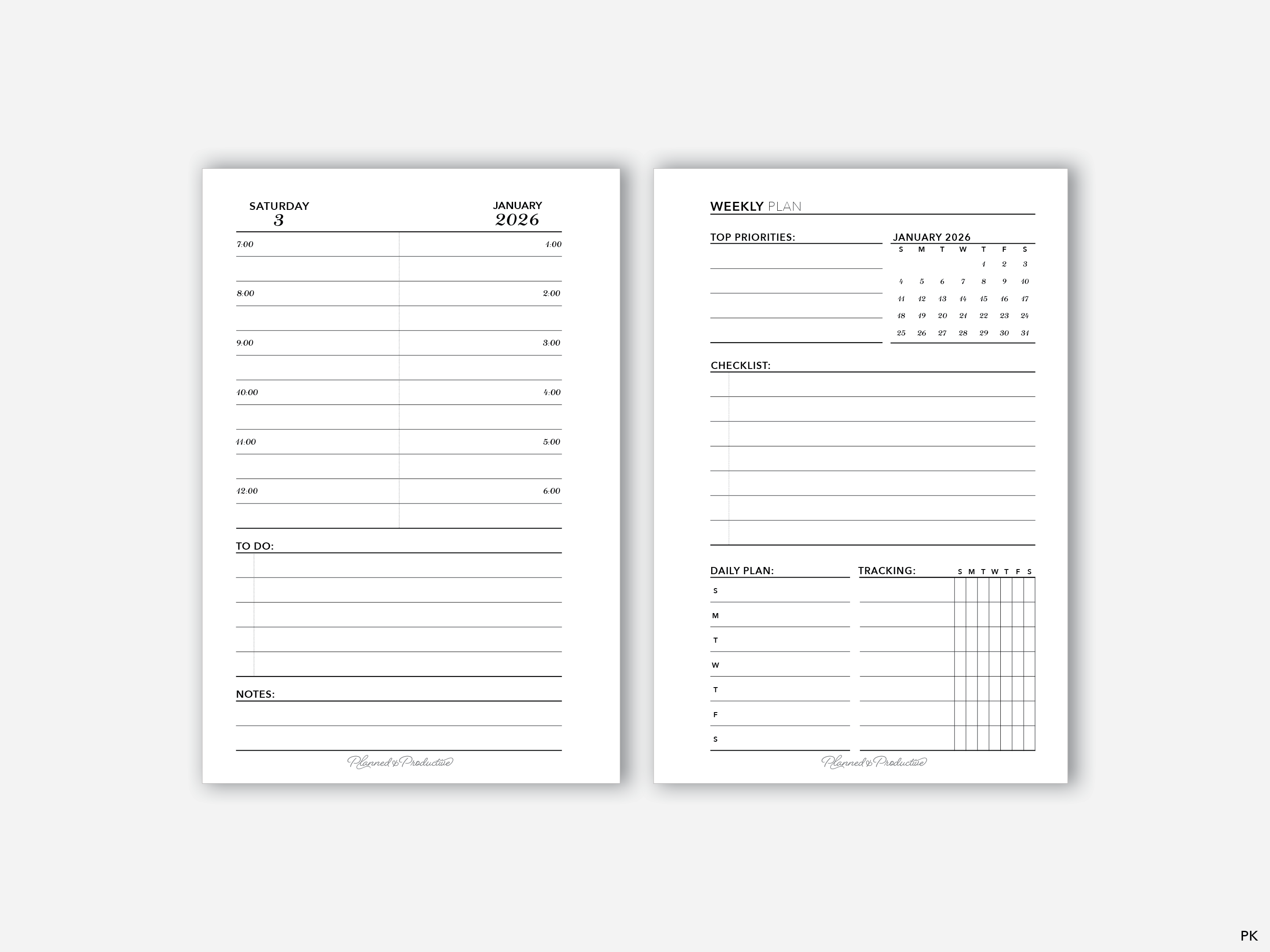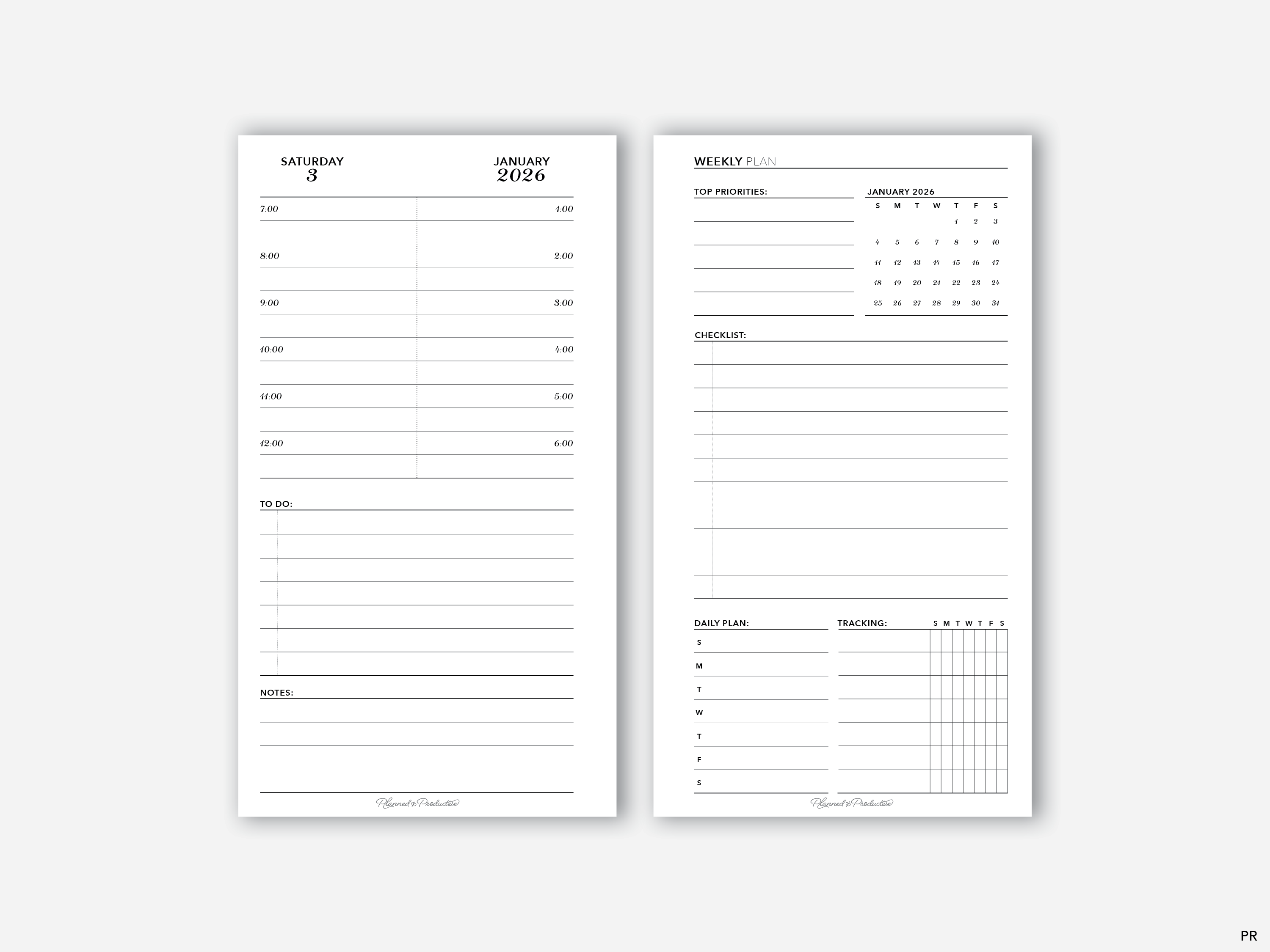 This is a one day per page planner insert, with a weekly overview page between each week.