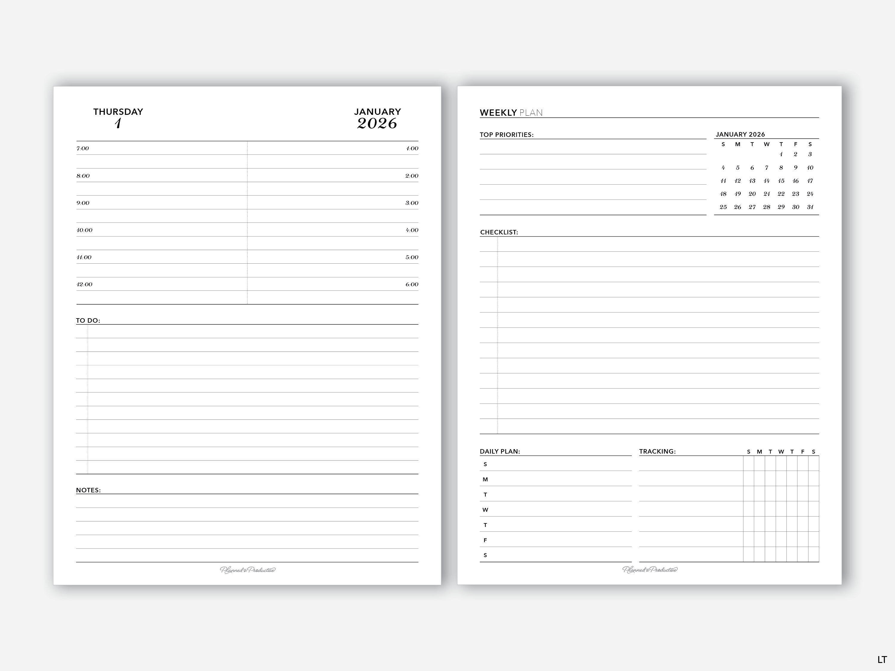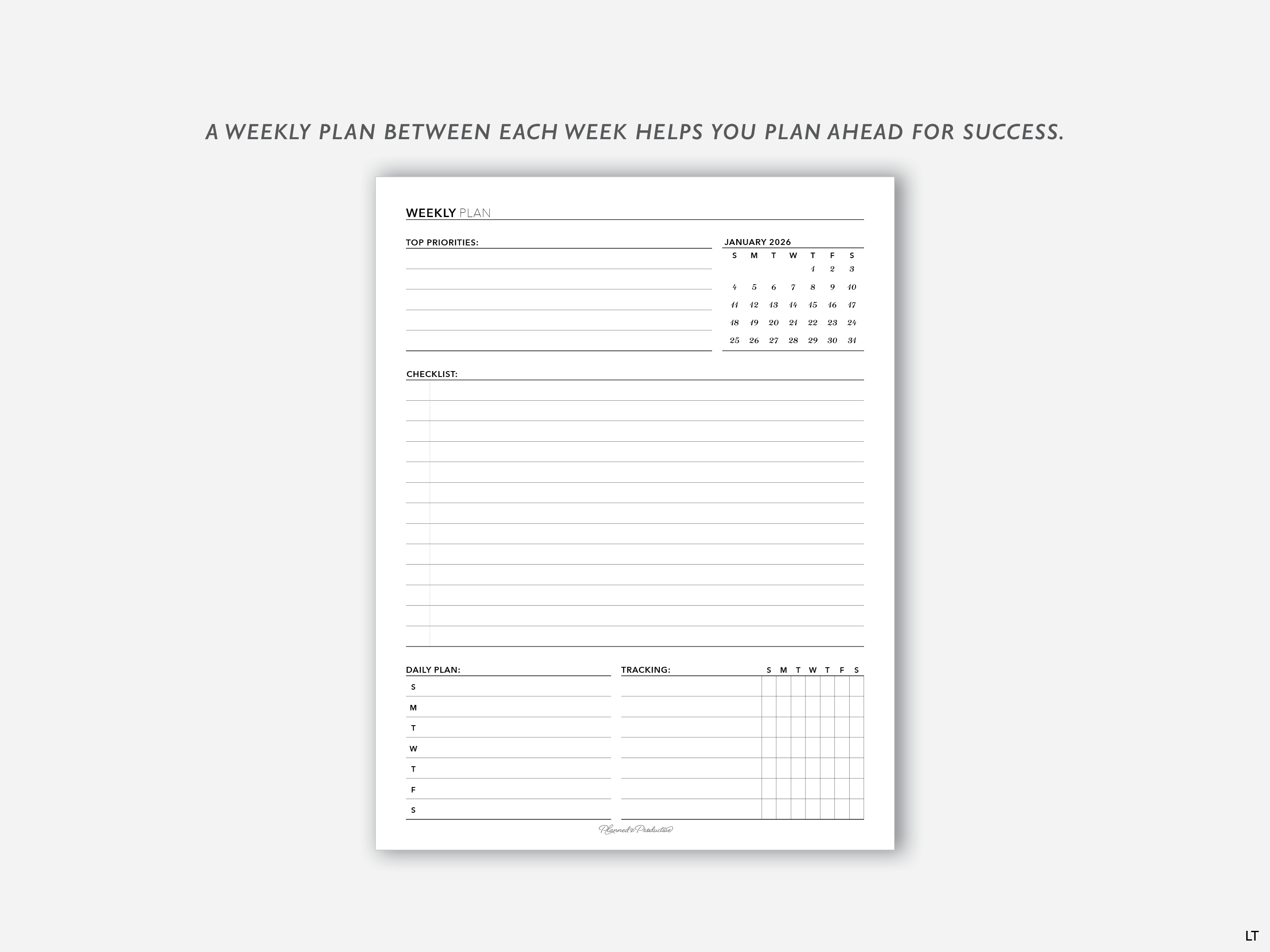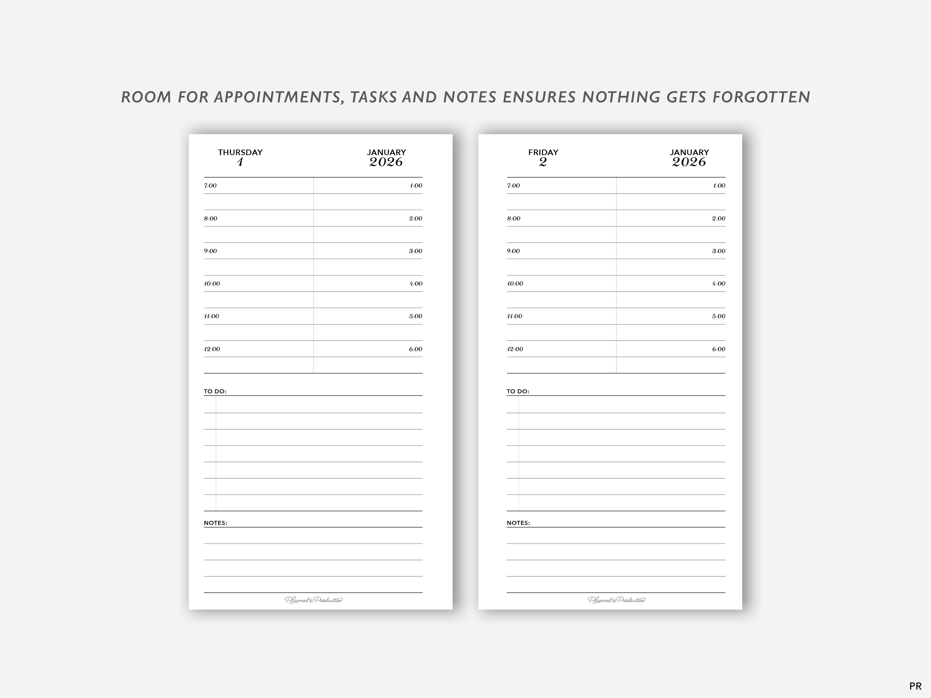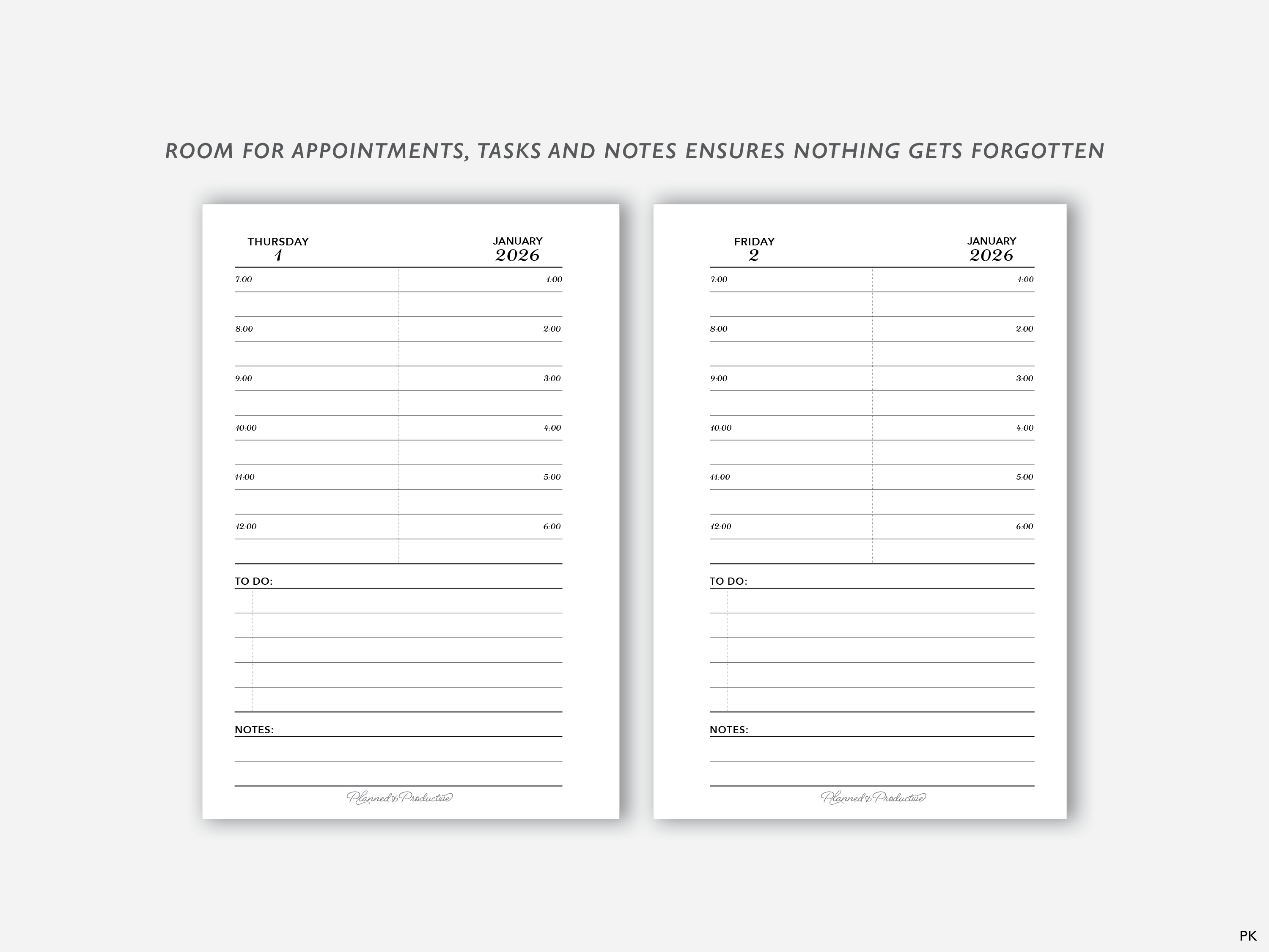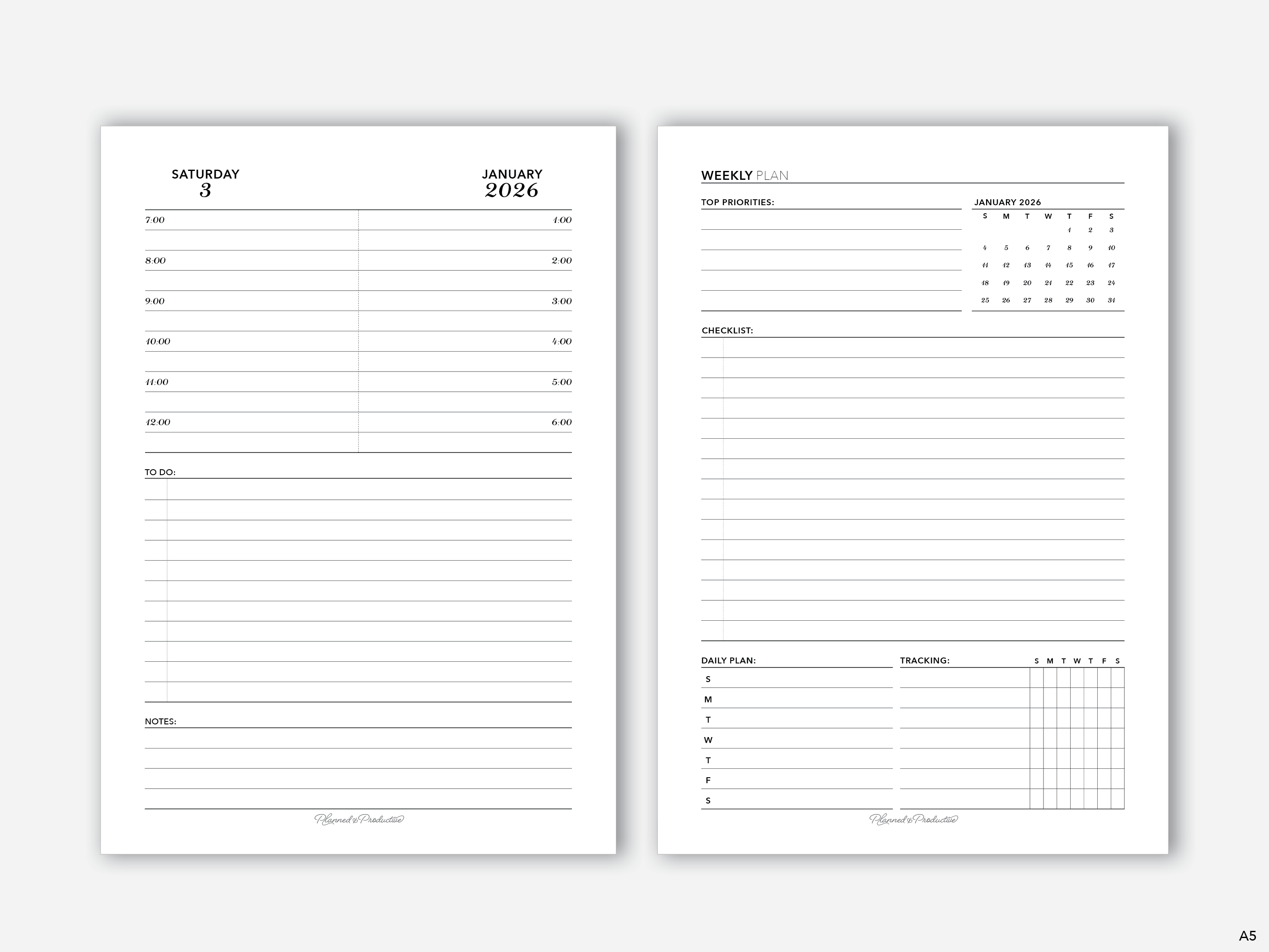 This is a one day per page planner insert, with a weekly overview page between each week.
