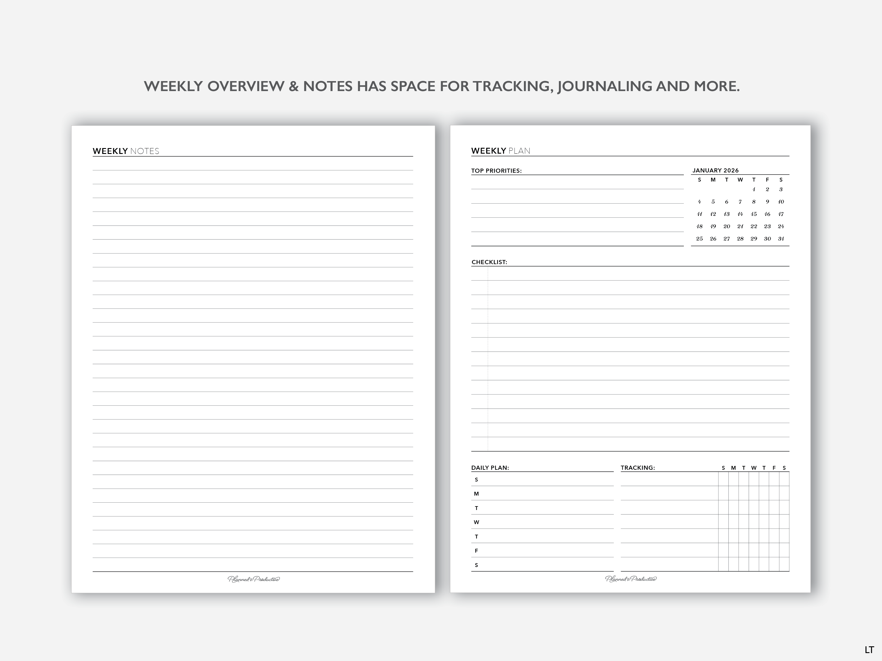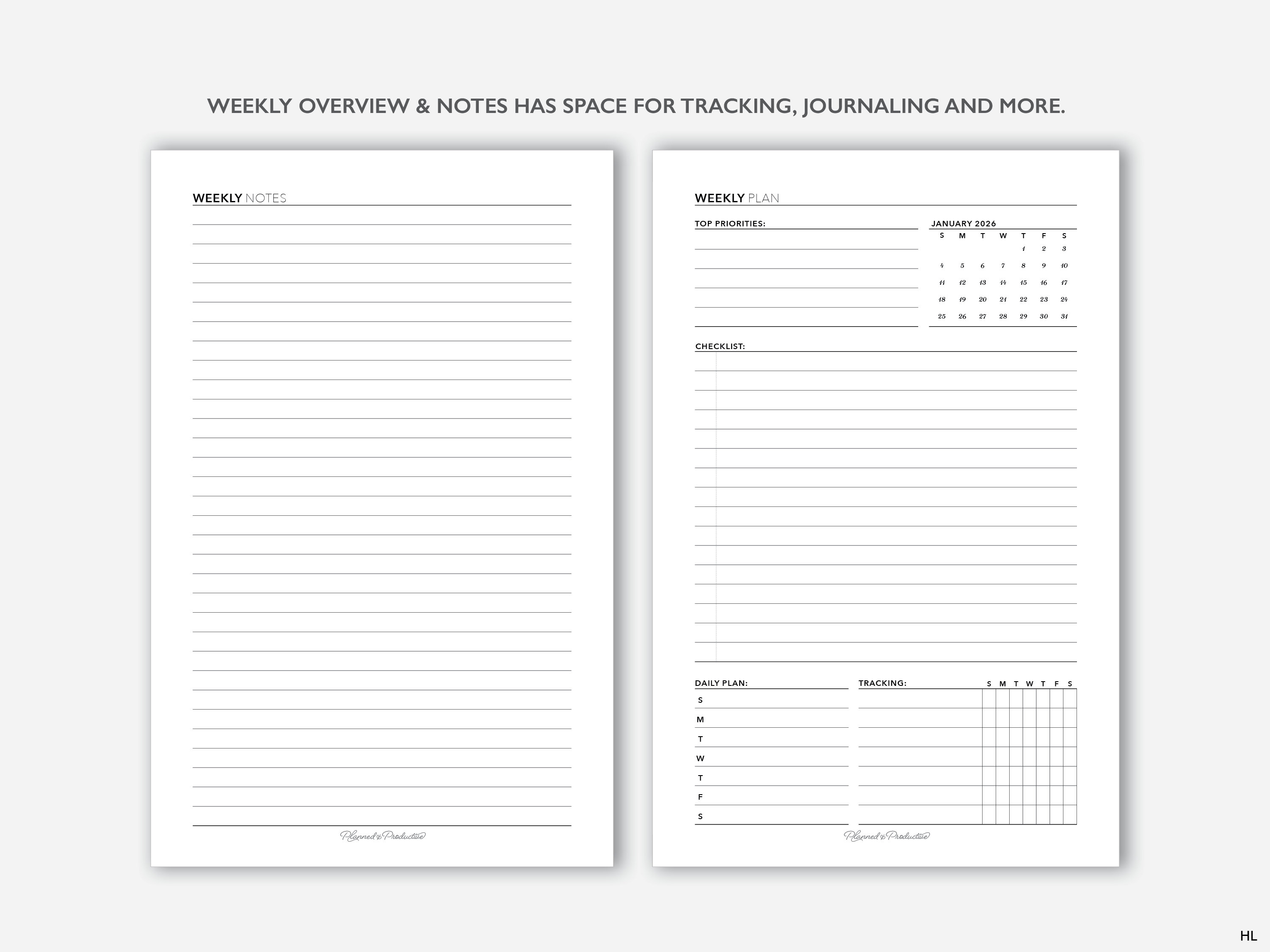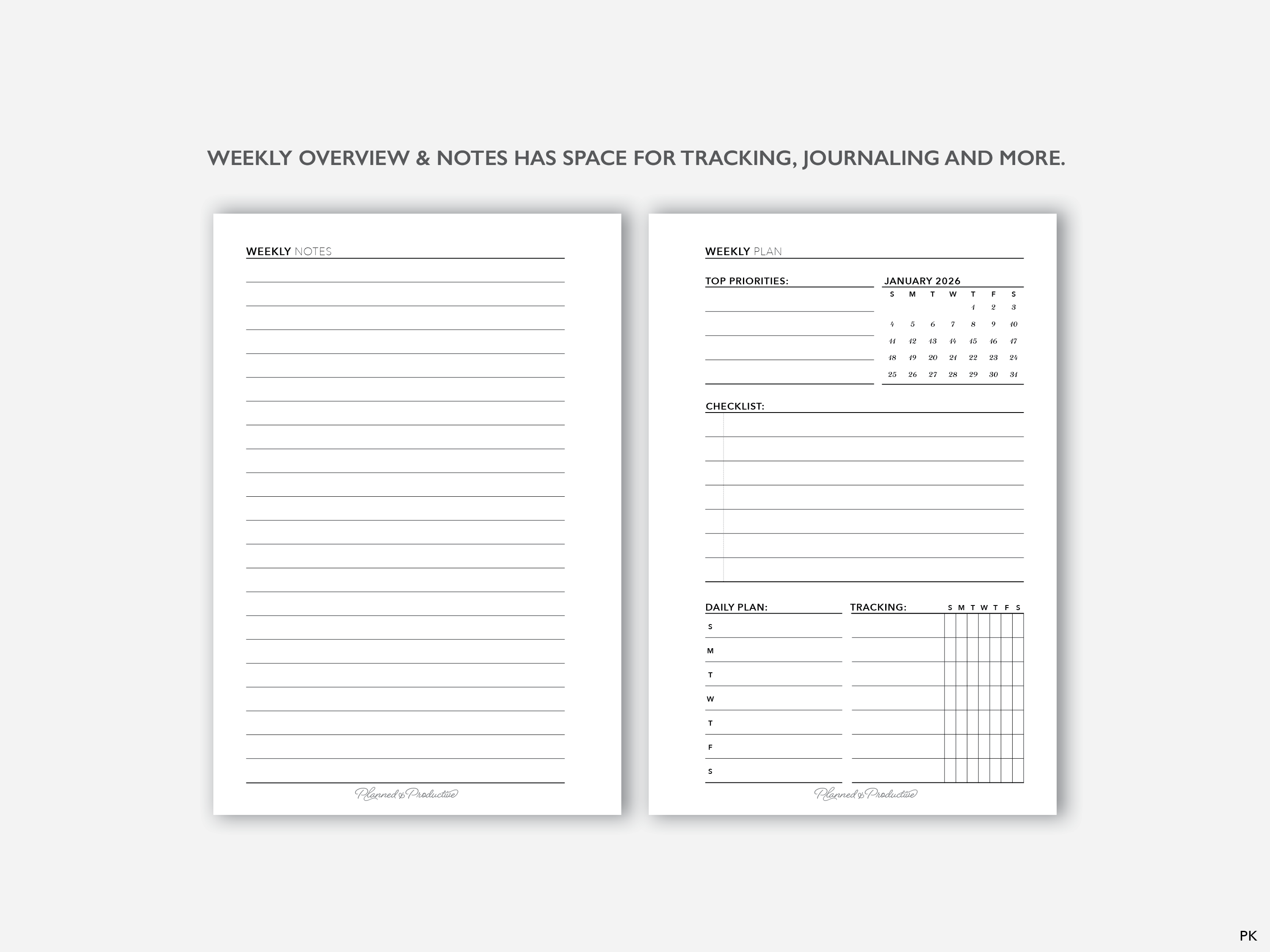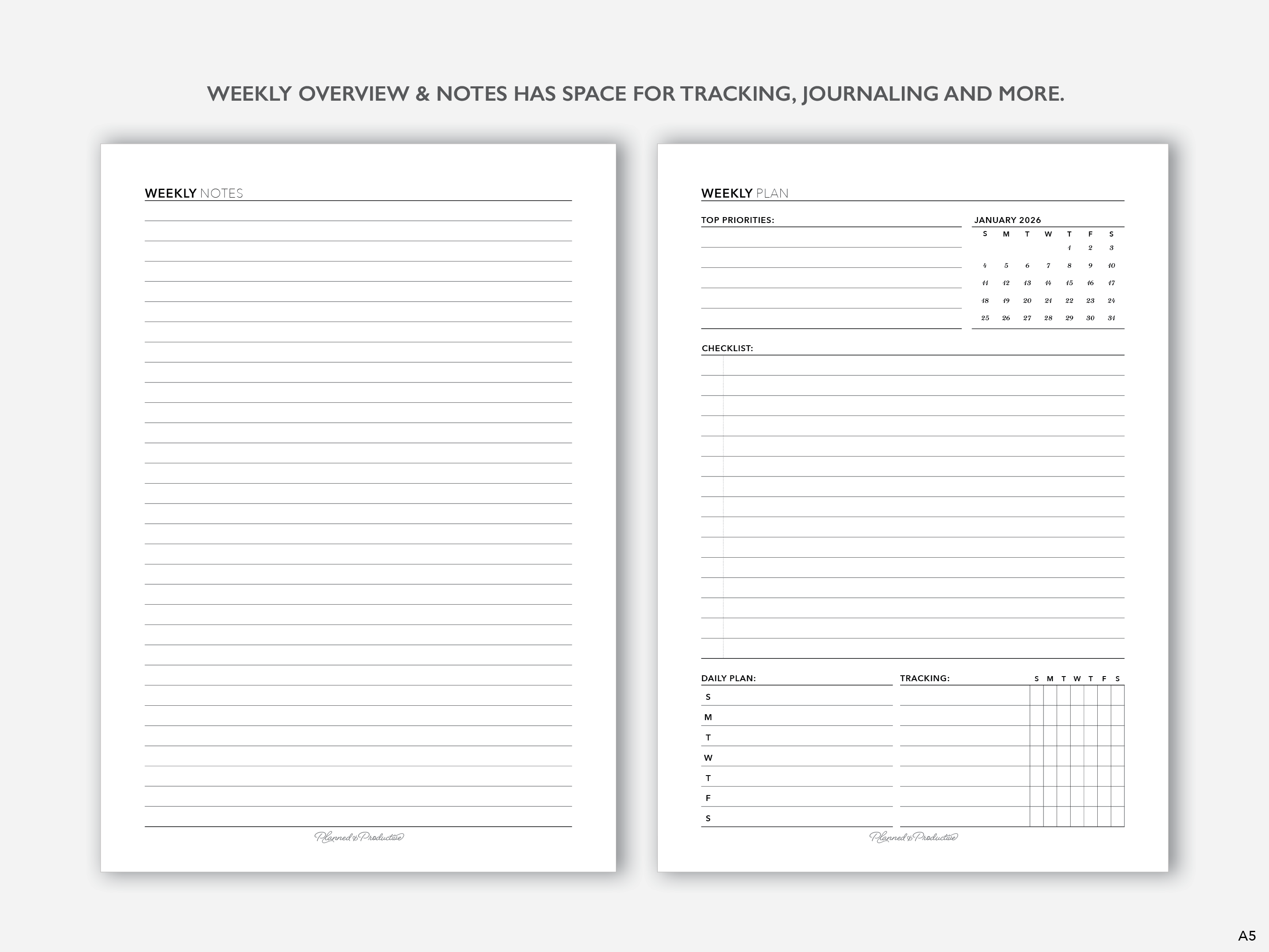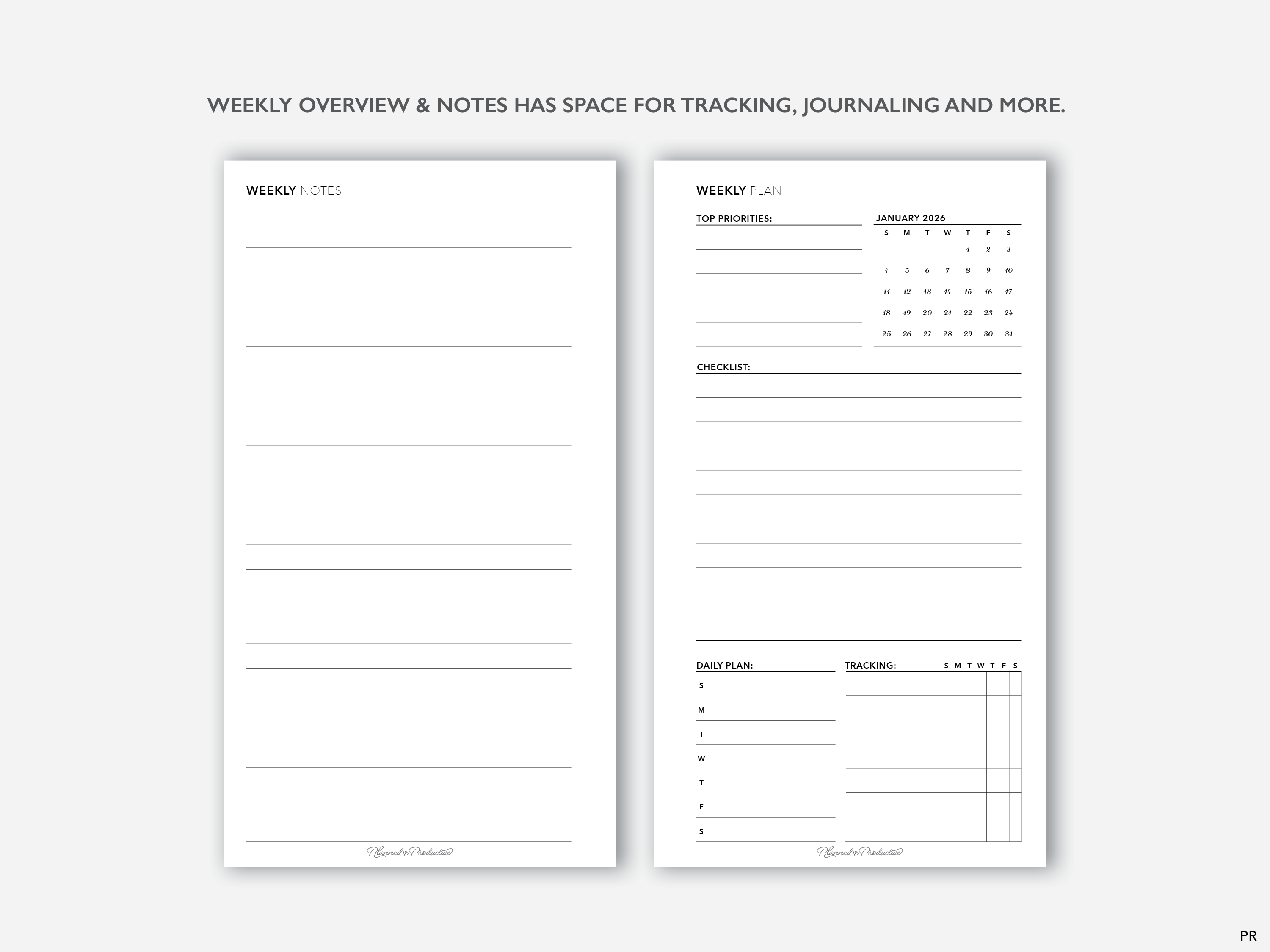 - Weekly Notes pages for lists, outlines, journaling etc.