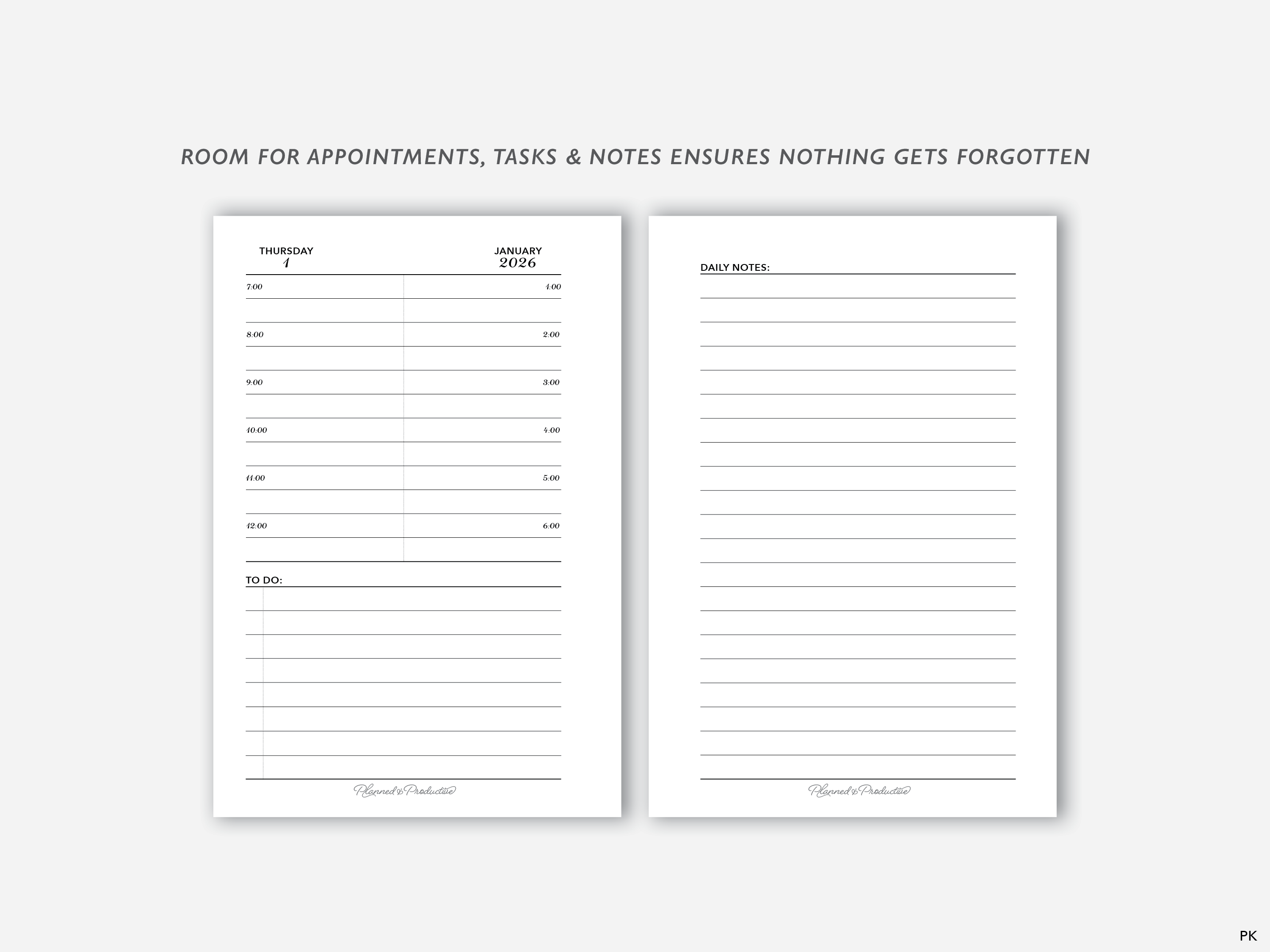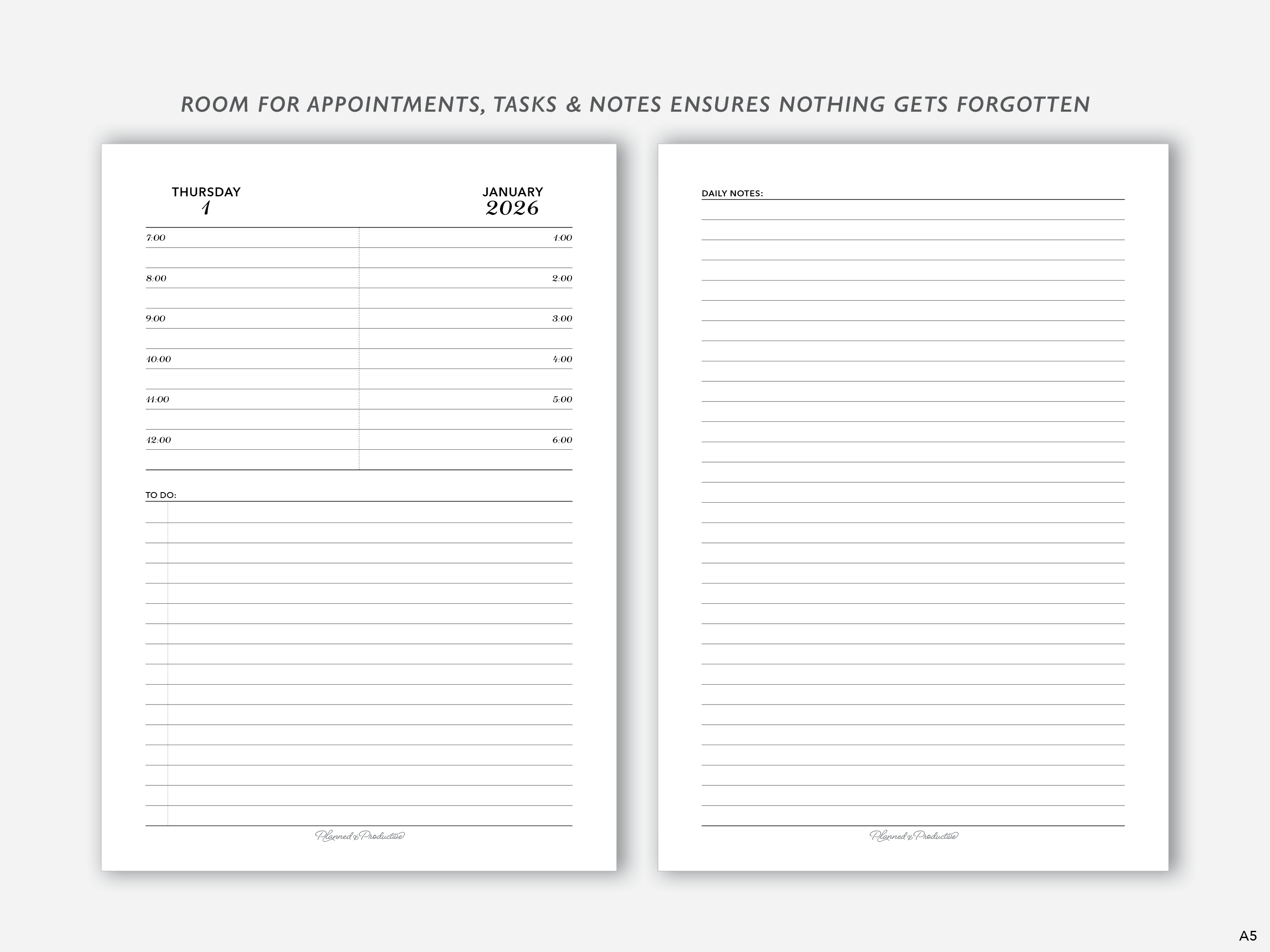 Plus: - Daily Notes pages for all those bits of information that you need to jot down, journaling, lists or whatever else you need.