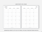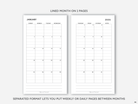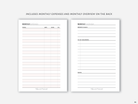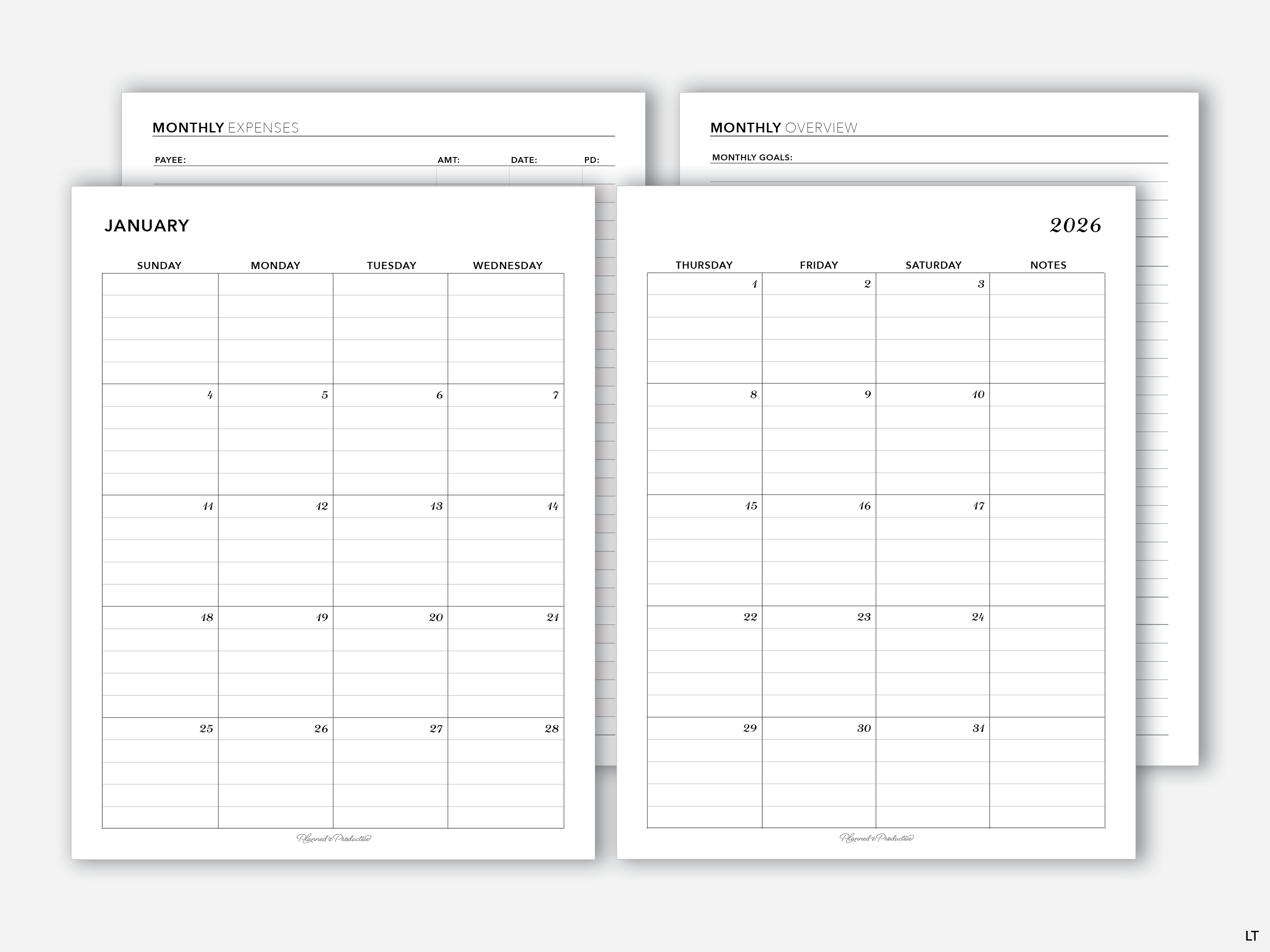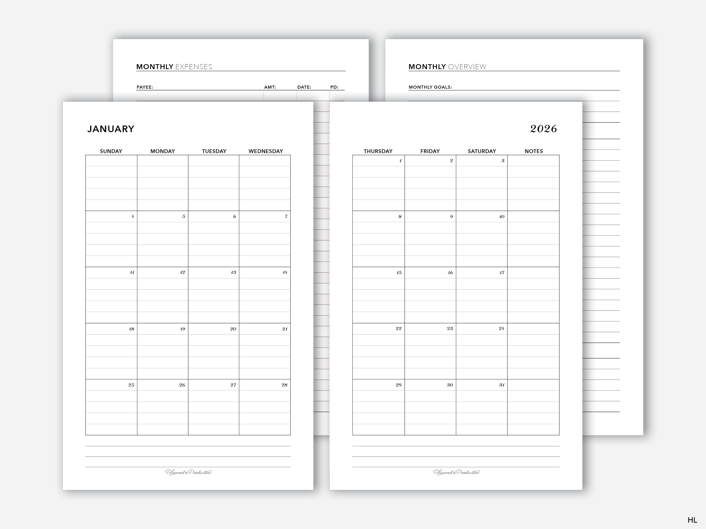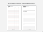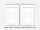 Organize your schedule with this lined month on two page insert, with a monthly overview and monthly expenses on the back.