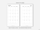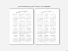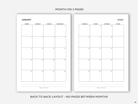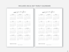 Organize your schedule with this month on two page insert, which includes a 2026 yearly calendar at the front, and 2027 a yearly calendar at the back. Months are continuous back to back, with no separation in between.