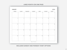 View your full monthly appointments at a glance with this versatile 1 page per month lined printable calendar insert in horizontal (landscape) orientation.